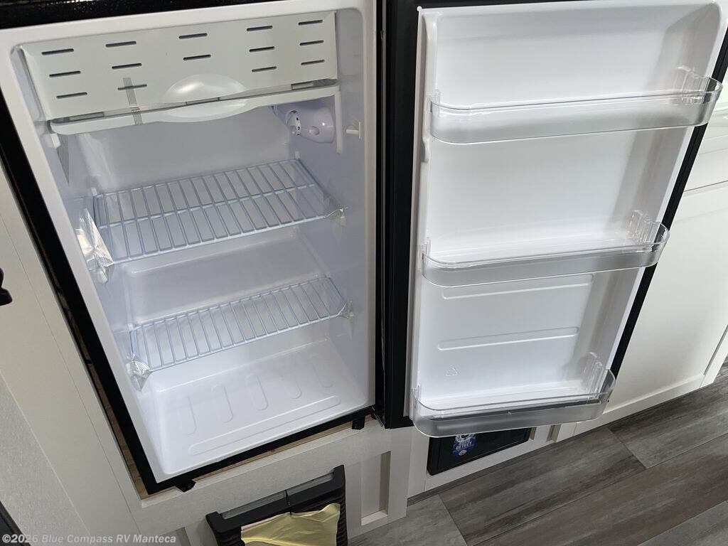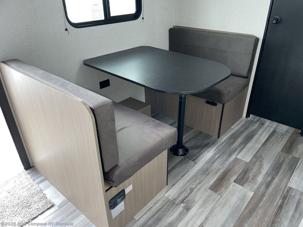 This travel trailer includes everything you need for fun trips at the lake. When you arrive at the campground, you can unload the exterior storage, then put out the 10' power awning. The booth dinette inside will provide a place to dine together, and the full rear bath with a shower will make it easier than ever to clean up after a day of hiking. A front RV queen bed will provide a great night's rest, and the overhead shelf will be perfect for books or personal belongings.