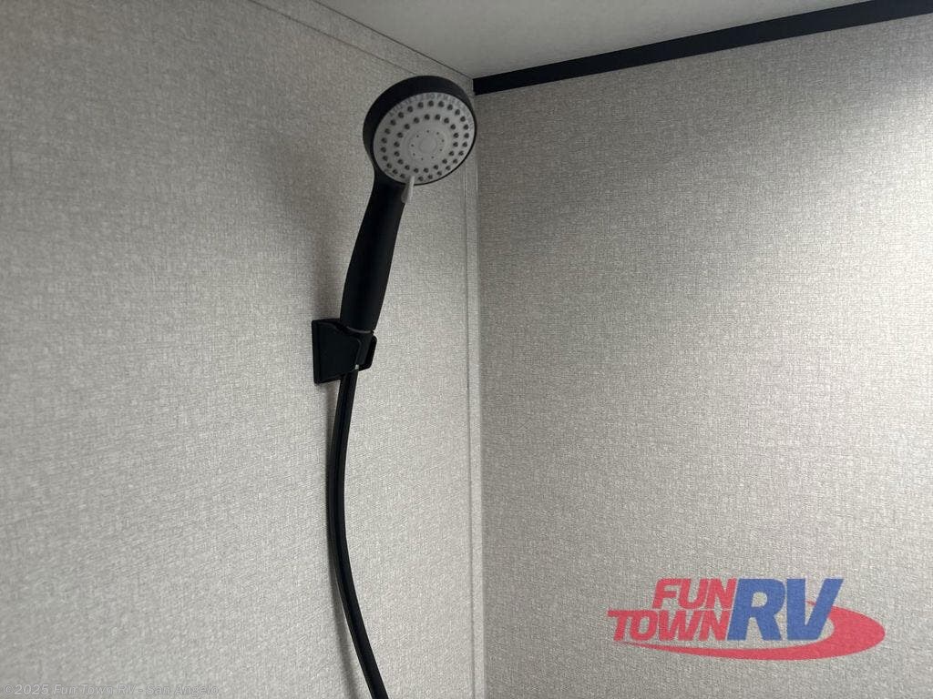 Your crew of six will love camping in this travel trailer! There are double-size bunk beds in the rear corner and a private bath in the other rear corner for easy nighttime use. You will have the front queen bed to yourselves, along with an overhead shelf and a nightstand for your things. And the L-shaped dinette provides a place to dine and play games. The Customer Value Package on this Sport Edition model includes a 19K BTU furnace, stabilizer jacks, a power awning, an entry door with a window and shade prep, and many more stand-out features!
