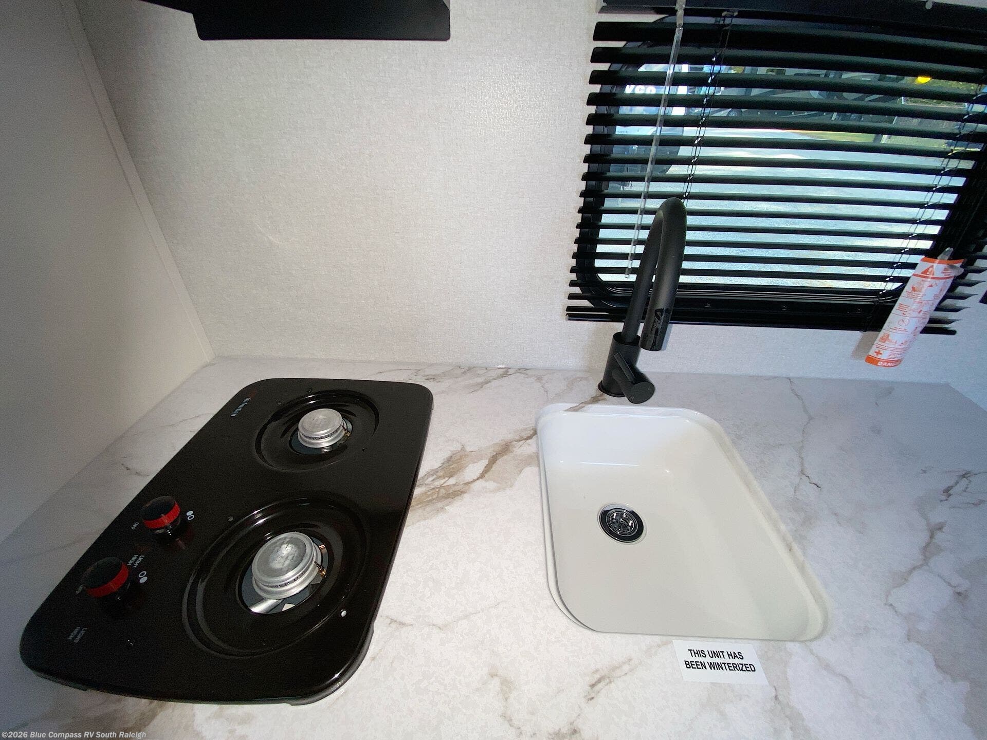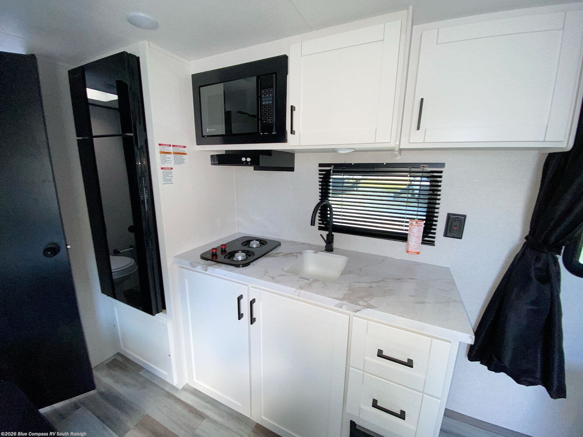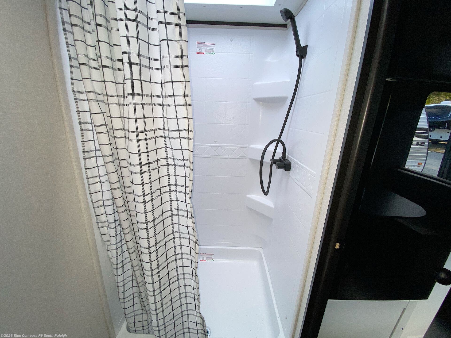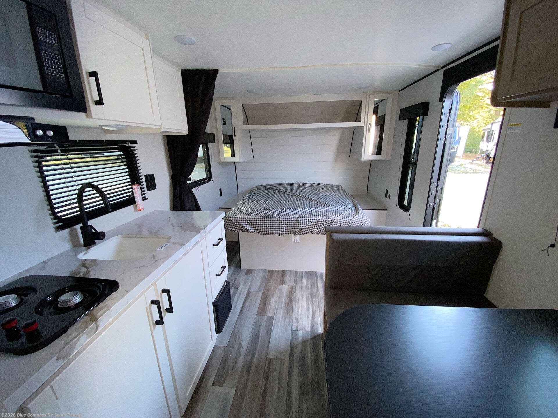 This travel trailer includes everything you need for fun trips at the lake. When you arrive at the campground, you can unload the exterior storage, then put out the 12' power awning with LED lights. There is also an LP Quick Connect if you want to hook up your own grill! The booth dinette inside will provide a place to dine together, and the full rear bath with a tub/shower will make bath time easier than ever for little ones. A front RV queen bed will provide a great night's rest, and the privacy curtain will be appreciated when you're getting dressed in the morning.