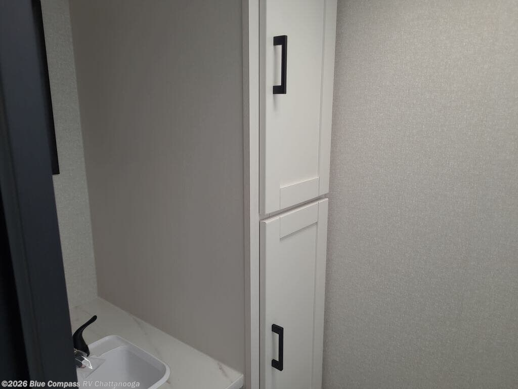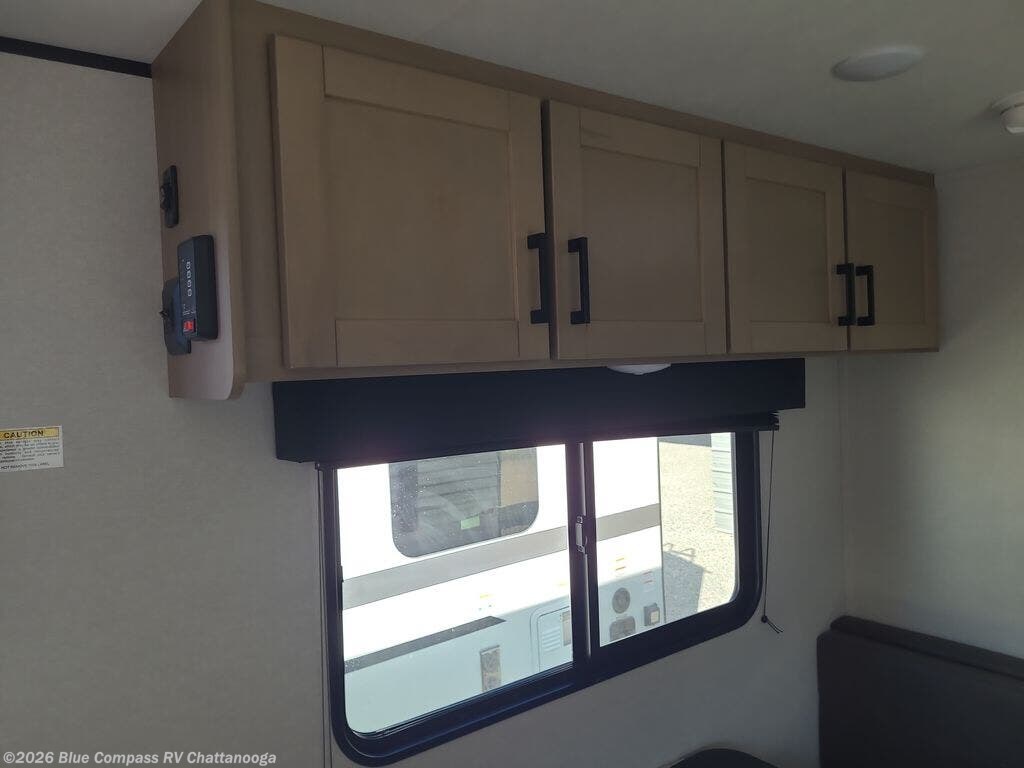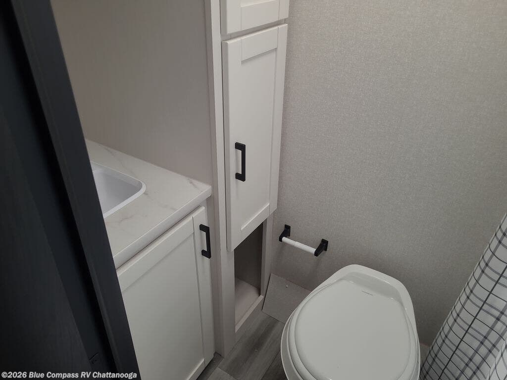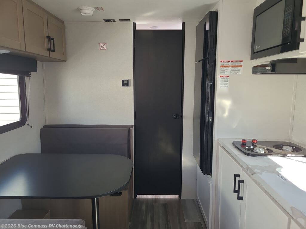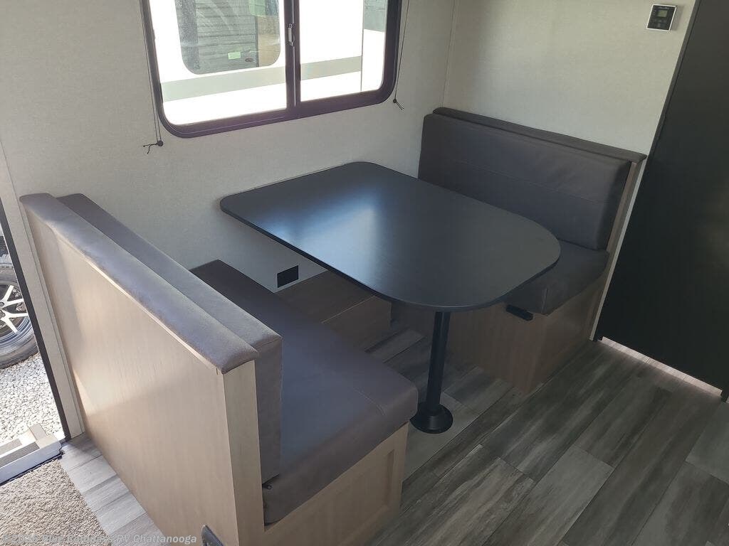 This travel trailer includes everything you need for fun trips at the lake. When you arrive at the campground, you can unload the exterior storage, then put out the 12' power awning with LED lights. There is also an LP Quick Connect if you want to hook up your own grill! The booth dinette inside will provide a place to dine together, and the full rear bath with a tub/shower will make bath time easier than ever for little ones. A front RV queen bed will provide a great night's rest, and the privacy curtain will be appreciated when you're getting dressed in the morning.