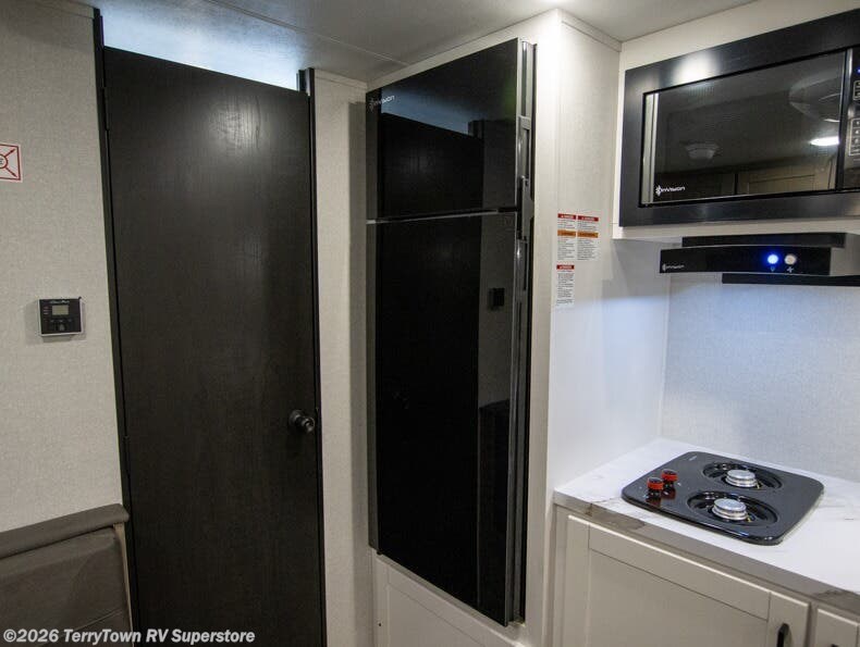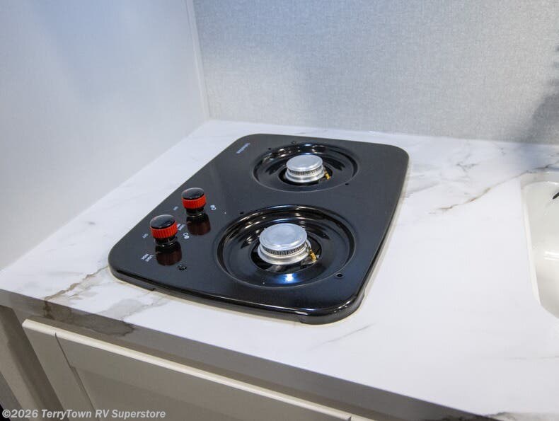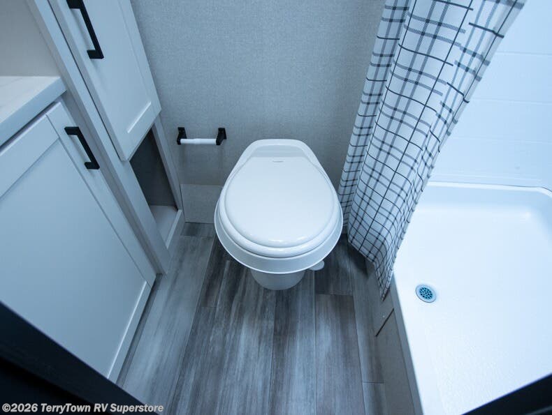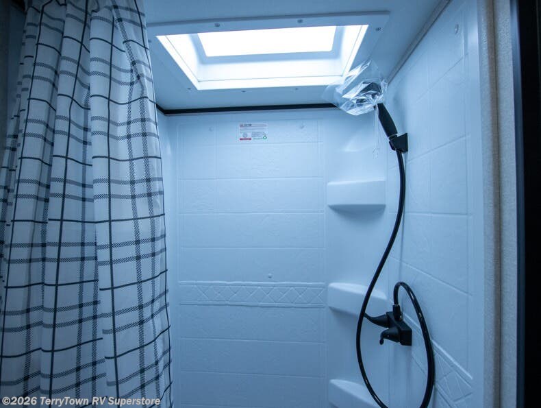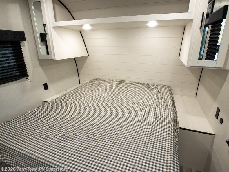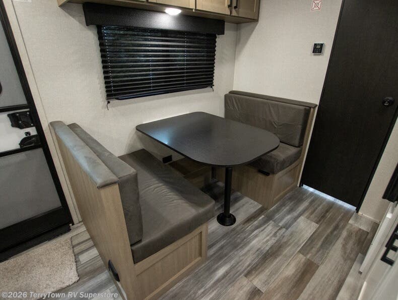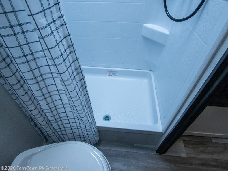 This travel trailer includes everything you need for fun trips at the lake. When you arrive at the campground, you can unload the exterior storage, then put out the 12' power awning with LED lights. There is also an LP Quick Connect if you want to hook up your own grill! The booth dinette inside will provide a place to dine together, and the full rear bath with a tub/shower will make bath time easier than ever for little ones. A front RV queen bed will provide a great night's rest, and the privacy curtain will be appreciated when you're getting dressed in the morning.