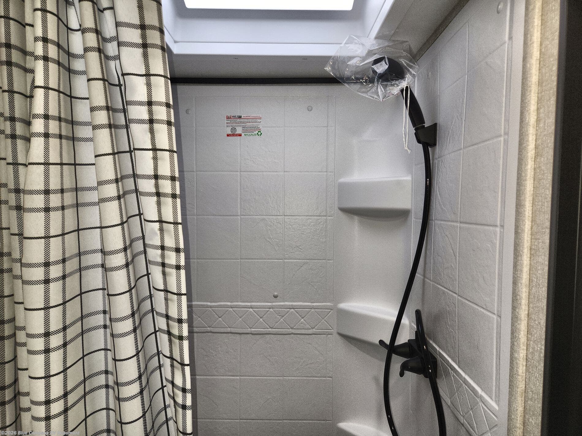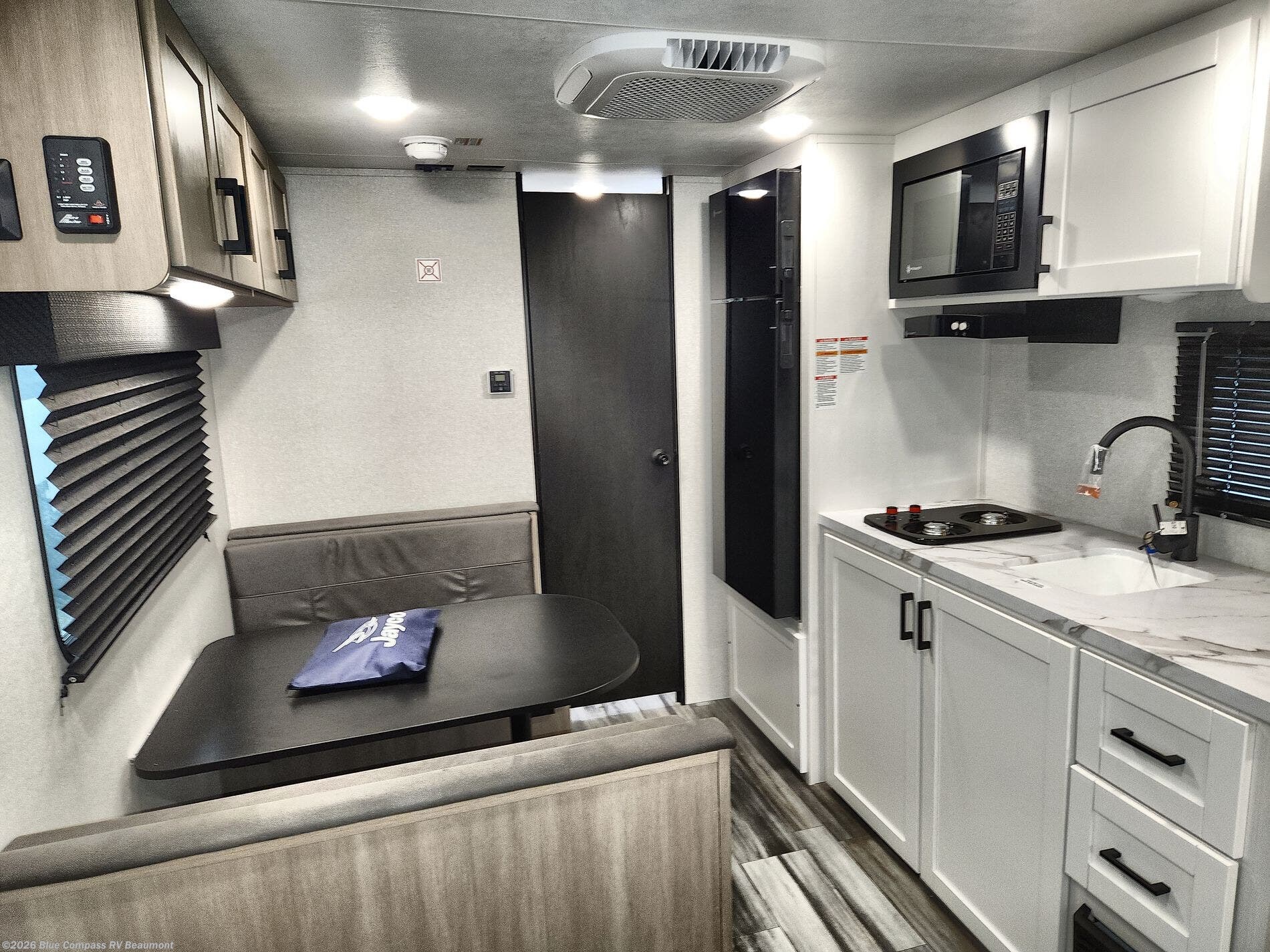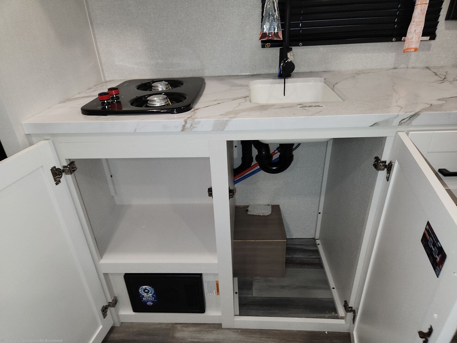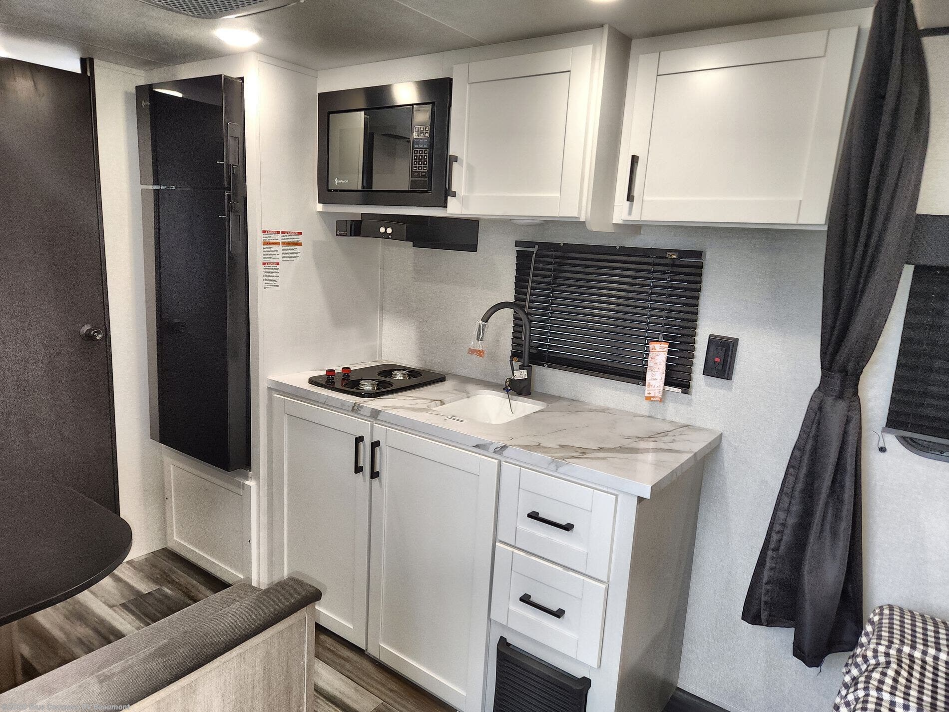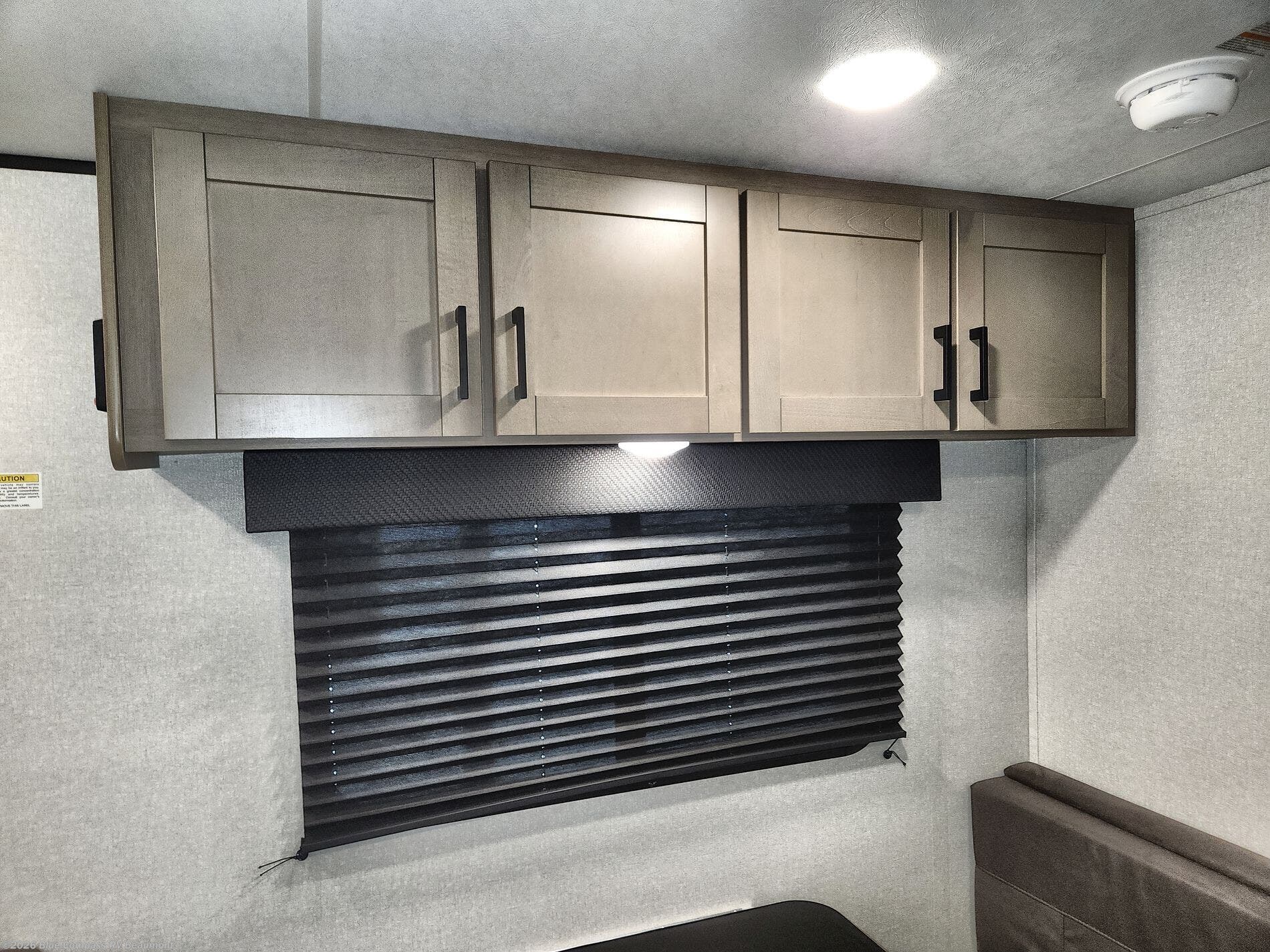 This travel trailer includes everything you need for fun trips at the lake. When you arrive at the campground, you can unload the exterior storage, then put out the 12' power awning with LED lights. There is also an LP Quick Connect if you want to hook up your own grill! The booth dinette inside will provide a place to dine together, and the full rear bath with a tub/shower will make bath time easier than ever for little ones. A front RV queen bed will provide a great night's rest, and the privacy curtain will be appreciated when you're getting dressed in the morning.