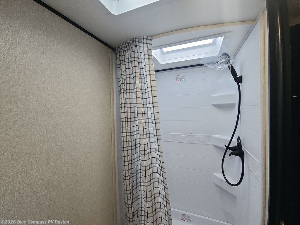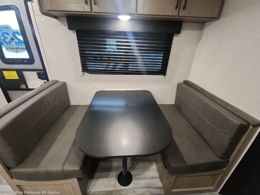 This travel trailer includes everything you need for fun trips at the lake. When you arrive at the campground, you can unload the exterior storage, then put out the 12' power awning with LED lights. There is also an LP Quick Connect if you want to hook up your own grill! The booth dinette inside will provide a place to dine together, and the full rear bath with a tub/shower will make bath time easier than ever for little ones. A front RV queen bed will provide a great night's rest, and the privacy curtain will be appreciated when you're getting dressed in the morning.