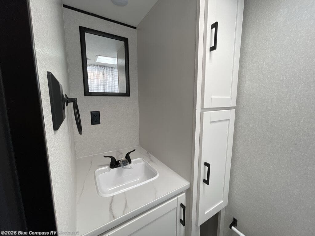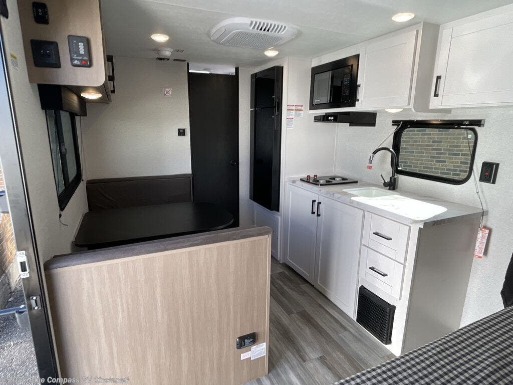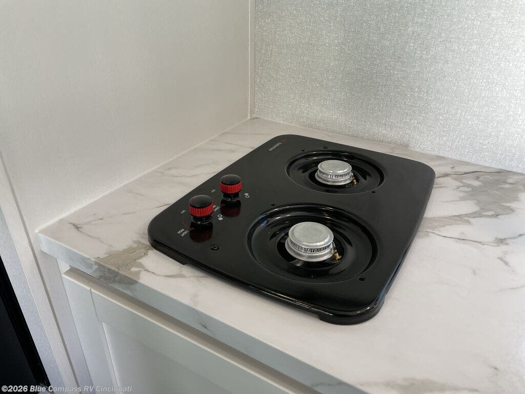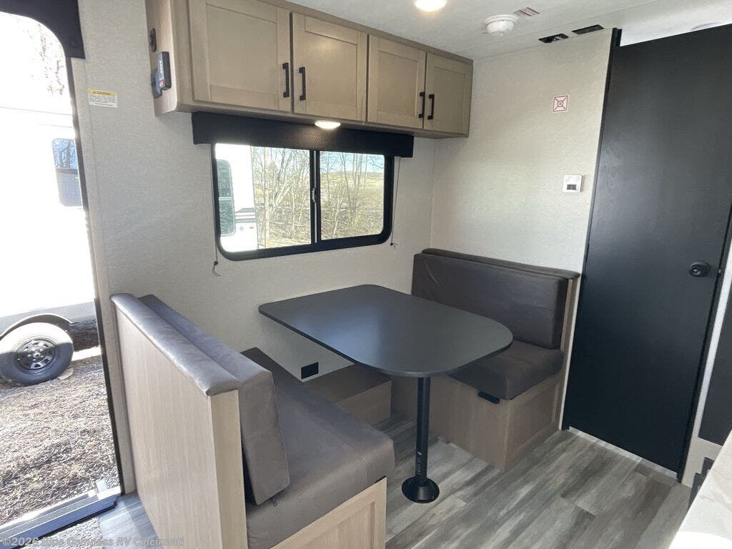 This travel trailer includes everything you need for fun trips at the lake. When you arrive at the campground, you can unload the exterior storage, then put out the 12' power awning with LED lights. There is also an LP Quick Connect if you want to hook up your own grill! The booth dinette inside will provide a place to dine together, and the full rear bath with a tub/shower will make bath time easier than ever for little ones. A front RV queen bed will provide a great night's rest, and the privacy curtain will be appreciated when you're getting dressed in the morning.