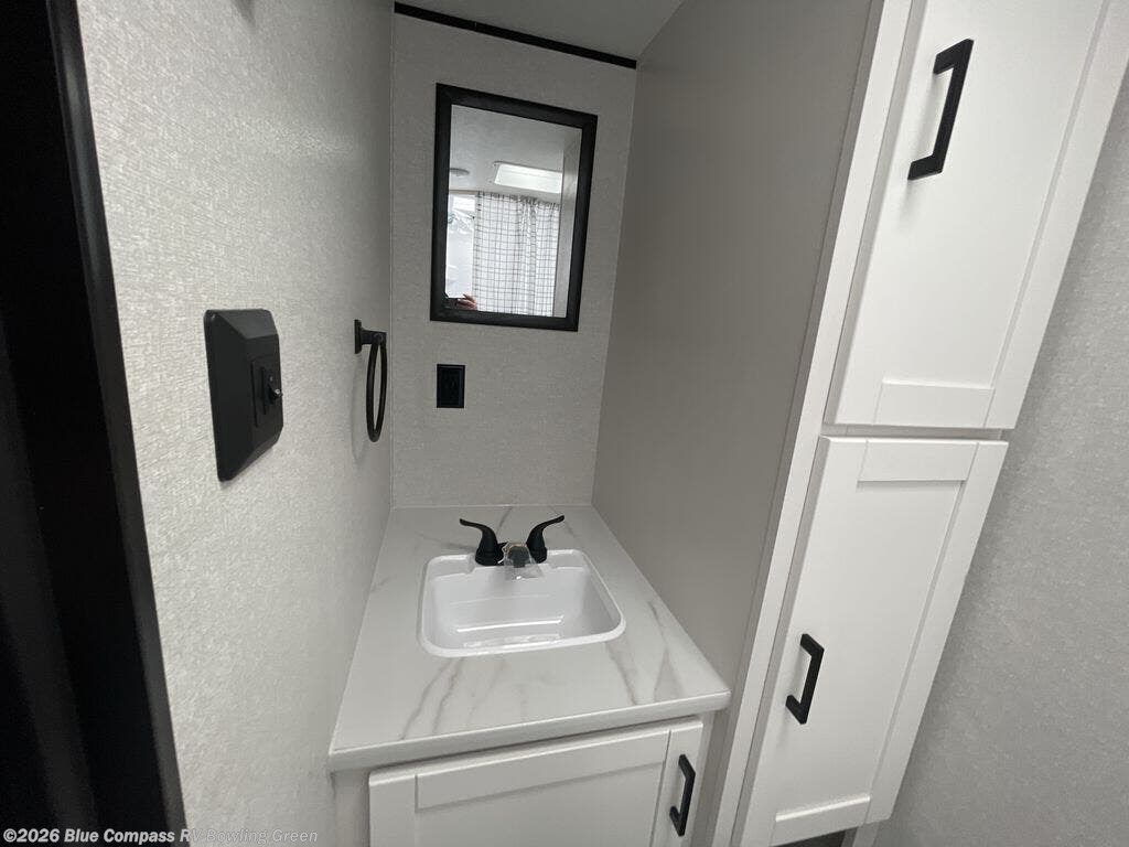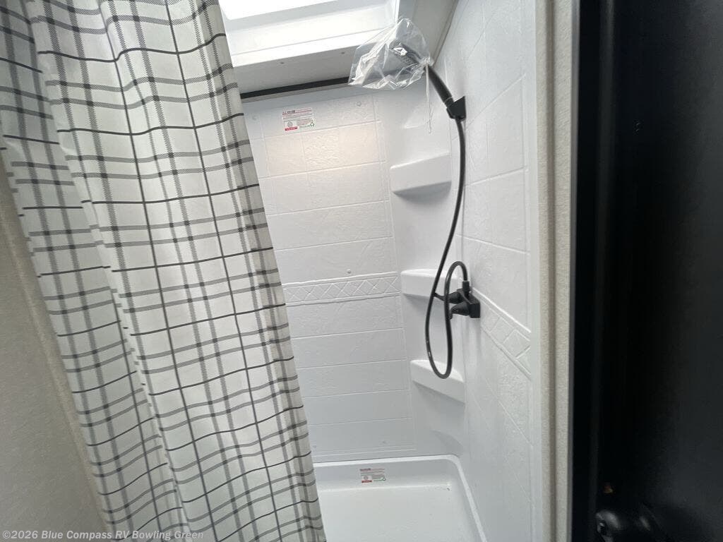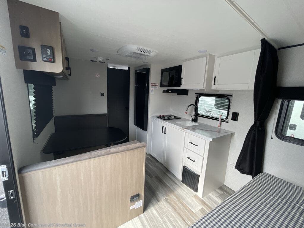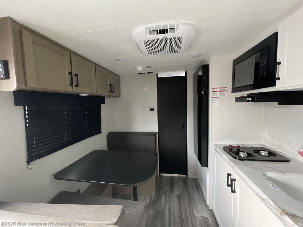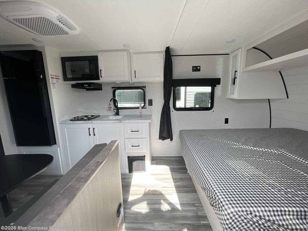 This travel trailer includes everything you need for fun trips at the lake. When you arrive at the campground, you can unload the exterior storage, then put out the 12' power awning with LED lights. There is also an LP Quick Connect if you want to hook up your own grill! The booth dinette inside will provide a place to dine together, and the full rear bath with a tub/shower will make bath time easier than ever for little ones. A front RV queen bed will provide a great night's rest, and the privacy curtain will be appreciated when you're getting dressed in the morning.
