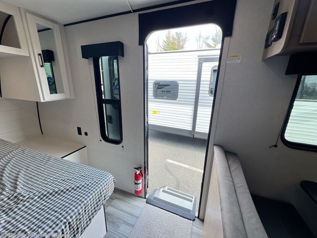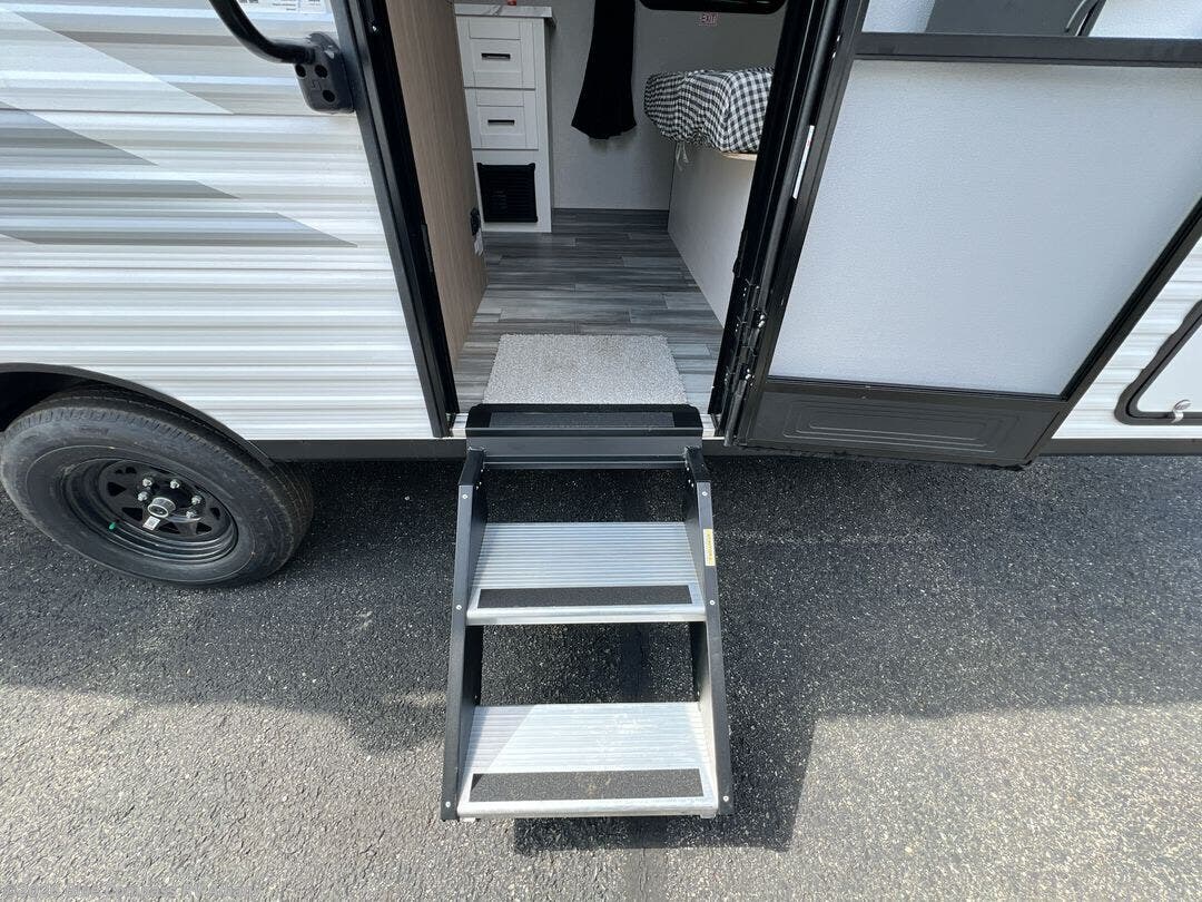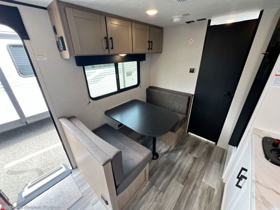This travel trailer includes everything you need for fun trips at the lake. When you arrive at the campground, you can unload the exterior storage, then put out the 12' power awning with LED lights. There is also an LP Quick Connect if you want to hook up your own grill! The booth dinette inside will provide a place to dine together, and the full rear bath with a tub/shower will make bath time easier than ever for little ones. A front RV queen bed will provide a great night's rest, and the privacy curtain will be appreciated when you're getting dressed in the morning.