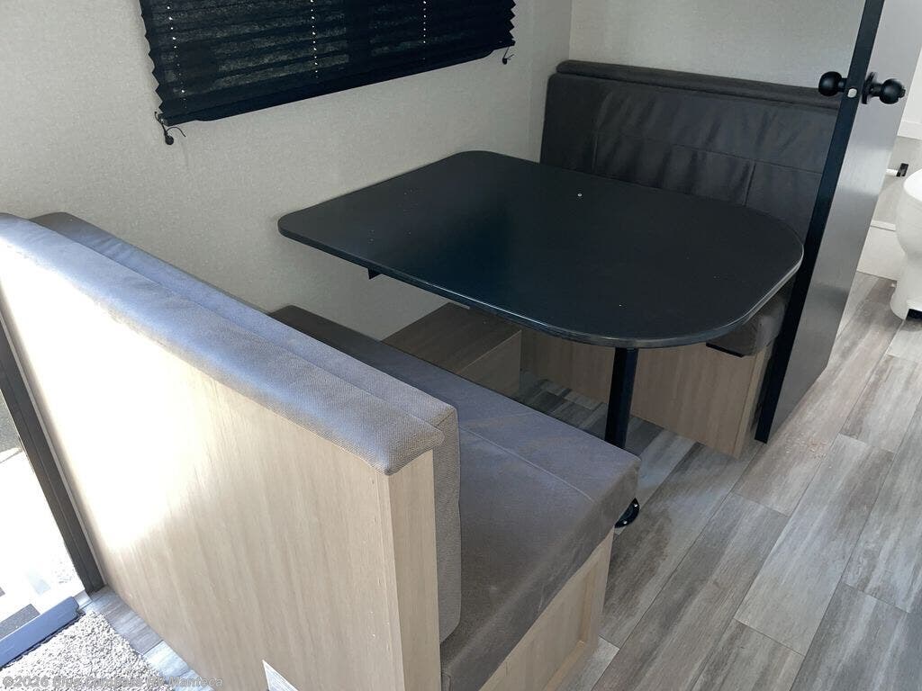 This travel trailer includes everything you need for fun trips at the lake. When you arrive at the campground, you can unload the exterior storage, then put out the 12' power awning with LED lights. There is also an LP Quick Connect if you want to hook up your own grill! The booth dinette inside will provide a place to dine together, and the full rear bath with a tub/shower will make bath time easier than ever for little ones. A front RV queen bed will provide a great night's rest, and the privacy curtain will be appreciated when you're getting dressed in the morning.