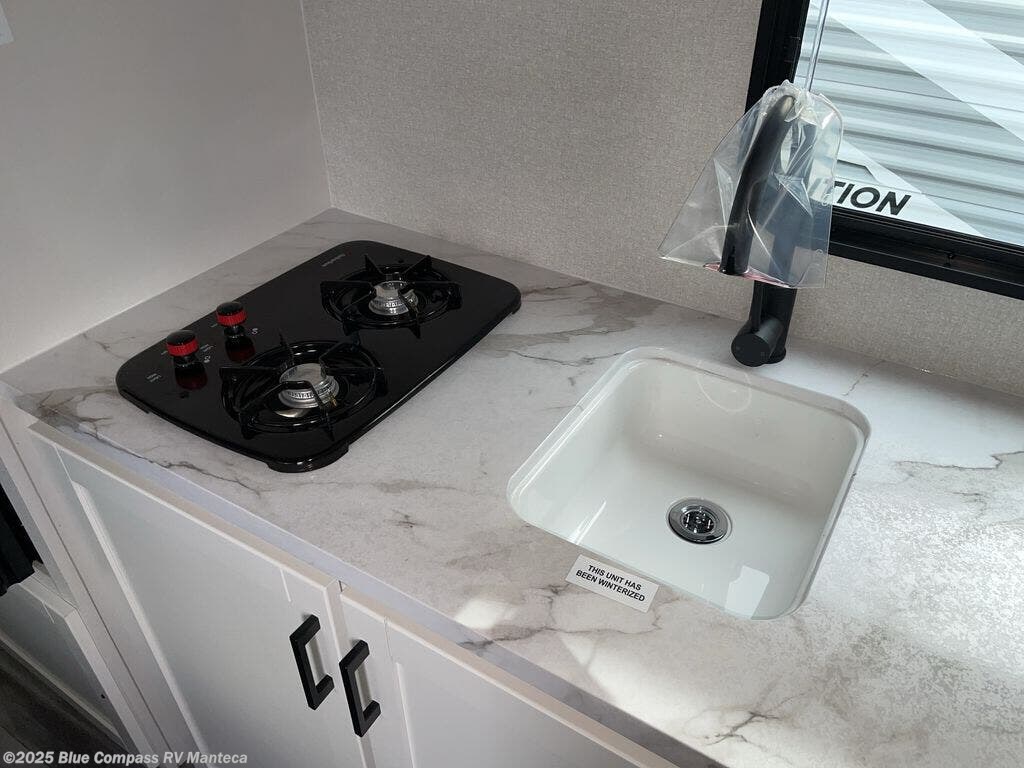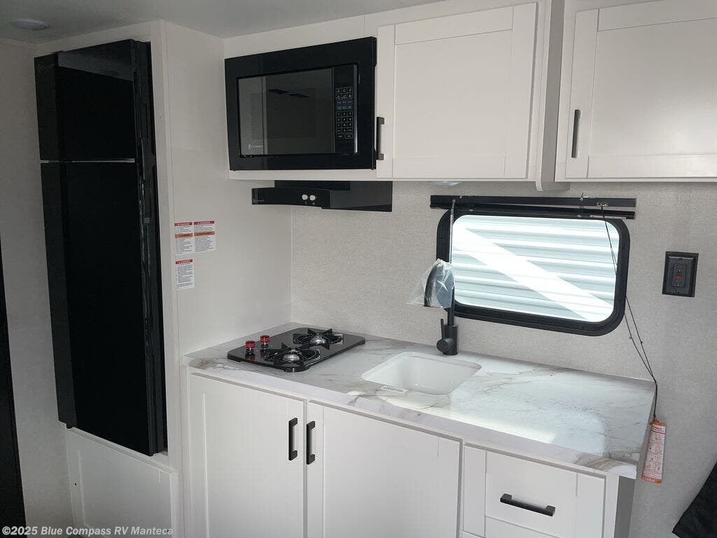 This travel trailer includes everything you need for fun trips at the lake. When you arrive at the campground, you can unload the exterior storage, then put out the 12' power awning with LED lights. There is also an LP Quick Connect if you want to hook up your own grill! The booth dinette inside will provide a place to dine together, and the full rear bath with a tub/shower will make bath time easier than ever for little ones. A front RV queen bed will provide a great night's rest, and the privacy curtain will be appreciated when you're getting dressed in the morning.