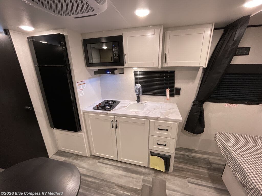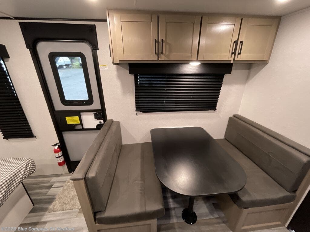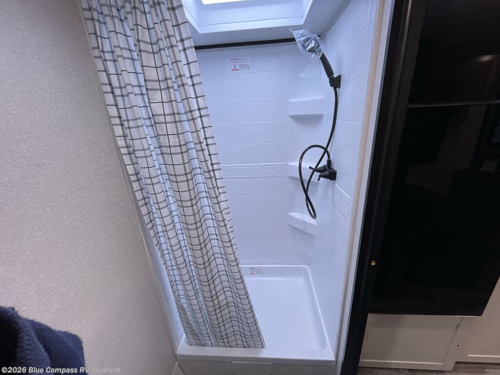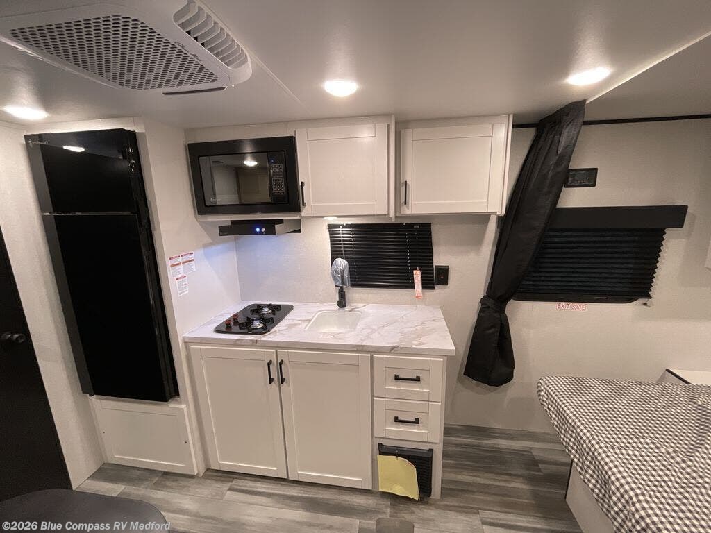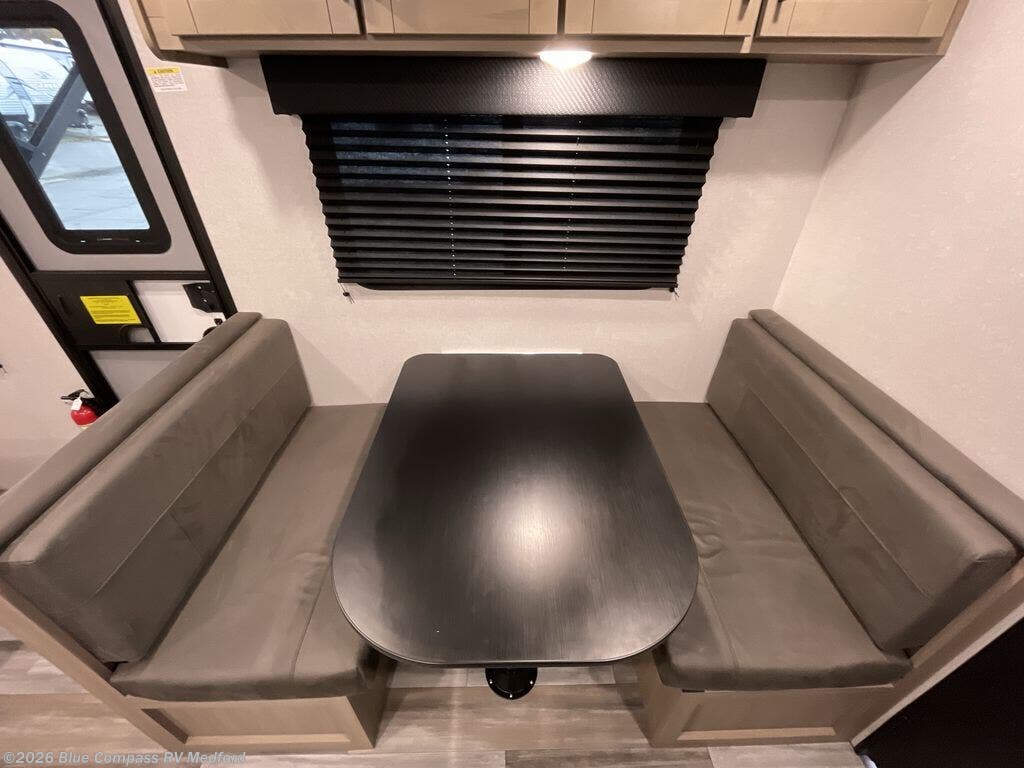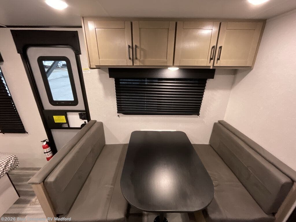 This travel trailer includes everything you need for fun trips at the lake. When you arrive at the campground, you can unload the exterior storage, then put out the 12' power awning with LED lights. There is also an LP Quick Connect if you want to hook up your own grill! The booth dinette inside will provide a place to dine together, and the full rear bath with a tub/shower will make bath time easier than ever for little ones. A front RV queen bed will provide a great night's rest, and the privacy curtain will be appreciated when you're getting dressed in the morning.