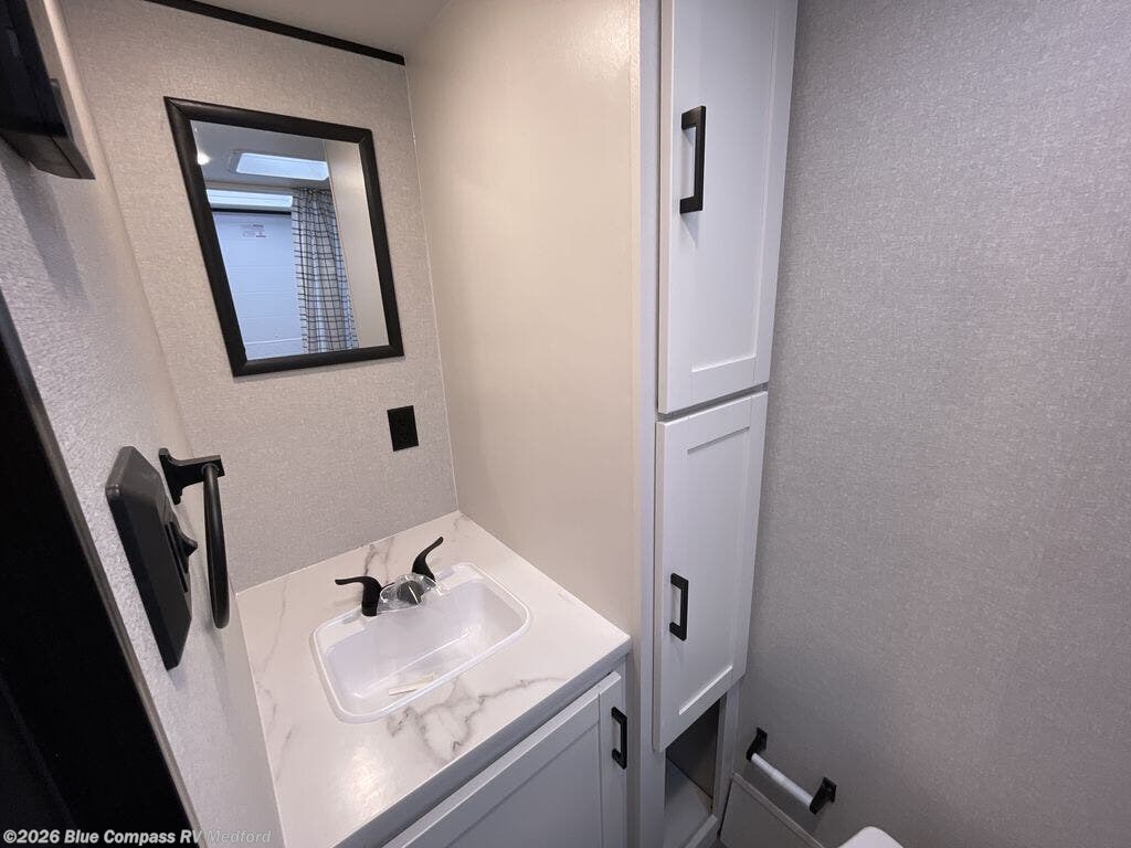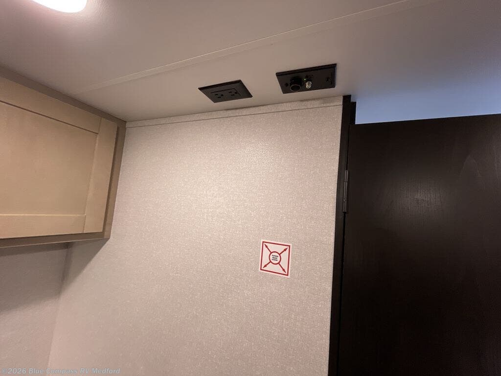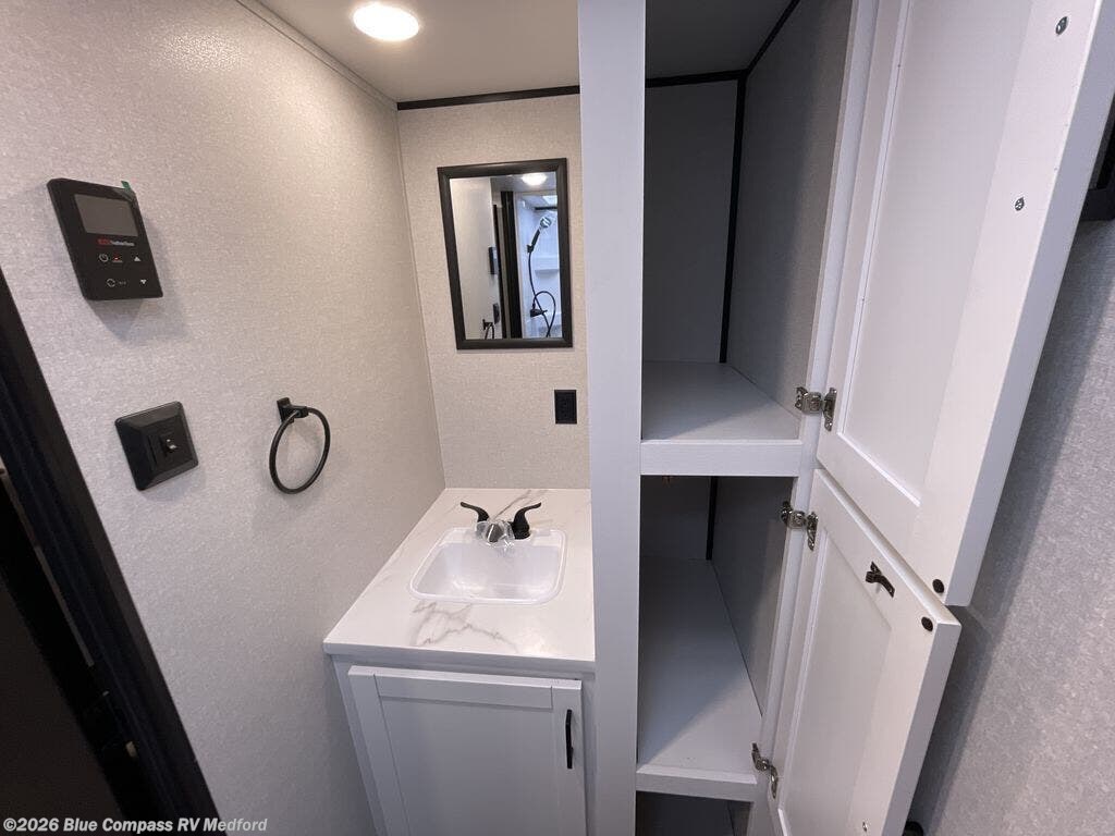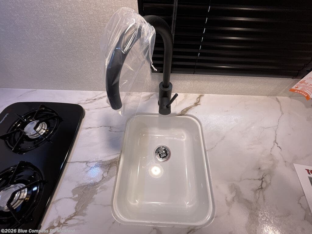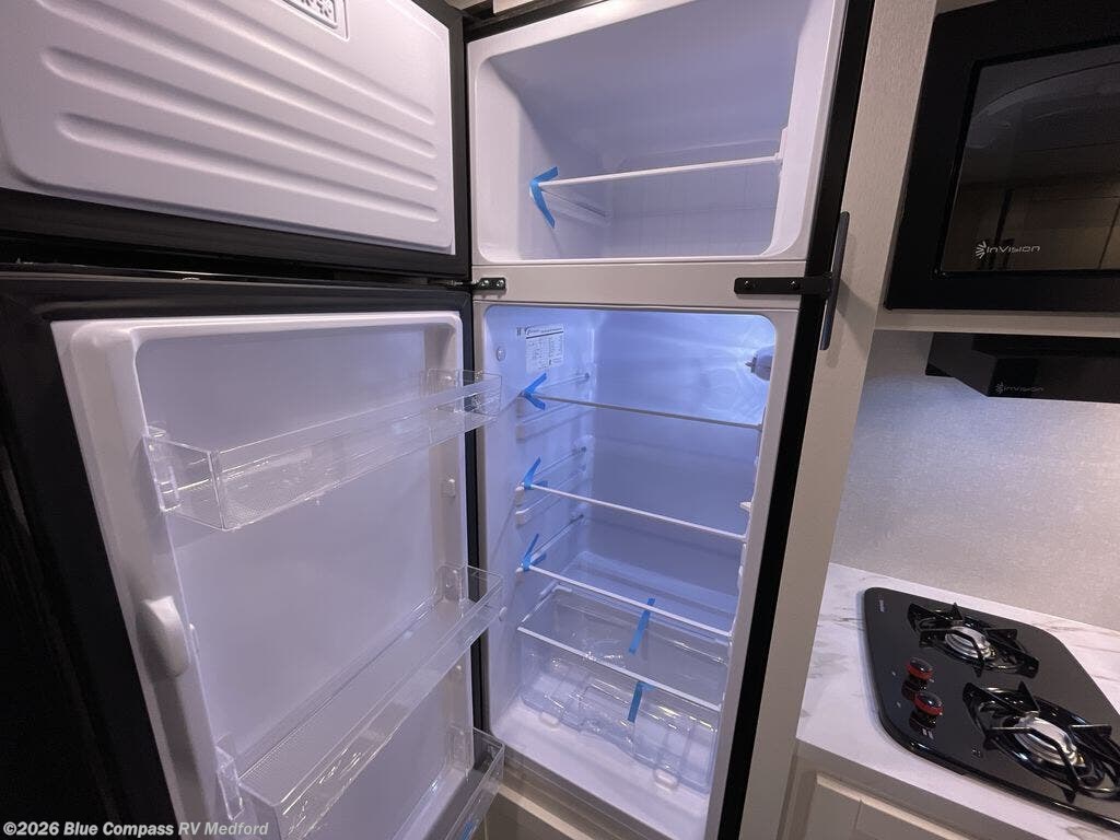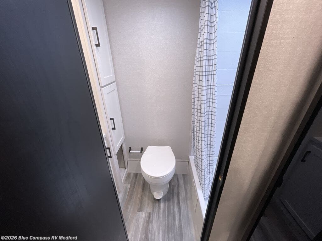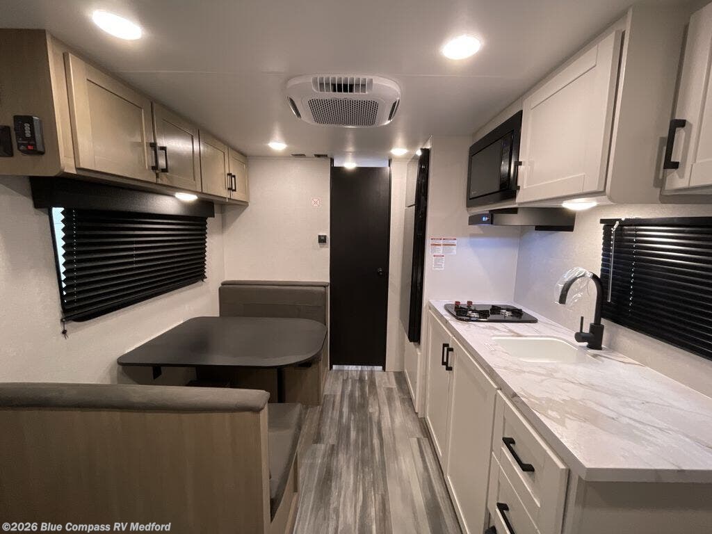 This travel trailer includes everything you need for fun trips at the lake. When you arrive at the campground, you can unload the exterior storage, then put out the 12' power awning with LED lights. There is also an LP Quick Connect if you want to hook up your own grill! The booth dinette inside will provide a place to dine together, and the full rear bath with a tub/shower will make bath time easier than ever for little ones. A front RV queen bed will provide a great night's rest, and the privacy curtain will be appreciated when you're getting dressed in the morning.