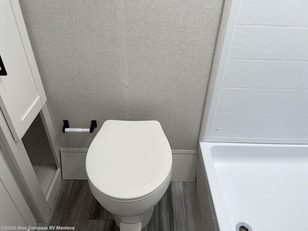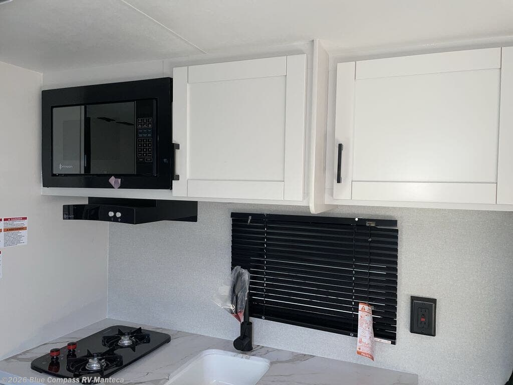 This travel trailer includes everything you need for fun trips at the lake. When you arrive at the campground, you can unload the exterior storage, then put out the 12' power awning with LED lights. There is also an LP Quick Connect if you want to hook up your own grill! The booth dinette inside will provide a place to dine together, and the full rear bath with a tub/shower will make bath time easier than ever for little ones. A front RV queen bed will provide a great night's rest, and the privacy curtain will be appreciated when you're getting dressed in the morning.