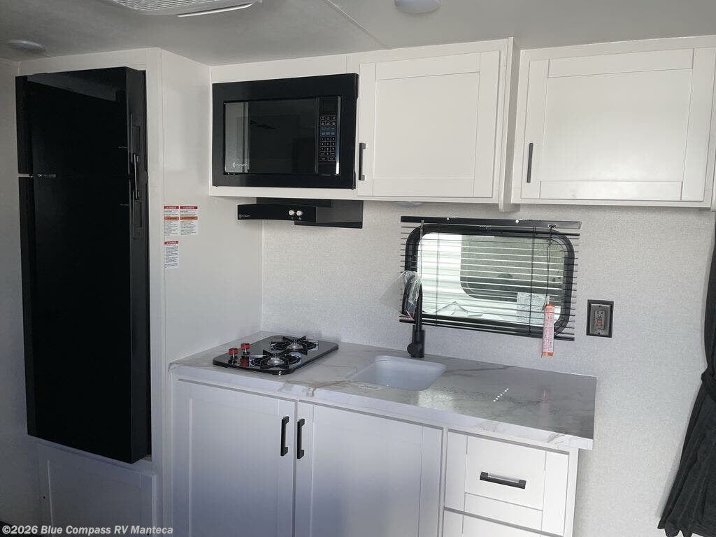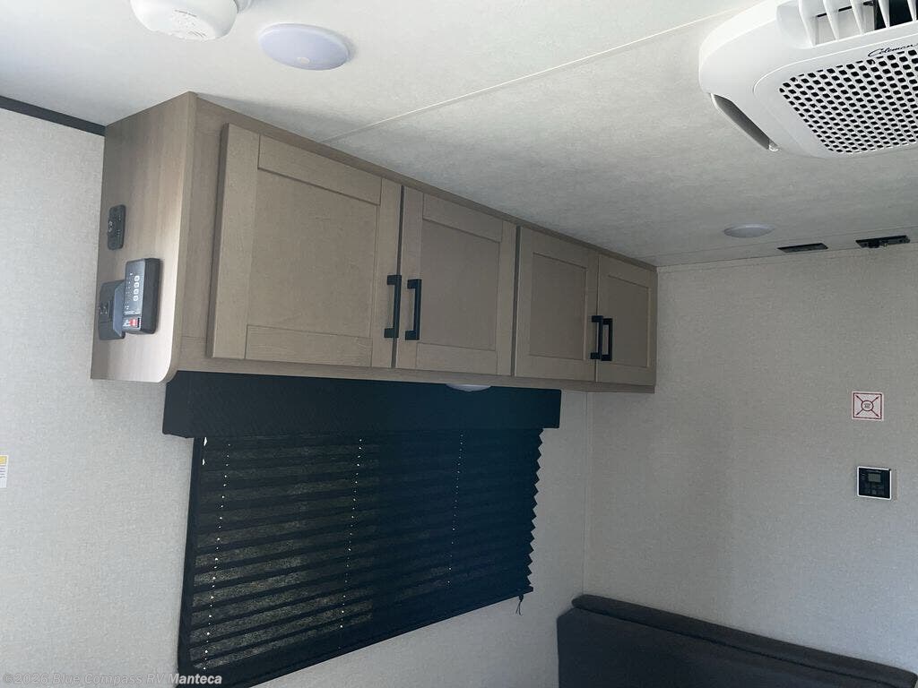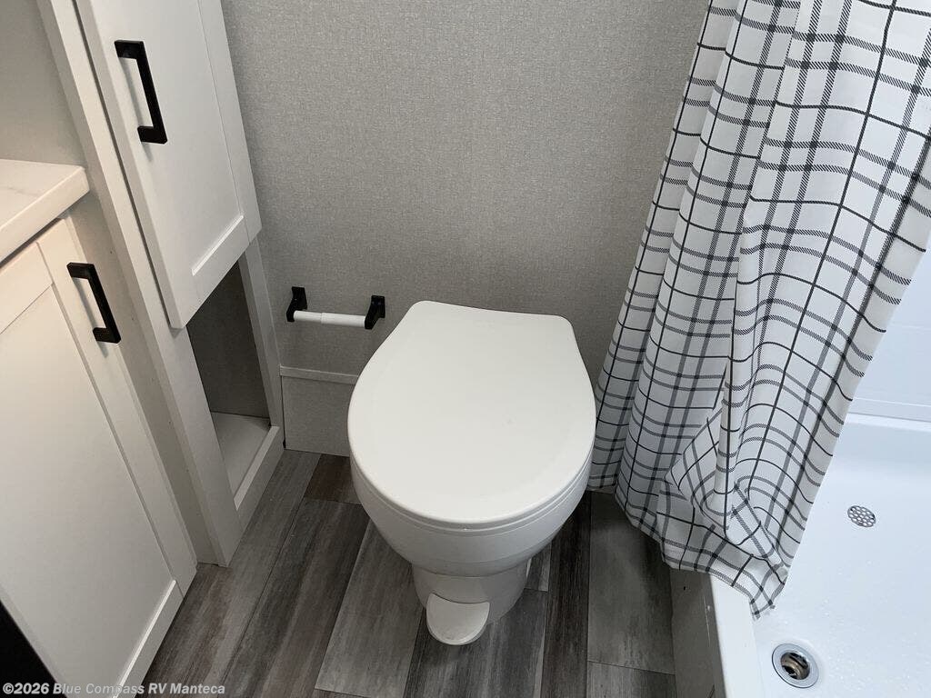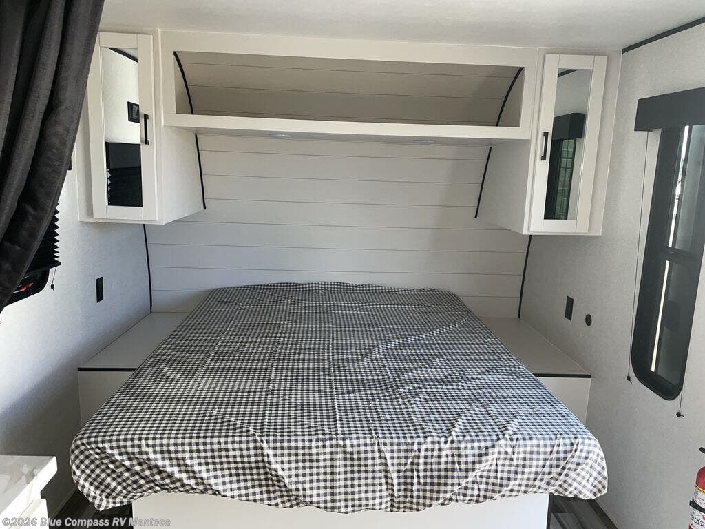 This travel trailer includes everything you need for fun trips at the lake. When you arrive at the campground, you can unload the exterior storage, then put out the 12' power awning with LED lights. There is also an LP Quick Connect if you want to hook up your own grill! The booth dinette inside will provide a place to dine together, and the full rear bath with a tub/shower will make bath time easier than ever for little ones. A front RV queen bed will provide a great night's rest, and the privacy curtain will be appreciated when you're getting dressed in the morning.