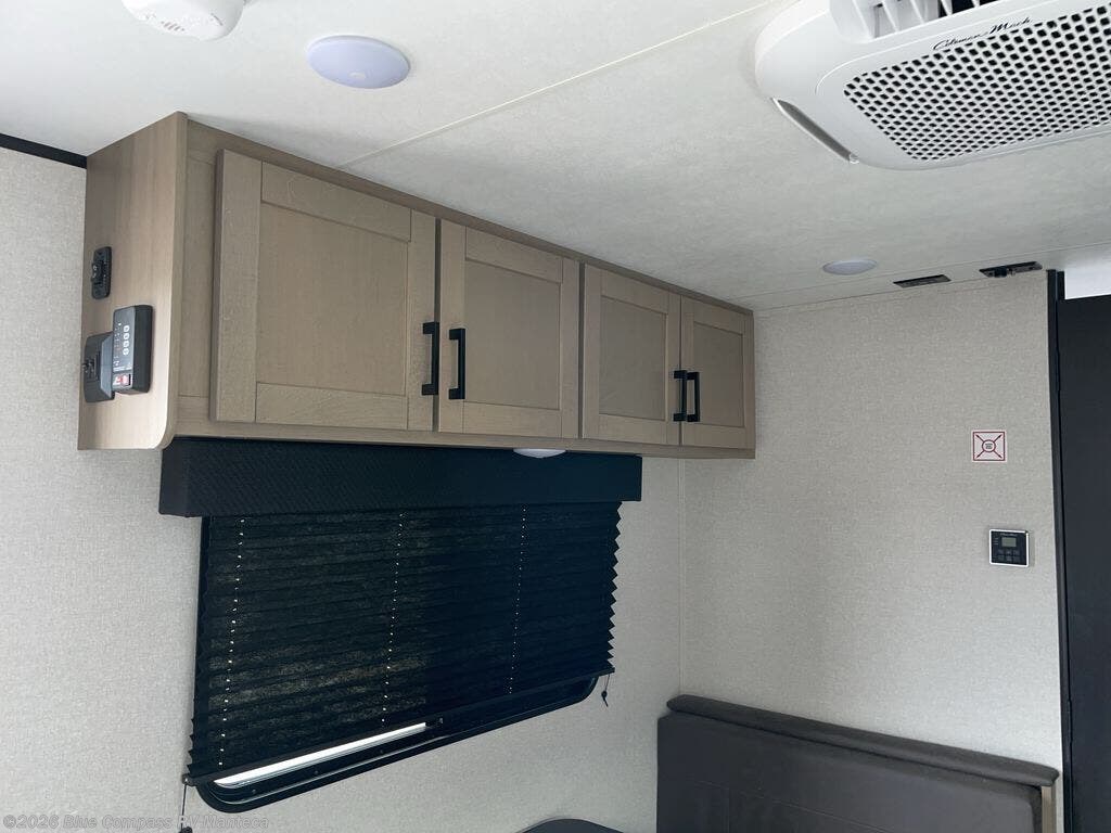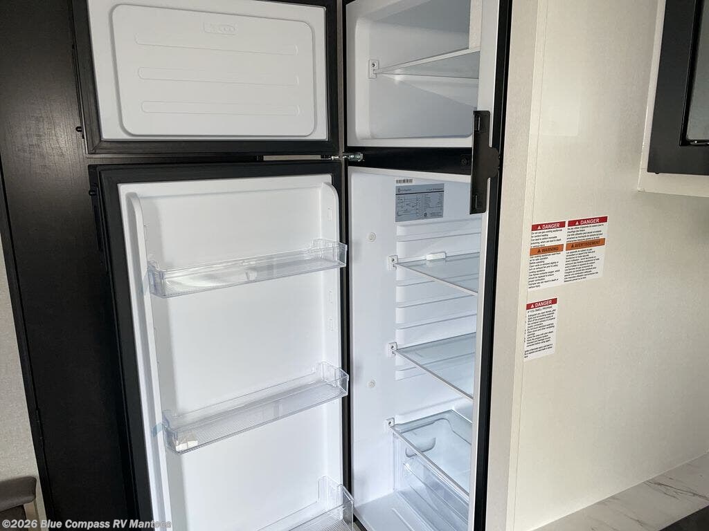 This travel trailer includes everything you need for fun trips at the lake. When you arrive at the campground, you can unload the exterior storage, then put out the 12' power awning with LED lights. There is also an LP Quick Connect if you want to hook up your own grill! The booth dinette inside will provide a place to dine together, and the full rear bath with a tub/shower will make bath time easier than ever for little ones. A front RV queen bed will provide a great night's rest, and the privacy curtain will be appreciated when you're getting dressed in the morning.