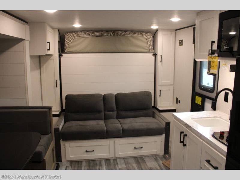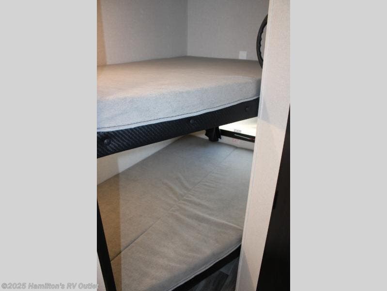 Any time spent in this travel trailer will be time well spent! You can easily sleep eight people each night thanks to the double-size bunks, front Murphy bed, and U-shaped dinette within the slide out. There is a full bath next to the bunks for easy nighttime use, and the linen closet will be perfect for clean towels. A cooktop, microwave oven, and 8 cu. ft. 12V refrigerator will let you cook and store food, and there is an overhead cabinet for spices or snacks! The optional STX Edition can be added on this model which includes 16 in. off-road tires, triple entry steps, a power tongue jack, and more!