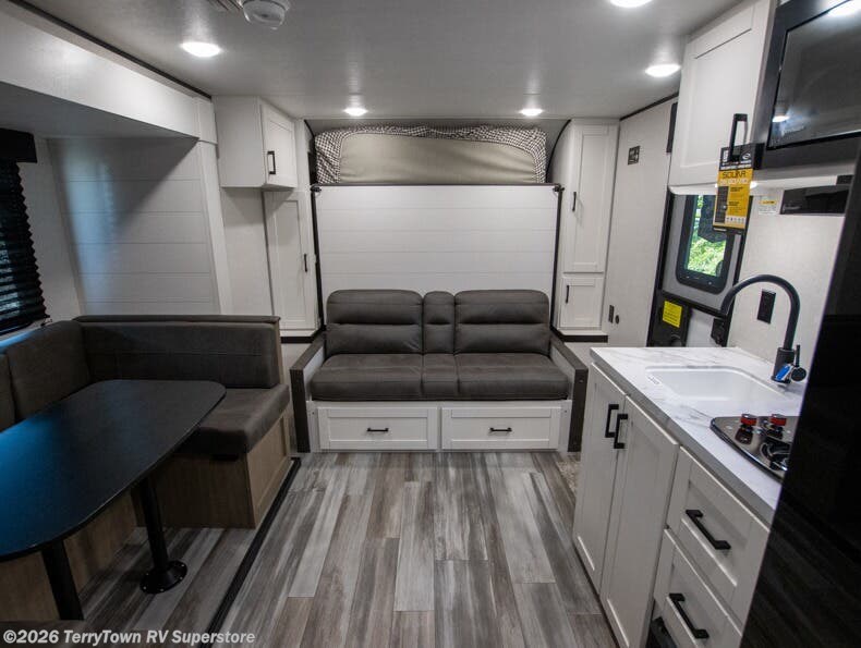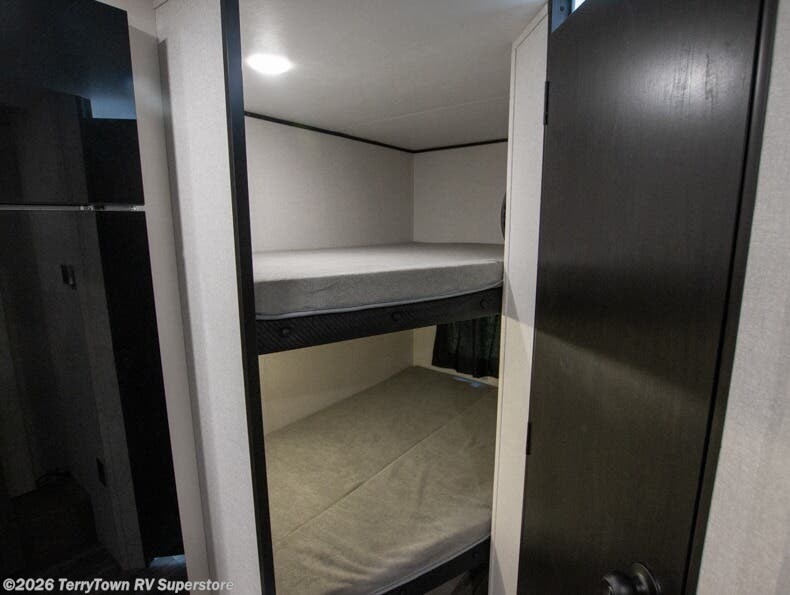 Any time spent in this travel trailer will be time well spent! You can easily sleep eight people each night thanks to the double-size bunks, front Murphy bed, and U-shaped dinette within the slide out. There is a full bath next to the bunks for easy nighttime use, and the linen closet will be perfect for clean towels. A cooktop, microwave oven, and 8 cu. ft. 12V refrigerator will let you cook and store food, and there is an overhead cabinet for spices or snacks! The optional STX Edition can be added on this model which includes 16 in. off-road tires, triple entry steps, a power tongue jack, and more!