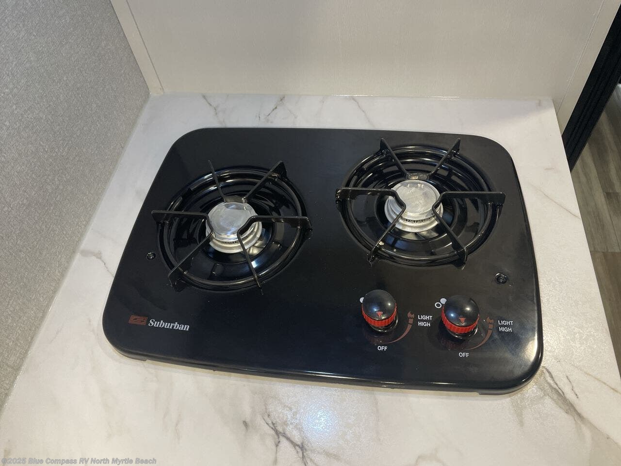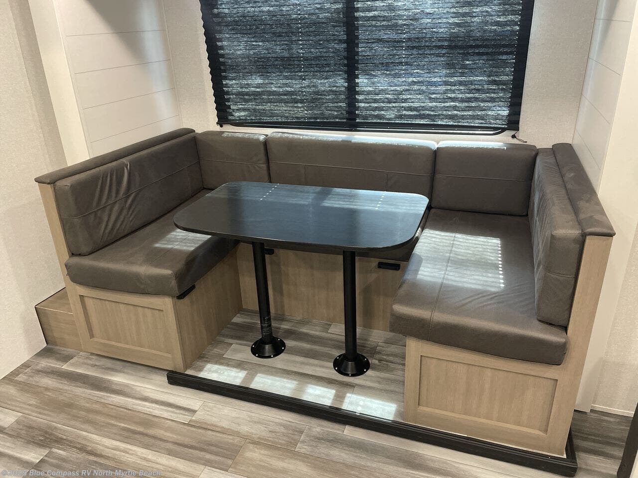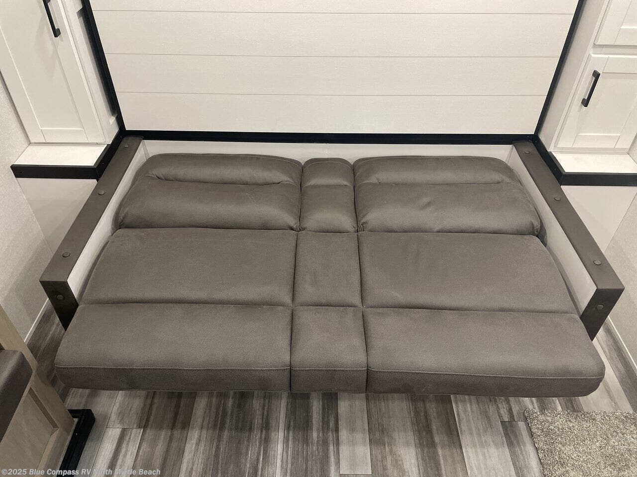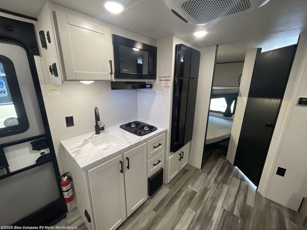 Any time spent in this travel trailer will be time well spent! You can easily sleep eight people each night thanks to the double-size bunks, front Murphy bed, and U-shaped dinette within the slide out. There is a full bath next to the bunks for easy nighttime use, and the linen closet will be perfect for clean towels. A cooktop, microwave oven, and 8 cu. ft. 12V refrigerator will let you cook and store food, and there is an overhead cabinet for spices or snacks!