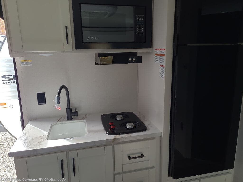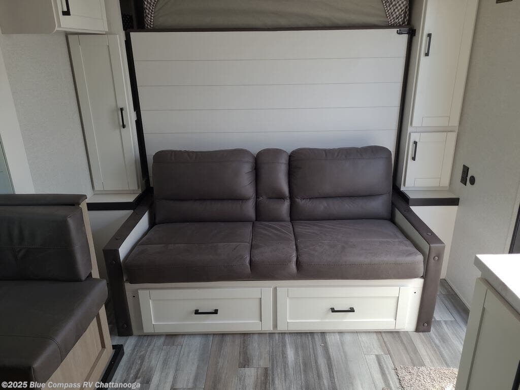 Any time spent in this travel trailer will be time well spent! You can easily sleep eight people each night thanks to the double-size bunks, front Murphy bed, and U-shaped dinette within the slide out. There is a full bath next to the bunks for easy nighttime use, and the linen closet will be perfect for clean towels. A cooktop, microwave oven, and 8 cu. ft. 12V refrigerator will let you cook and store food, and there is an overhead cabinet for spices or snacks!