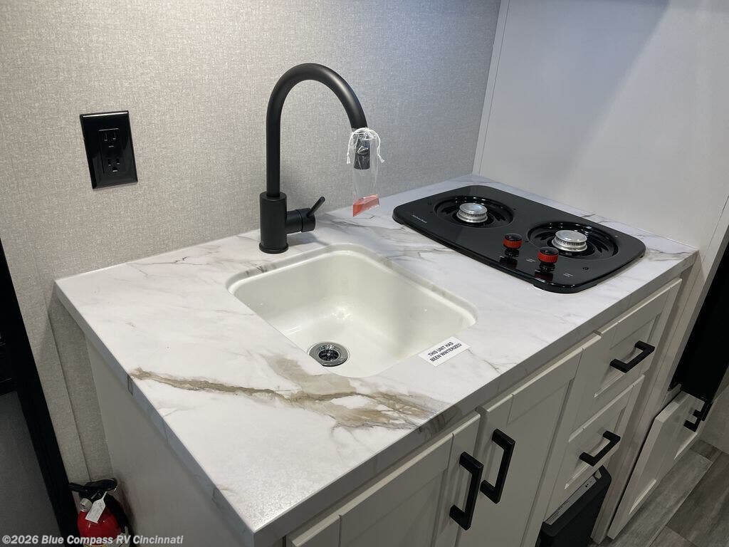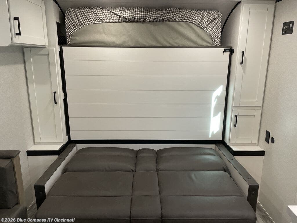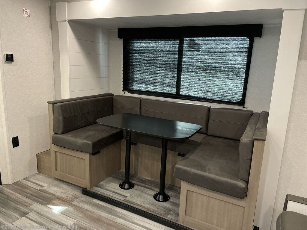 Any time spent in this travel trailer will be time well spent! You can easily sleep eight people each night thanks to the double-size bunks, front Murphy bed, and U-shaped dinette within the slide out. There is a full bath next to the bunks for easy nighttime use, and the linen closet will be perfect for clean towels. A cooktop, microwave oven, and 8 cu. ft. 12V refrigerator will let you cook and store food, and there is an overhead cabinet for spices or snacks!