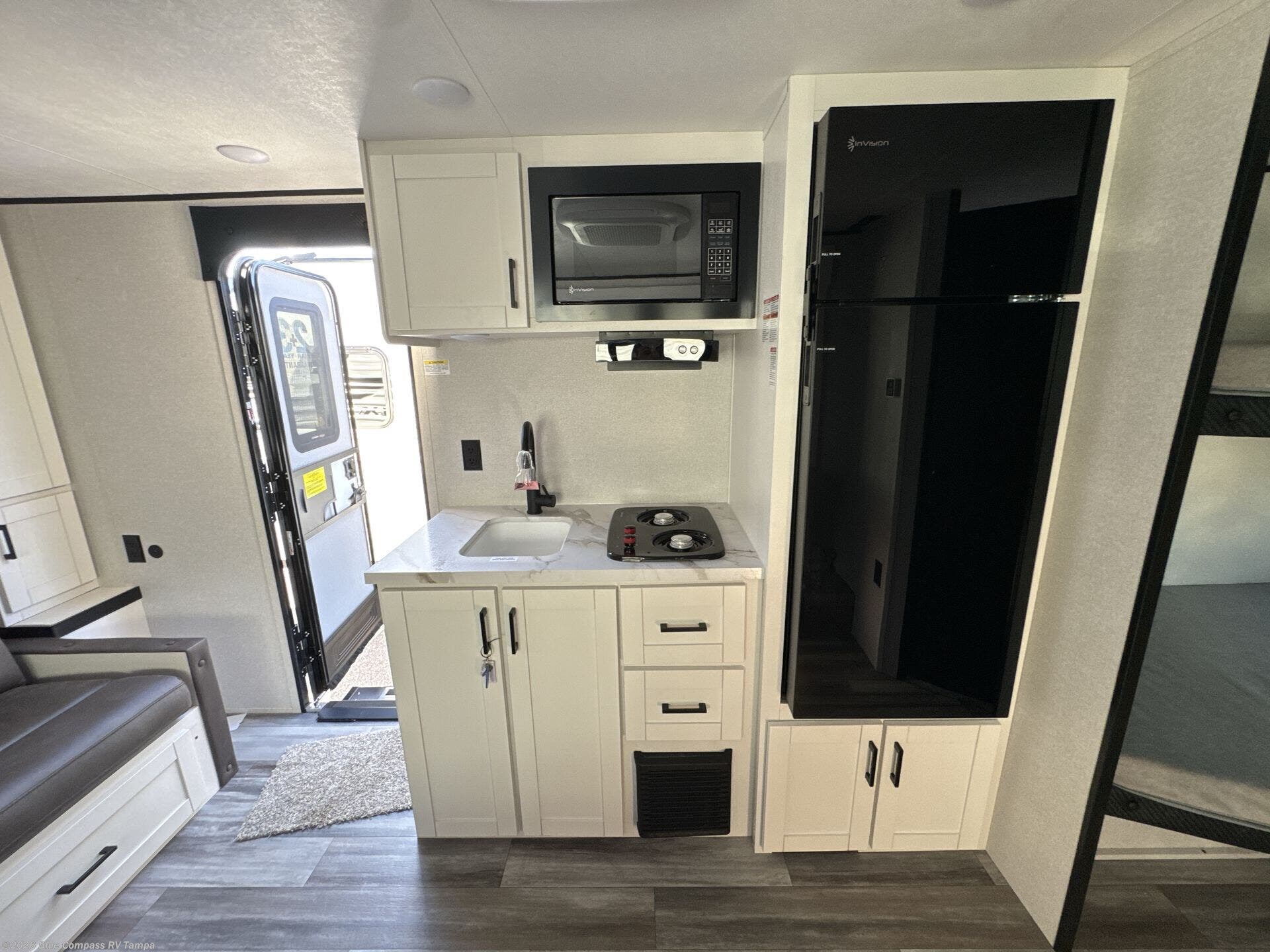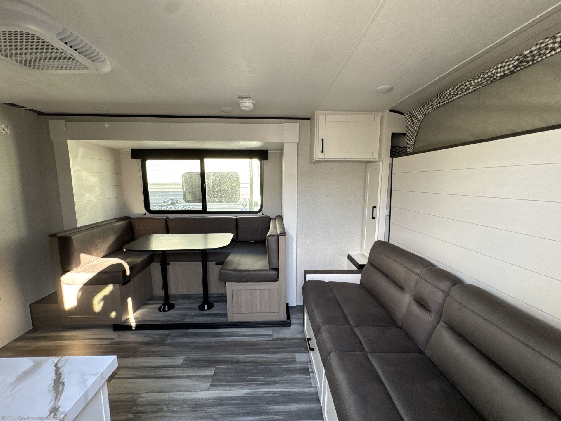 Any time spent in this travel trailer will be time well spent! You can easily sleep eight people each night thanks to the double-size bunks, front Murphy bed, and U-shaped dinette within the slide out. There is a full bath next to the bunks for easy nighttime use, and the linen closet will be perfect for clean towels. A cooktop, microwave oven, and 8 cu. ft. 12V refrigerator will let you cook and store food, and there is an overhead cabinet for spices or snacks!
