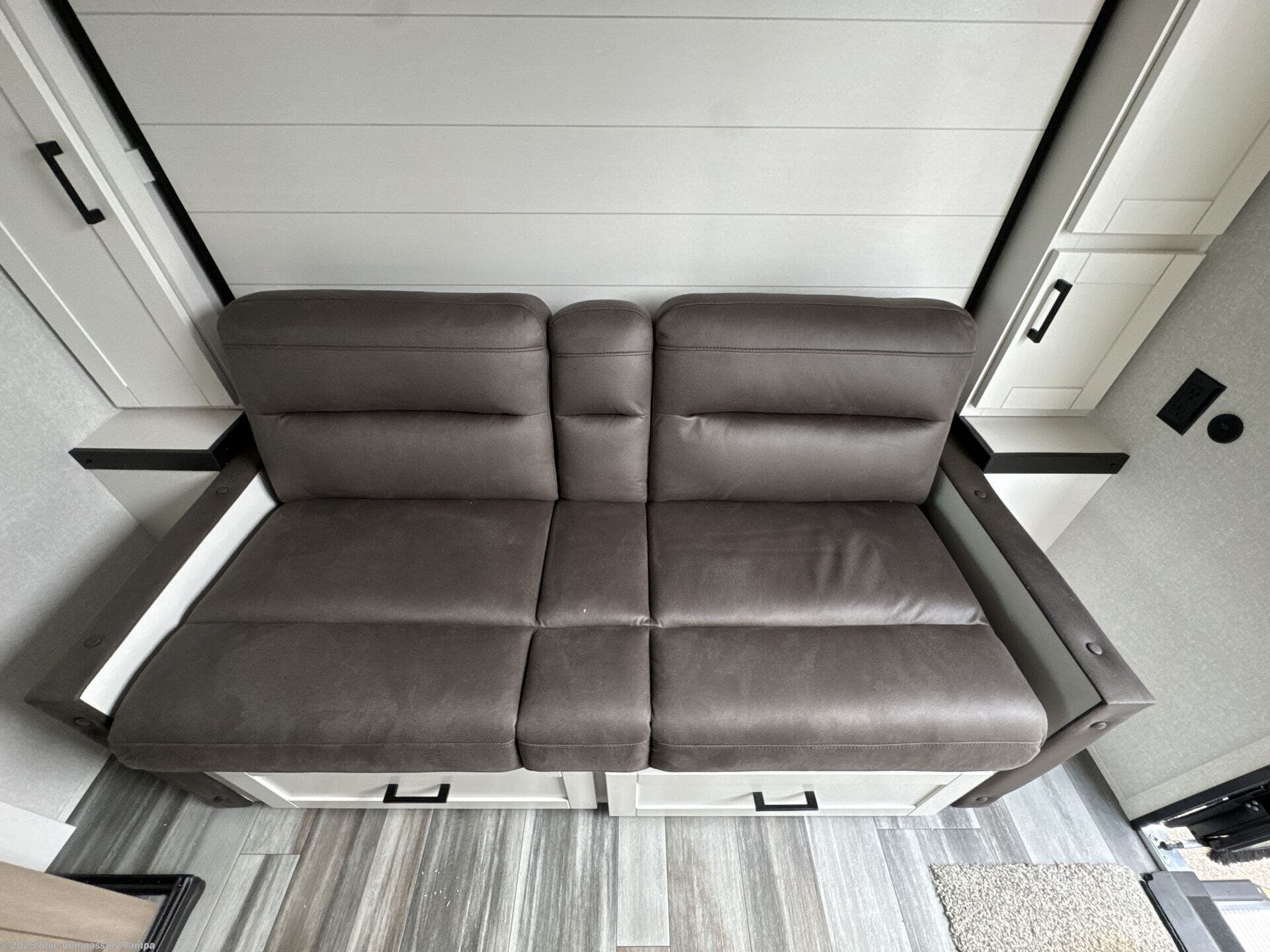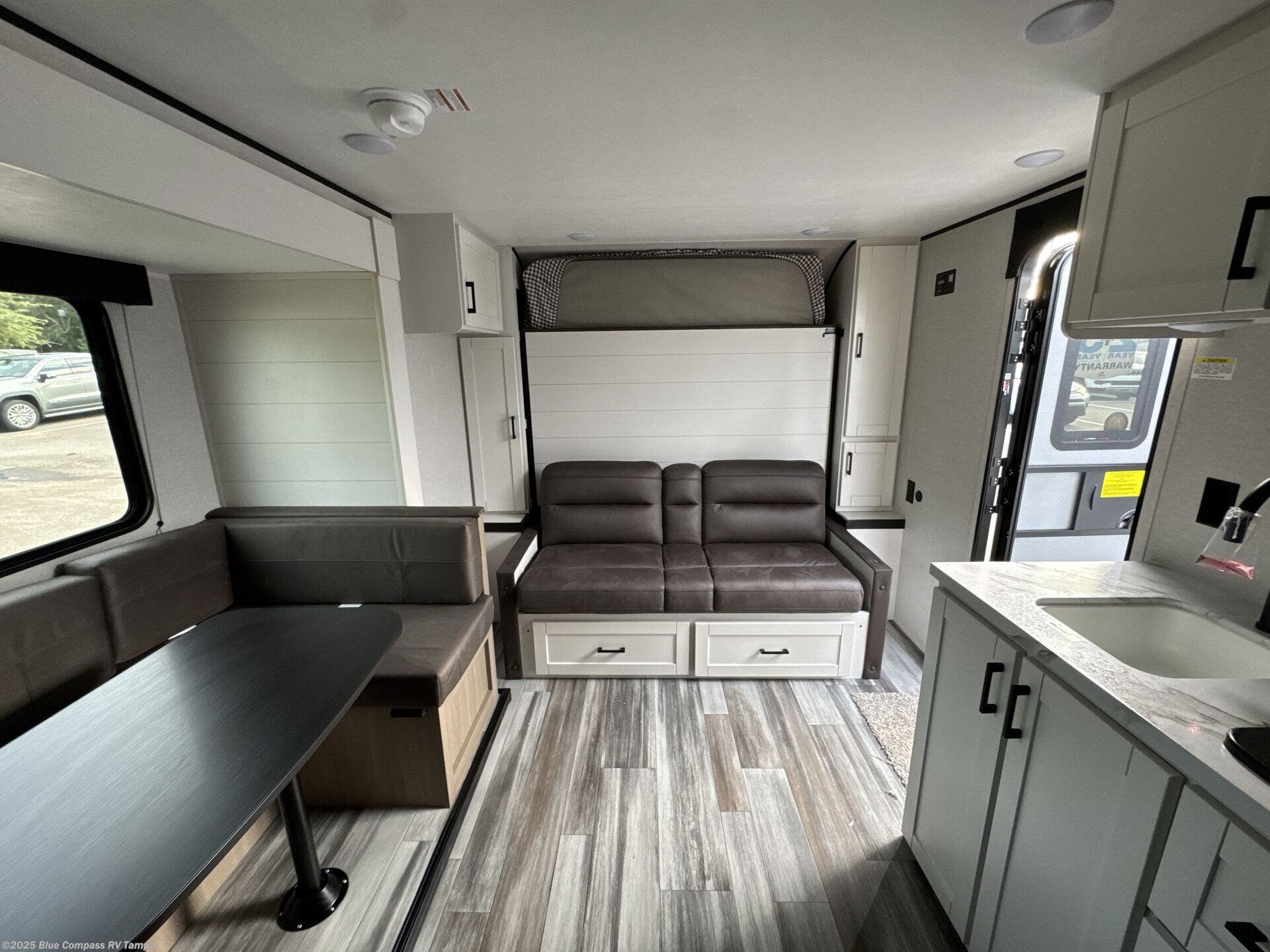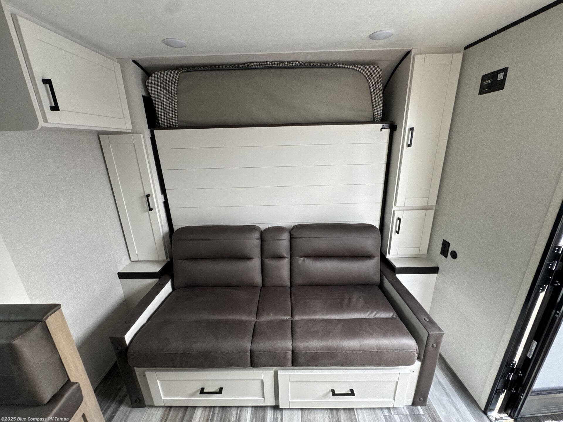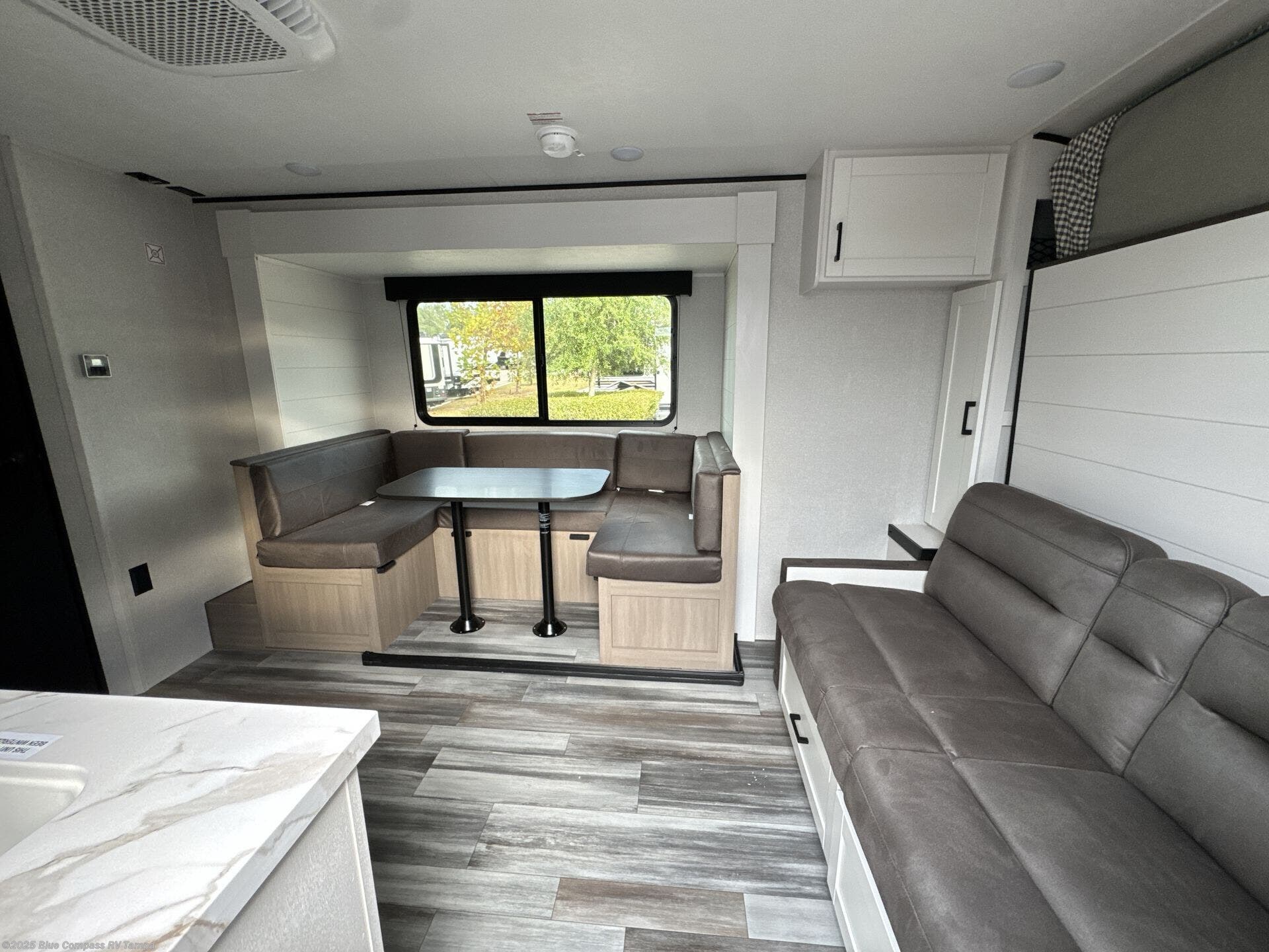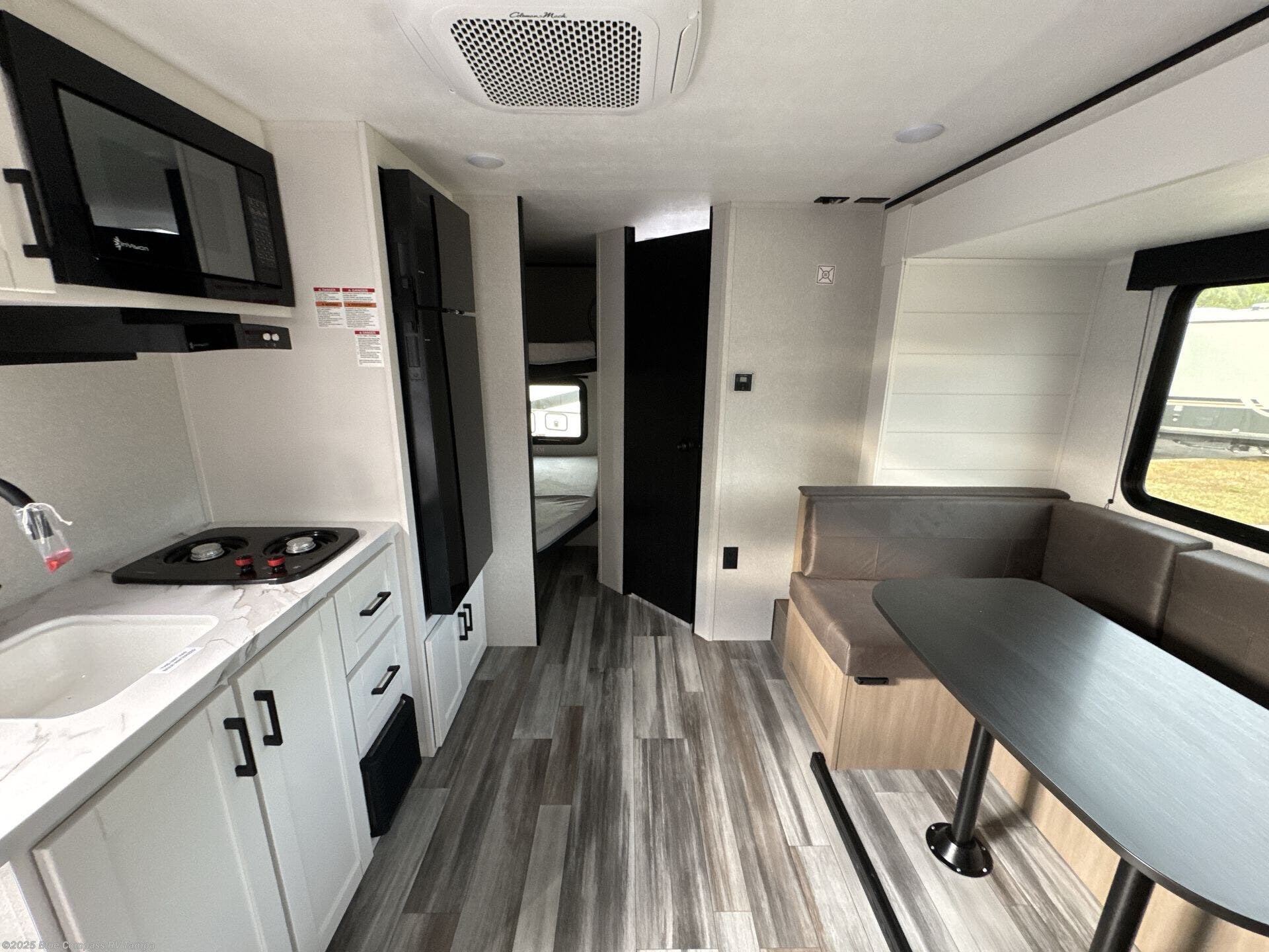 Any time spent in this travel trailer will be time well spent! You can easily sleep eight people each night thanks to the double-size bunks, front Murphy bed, and U-shaped dinette within the slide out. There is a full bath next to the bunks for easy nighttime use, and the linen closet will be perfect for clean towels. A cooktop, microwave oven, and 8 cu. ft. 12V refrigerator will let you cook and store food, and there is an overhead cabinet for spices or snacks!