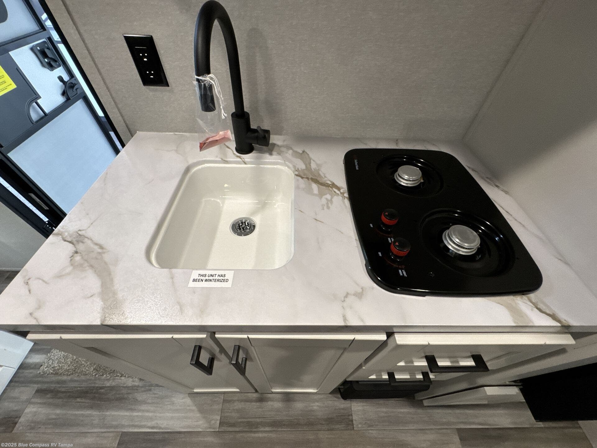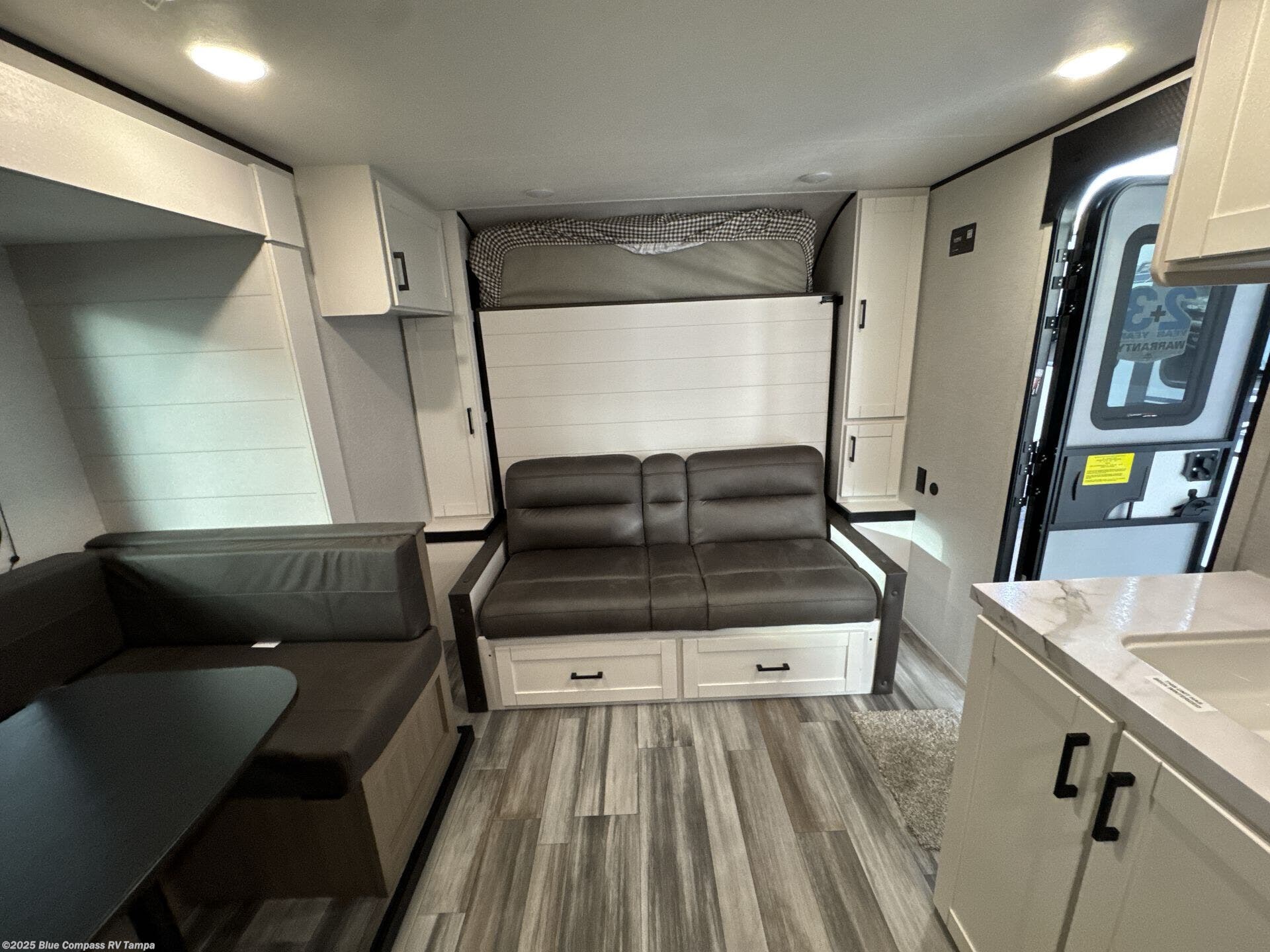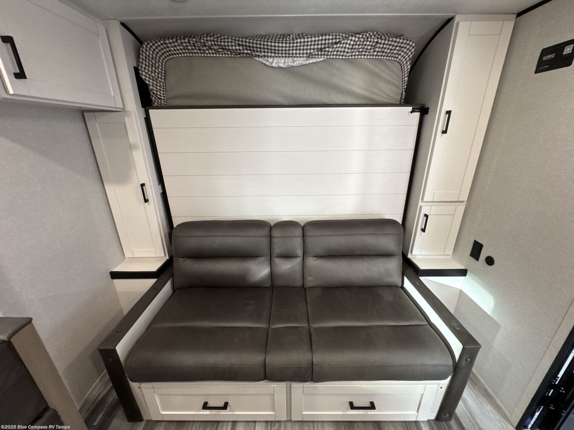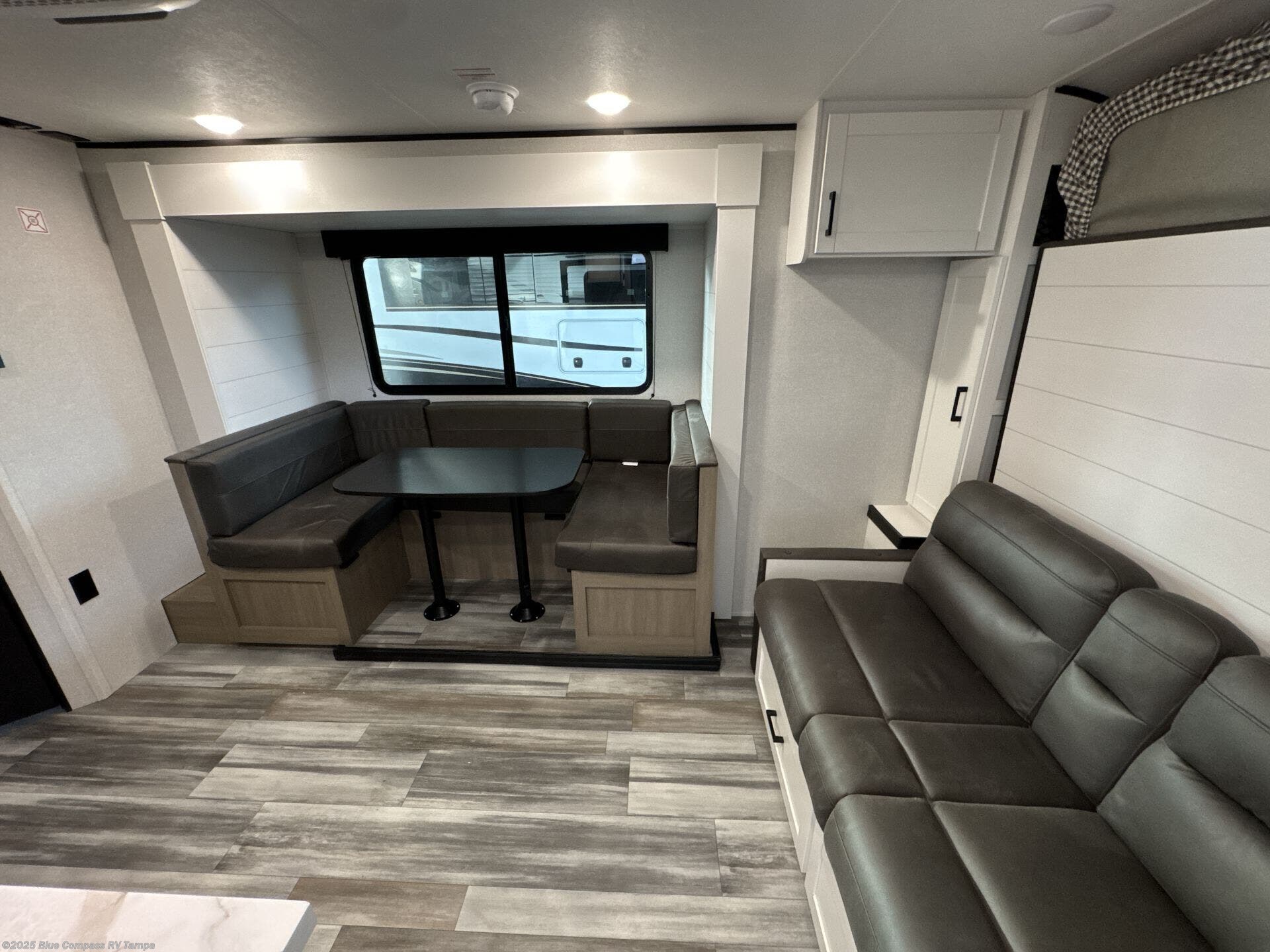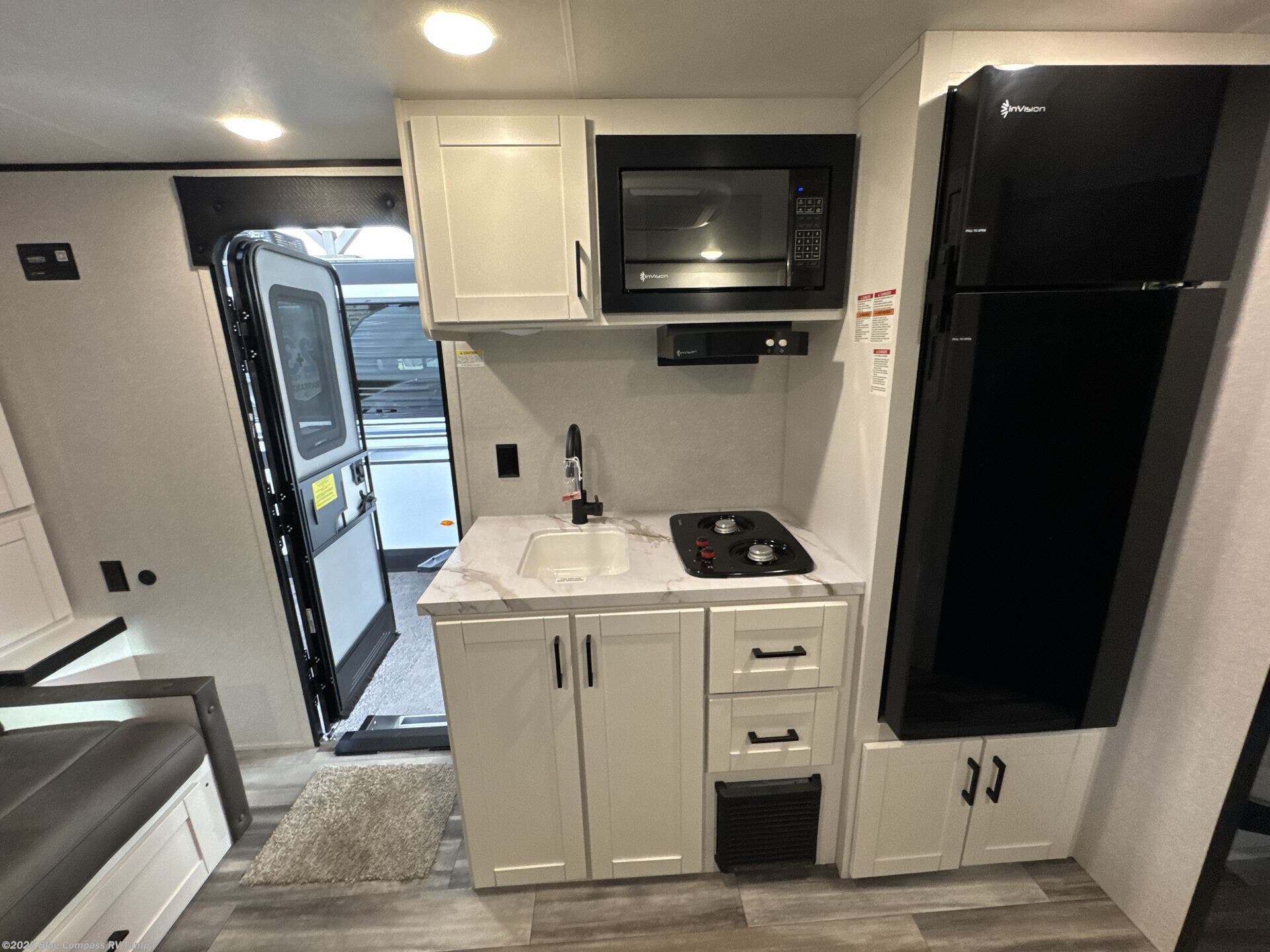 Any time spent in this travel trailer will be time well spent! You can easily sleep eight people each night thanks to the double-size bunks, front Murphy bed, and U-shaped dinette within the slide out. There is a full bath next to the bunks for easy nighttime use, and the linen closet will be perfect for clean towels. A cooktop, microwave oven, and 8 cu. ft. 12V refrigerator will let you cook and store food, and there is an overhead cabinet for spices or snacks!
