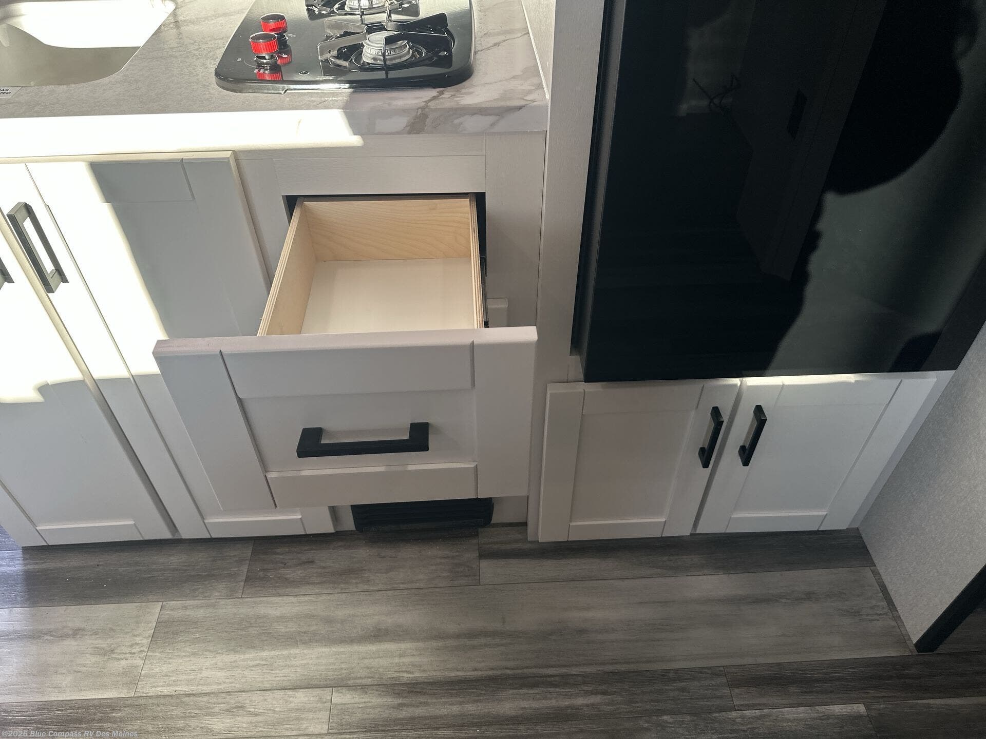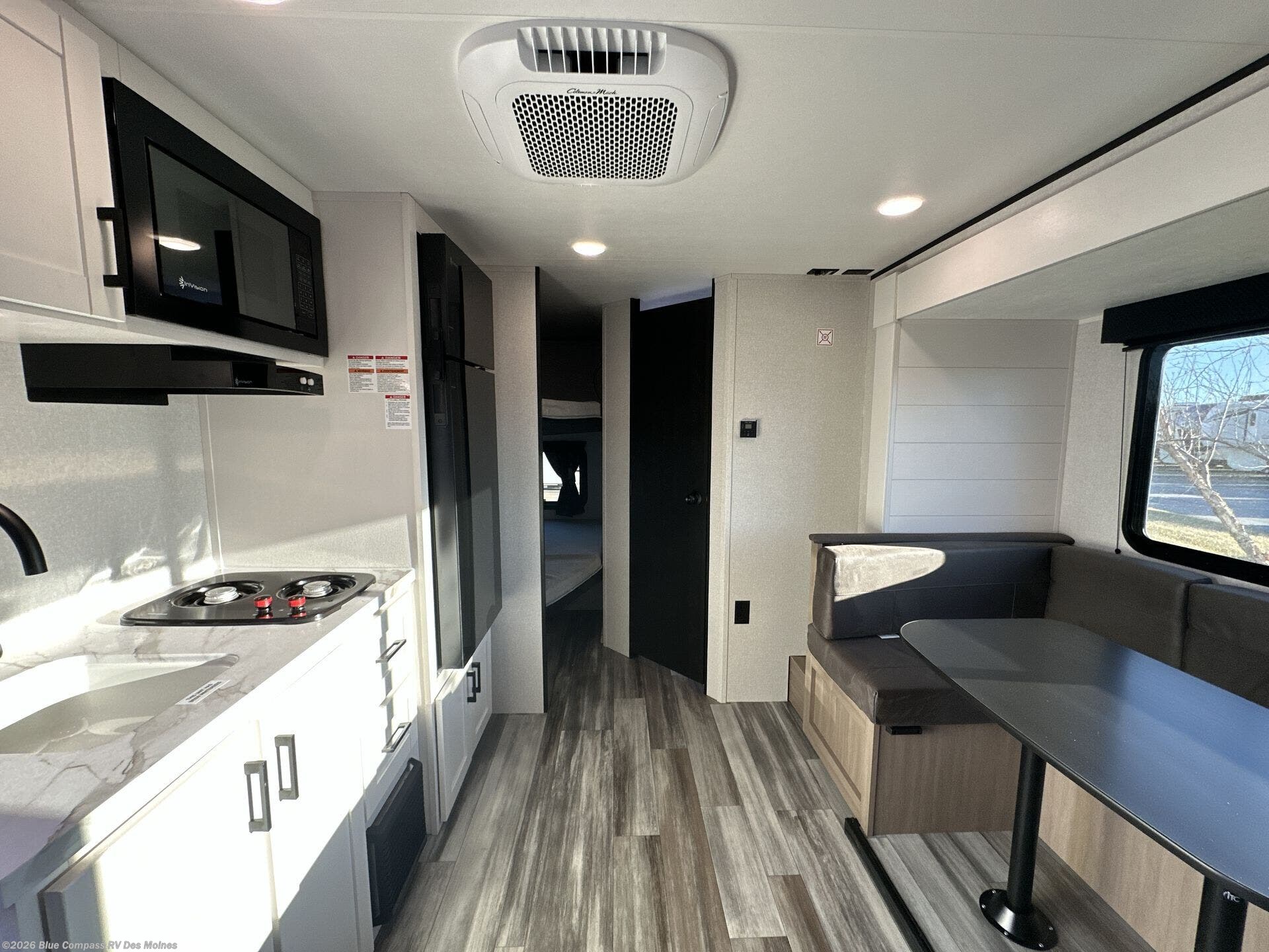Any time spent in this travel trailer will be time well spent! You can easily sleep eight people each night thanks to the double-size bunks, front Murphy bed, and U-shaped dinette within the slide out. There is a full bath next to the bunks for easy nighttime use, and the linen closet will be perfect for clean towels. A cooktop, microwave oven, and 8 cu. ft. 12V refrigerator will let you cook and store food, and there is an overhead cabinet for spices or snacks!