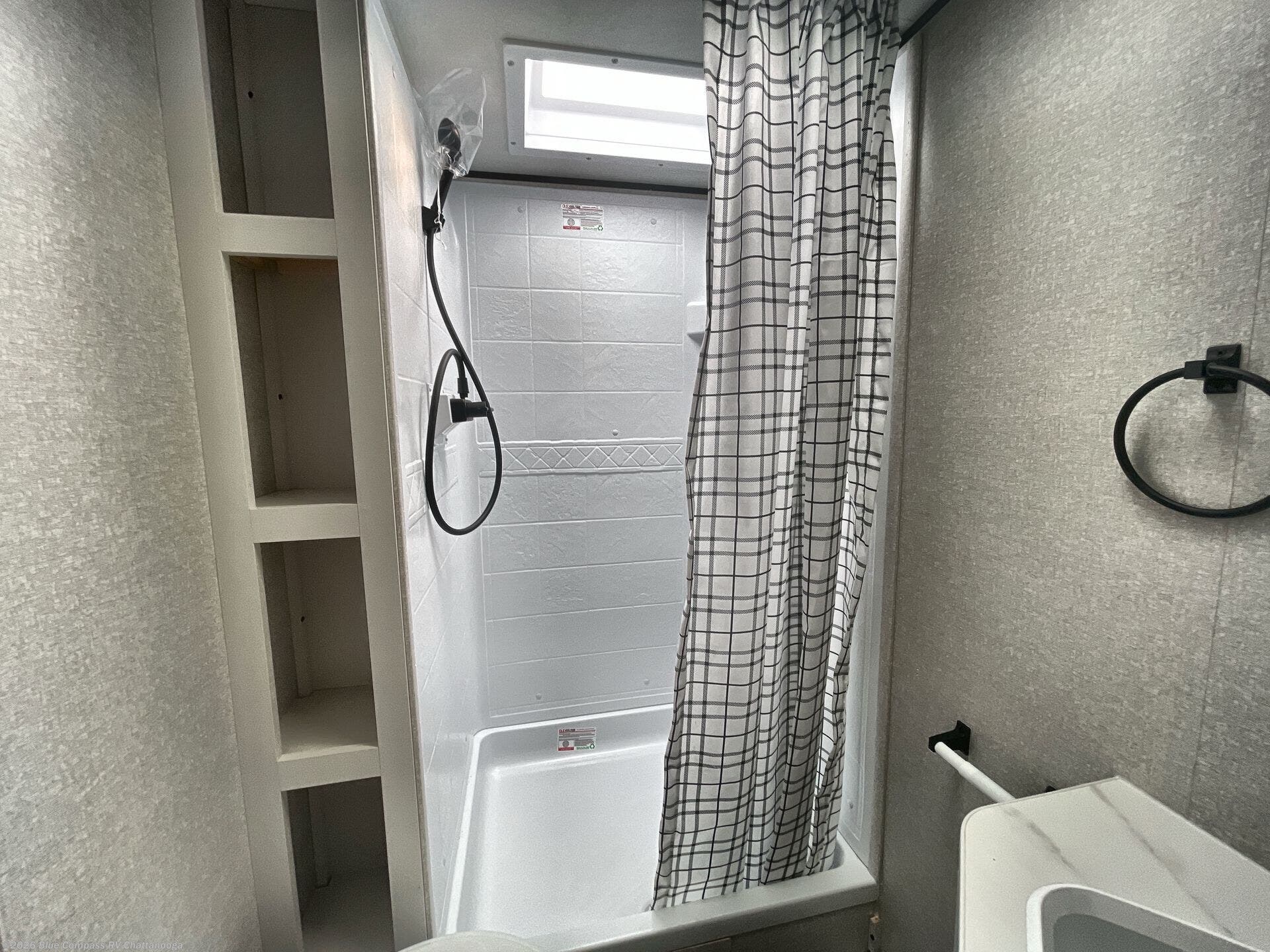 Any time spent in this travel trailer will be time well spent! You can easily sleep eight people each night thanks to the double-size bunks, front Murphy bed, and U-shaped dinette within the slide out. There is a full bath next to the bunks for easy nighttime use, and the linen closet will be perfect for clean towels. A cooktop, microwave oven, and 8 cu. ft. 12V refrigerator will let you cook and store food, and there is an overhead cabinet for spices or snacks!