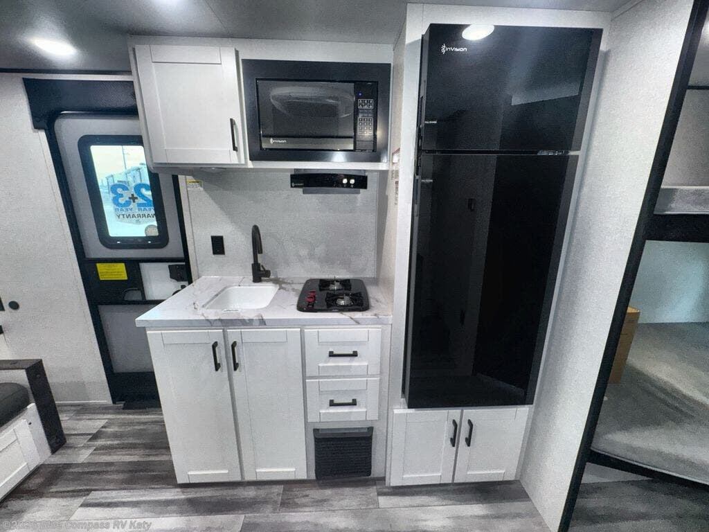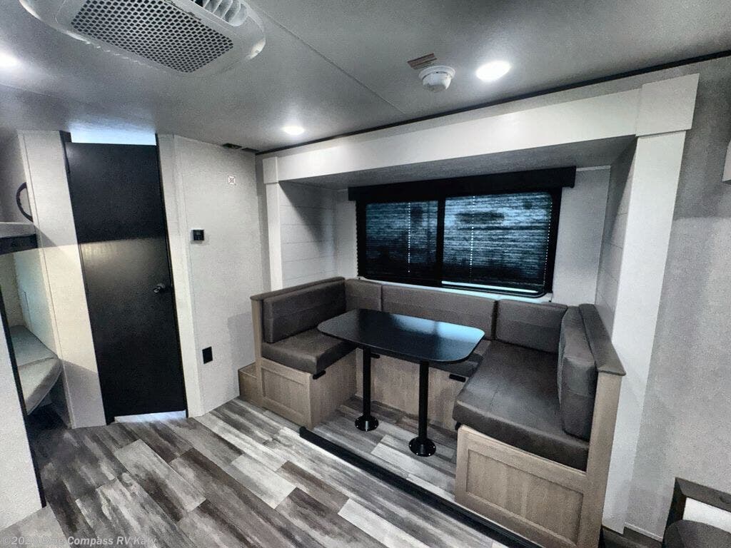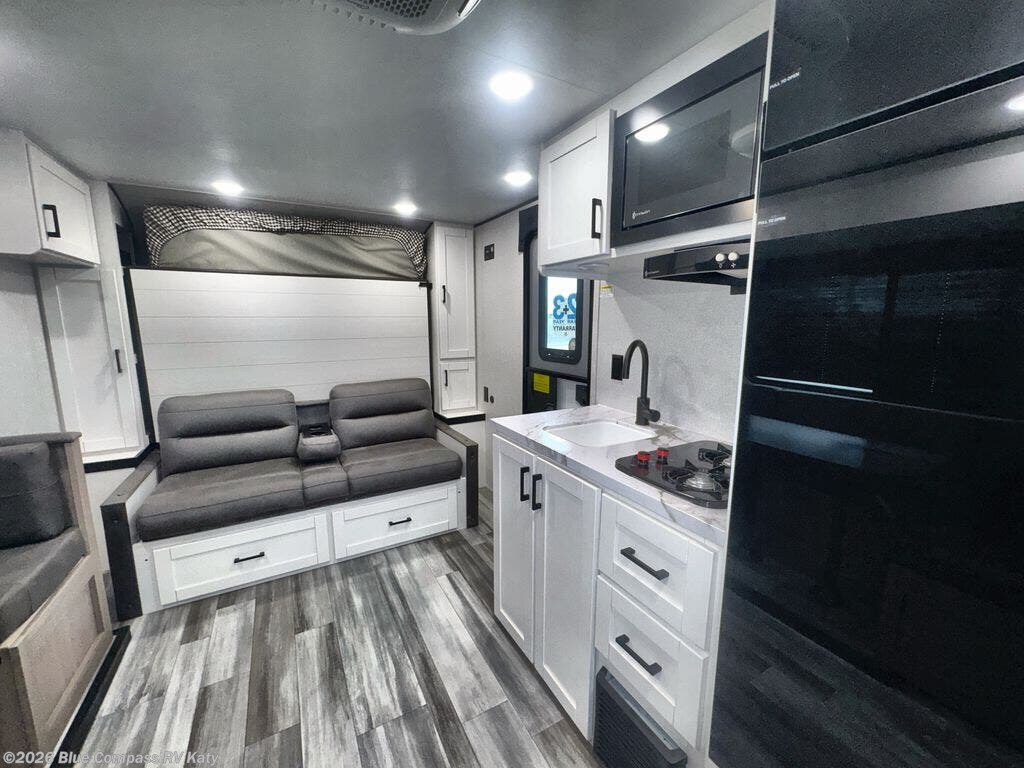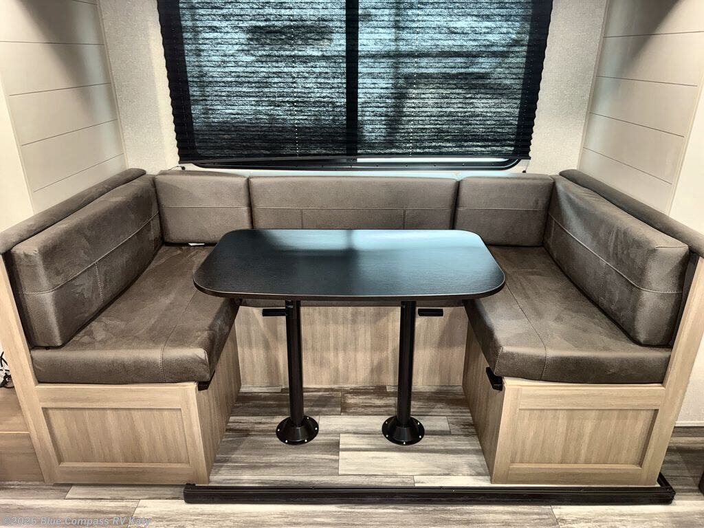 Any time spent in this travel trailer will be time well spent! You can easily sleep eight people each night thanks to the double-size bunks, front Murphy bed, and U-shaped dinette within the slide out. There is a full bath next to the bunks for easy nighttime use, and the linen closet will be perfect for clean towels. A cooktop, microwave oven, and 8 cu. ft. 12V refrigerator will let you cook and store food, and there is an overhead cabinet for spices or snacks!