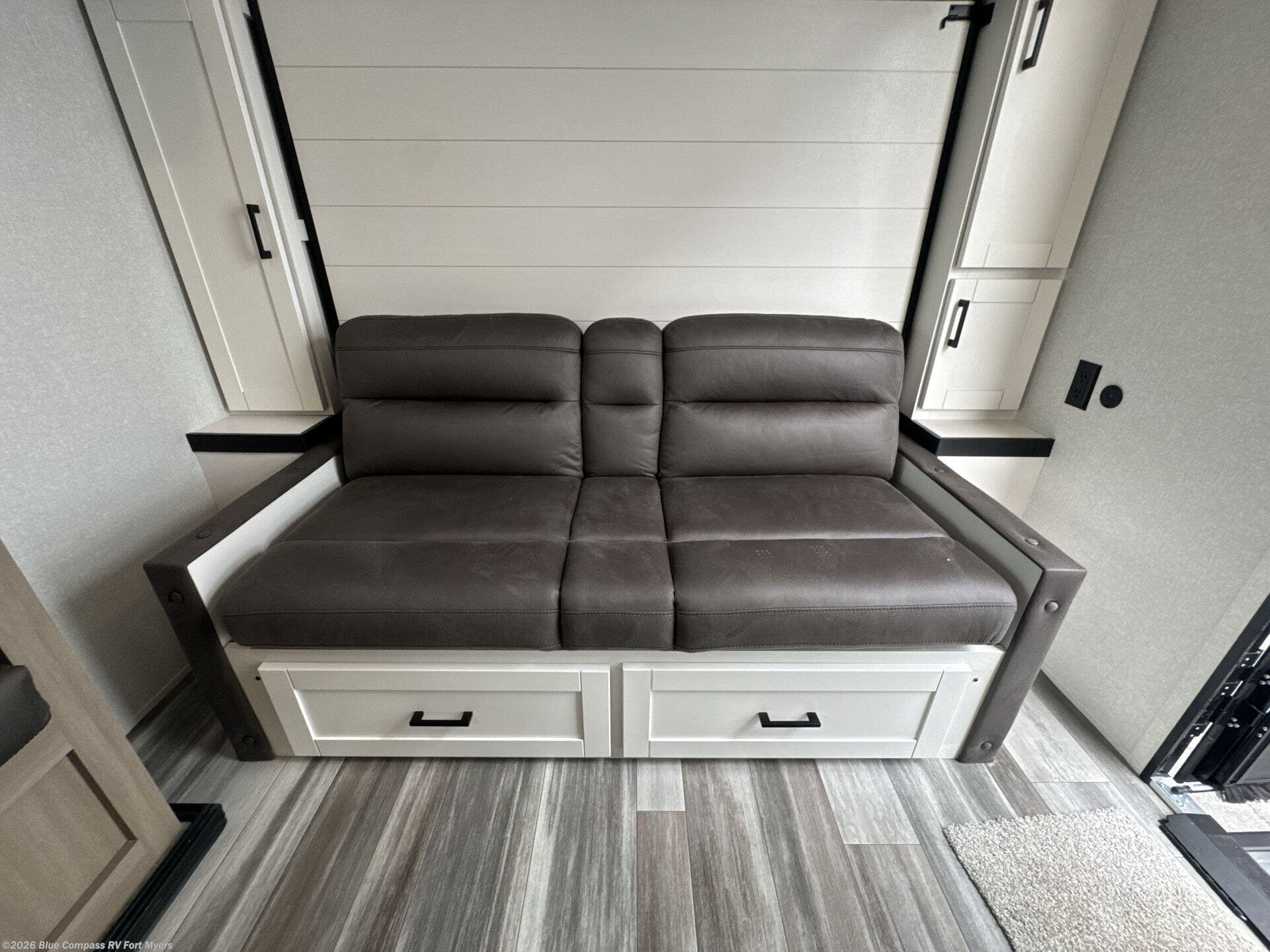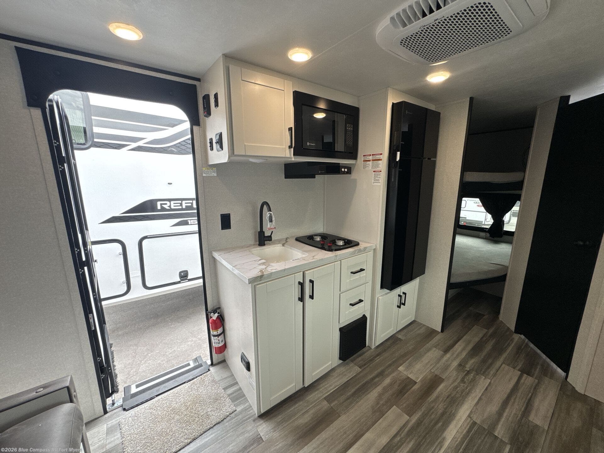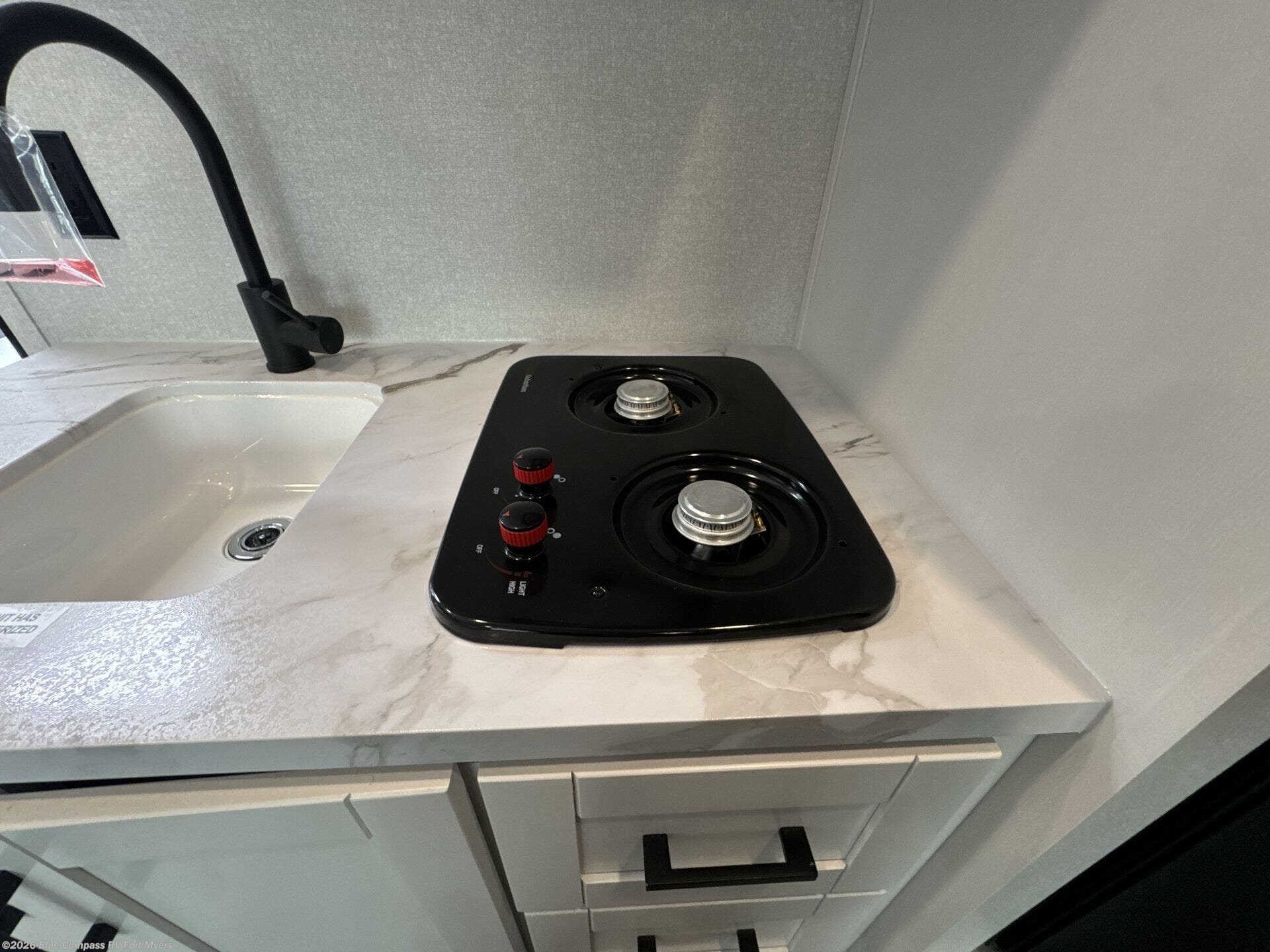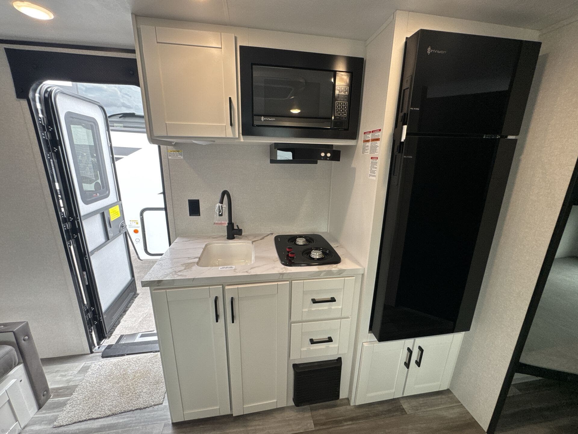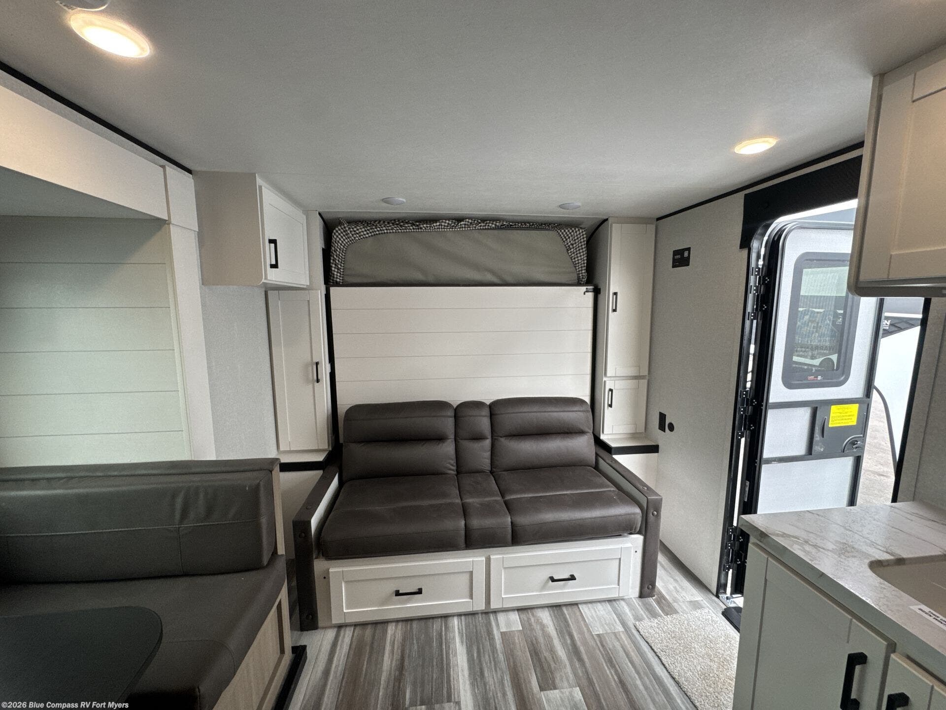 Any time spent in this travel trailer will be time well spent! You can easily sleep eight people each night thanks to the double-size bunks, front Murphy bed, and U-shaped dinette within the slide out. There is a full bath next to the bunks for easy nighttime use, and the linen closet will be perfect for clean towels. A cooktop, microwave oven, and 8 cu. ft. 12V refrigerator will let you cook and store food, and there is an overhead cabinet for spices or snacks!