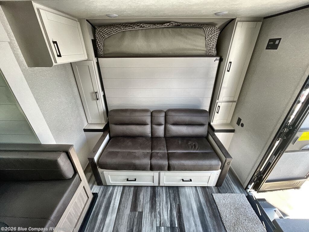 Any time spent in this travel trailer will be time well spent! You can easily sleep eight people each night thanks to the double-size bunks, front Murphy bed, and U-shaped dinette within the slide out. There is a full bath next to the bunks for easy nighttime use, and the linen closet will be perfect for clean towels. A cooktop, microwave oven, and 8 cu. ft. 12V refrigerator will let you cook and store food, and there is an overhead cabinet for spices or snacks!