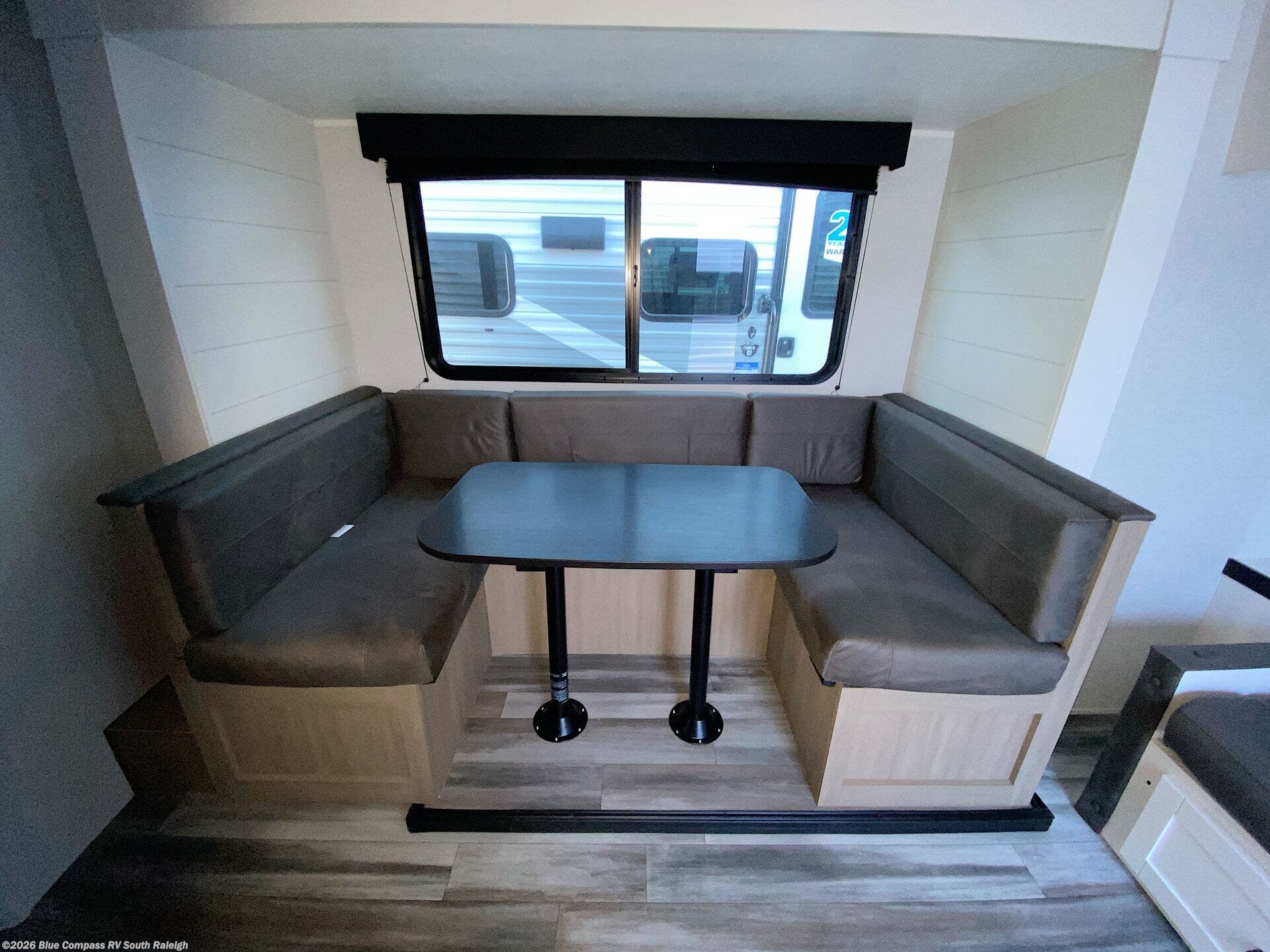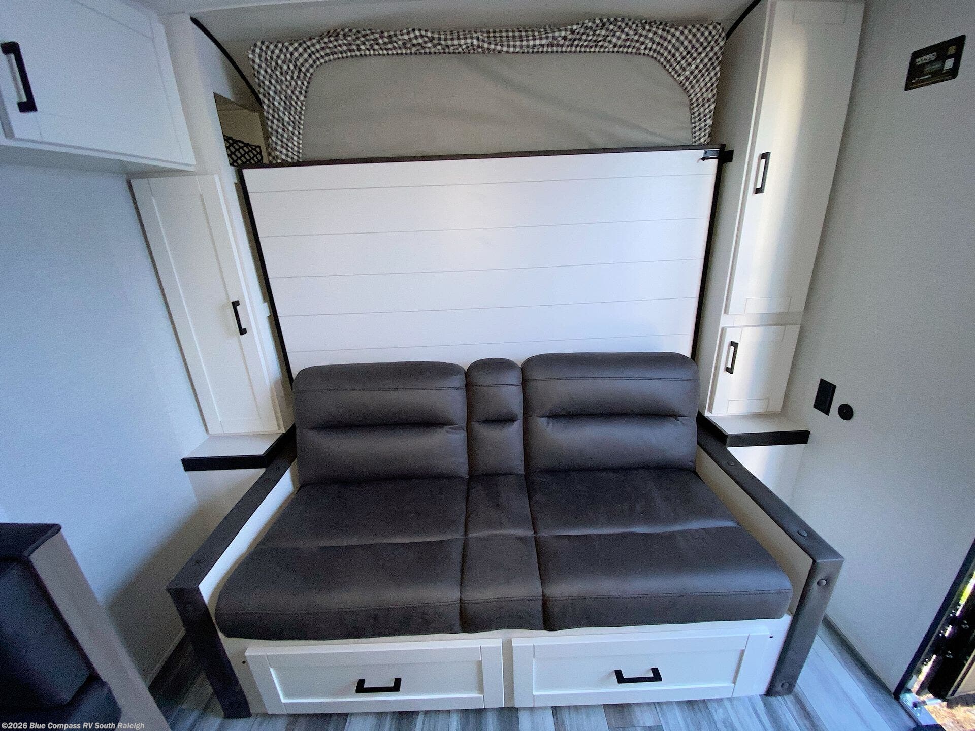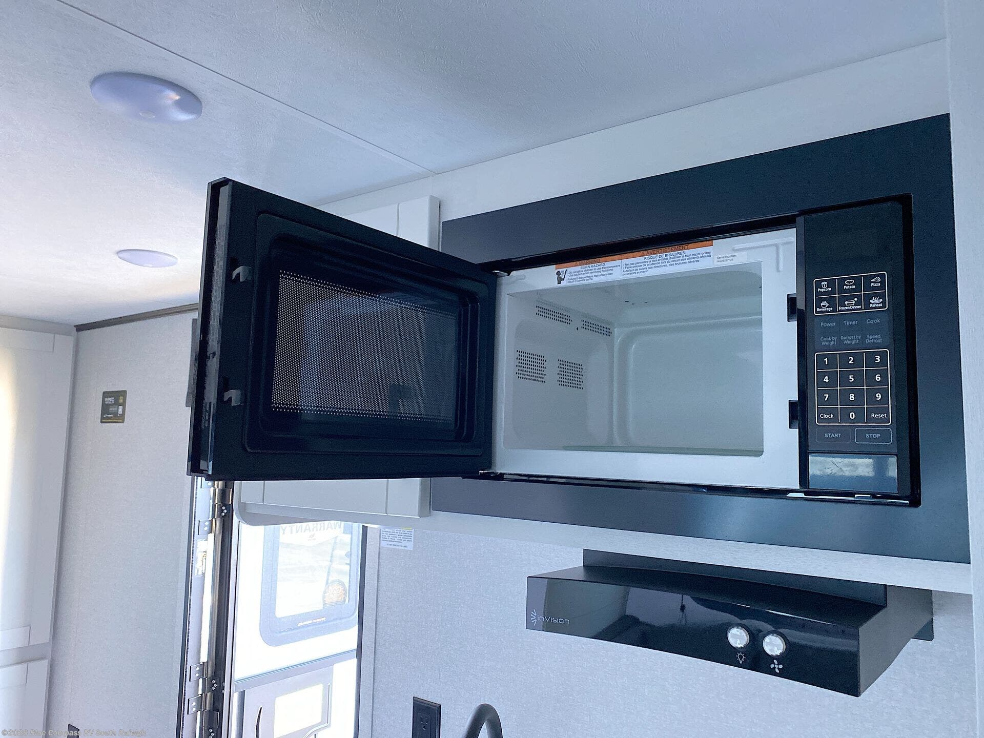 Any time spent in this travel trailer will be time well spent! You can easily sleep eight people each night thanks to the double-size bunks, front Murphy bed, and U-shaped dinette within the slide out. There is a full bath next to the bunks for easy nighttime use, and the linen closet will be perfect for clean towels. A cooktop, microwave oven, and 8 cu. ft. 12V refrigerator will let you cook and store food, and there is an overhead cabinet for spices or snacks!