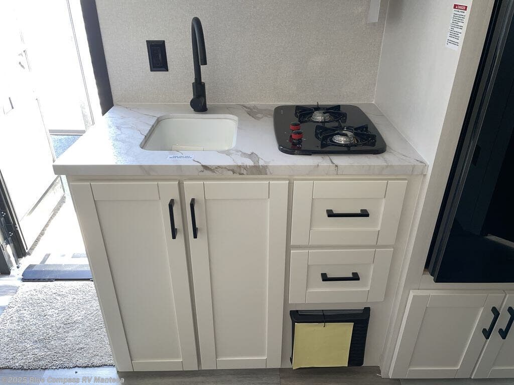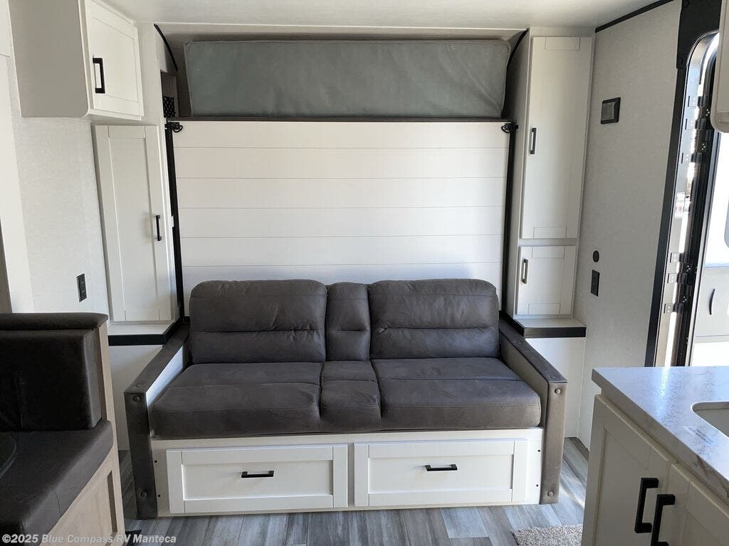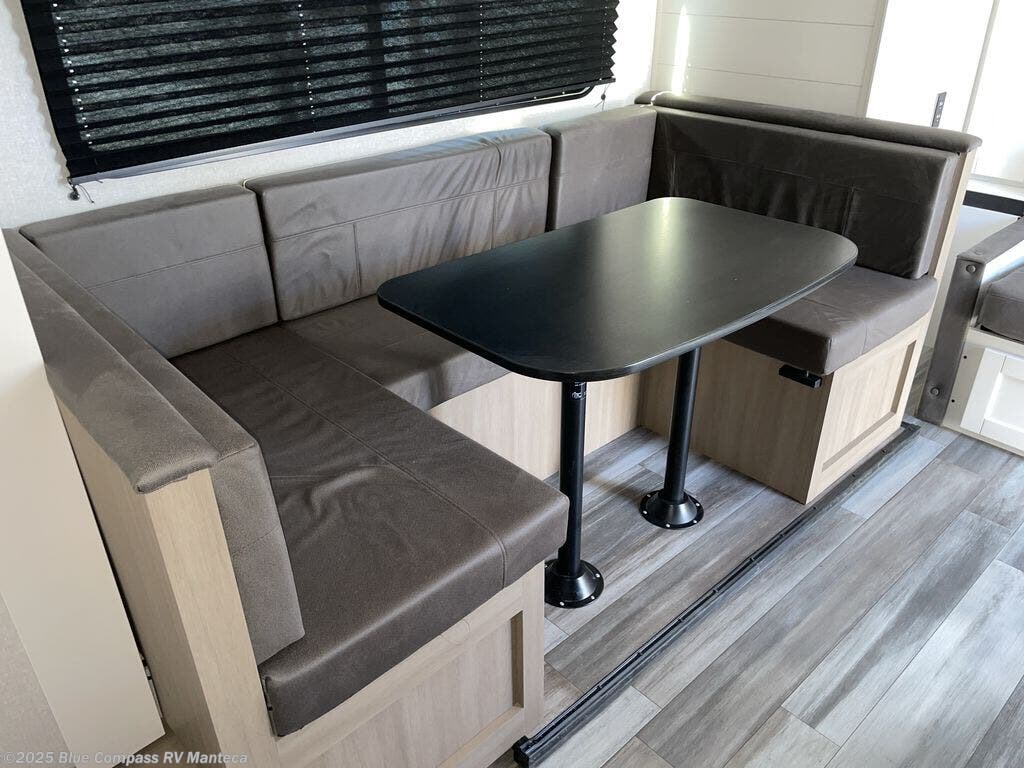 Any time spent in this travel trailer will be time well spent! You can easily sleep eight people each night thanks to the double-size bunks, front Murphy bed, and U-shaped dinette within the slide out. There is a full bath next to the bunks for easy nighttime use, and the linen closet will be perfect for clean towels. A cooktop, microwave oven, and 8 cu. ft. 12V refrigerator will let you cook and store food, and there is an overhead cabinet for spices or snacks!