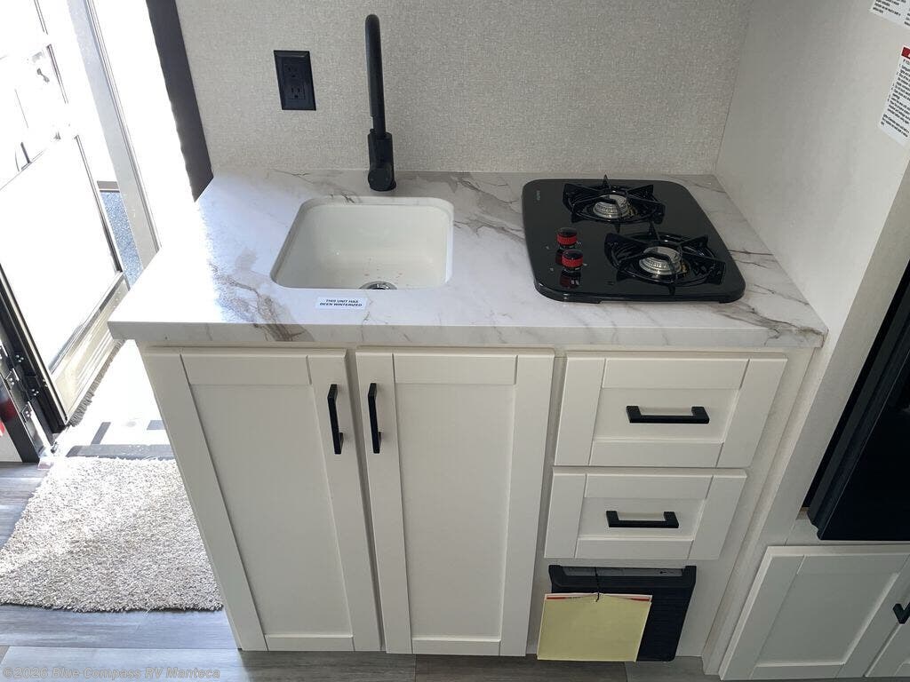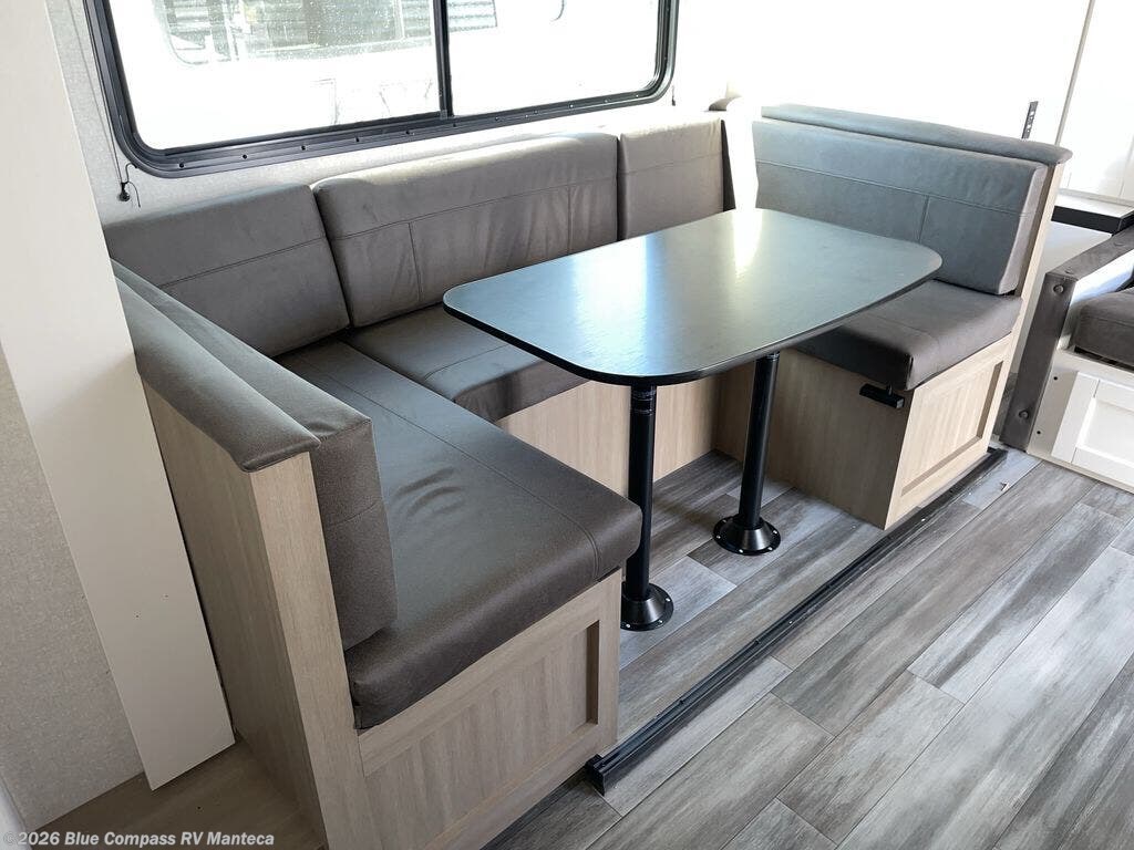 Any time spent in this travel trailer will be time well spent! You can easily sleep eight people each night thanks to the double-size bunks, front Murphy bed, and U-shaped dinette within the slide out. There is a full bath next to the bunks for easy nighttime use, and the linen closet will be perfect for clean towels. A cooktop, microwave oven, and 8 cu. ft. 12V refrigerator will let you cook and store food, and there is an overhead cabinet for spices or snacks!