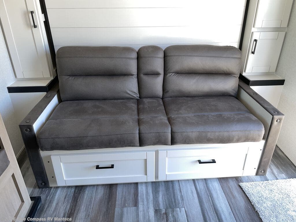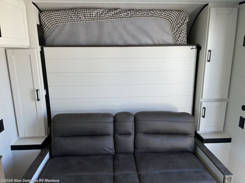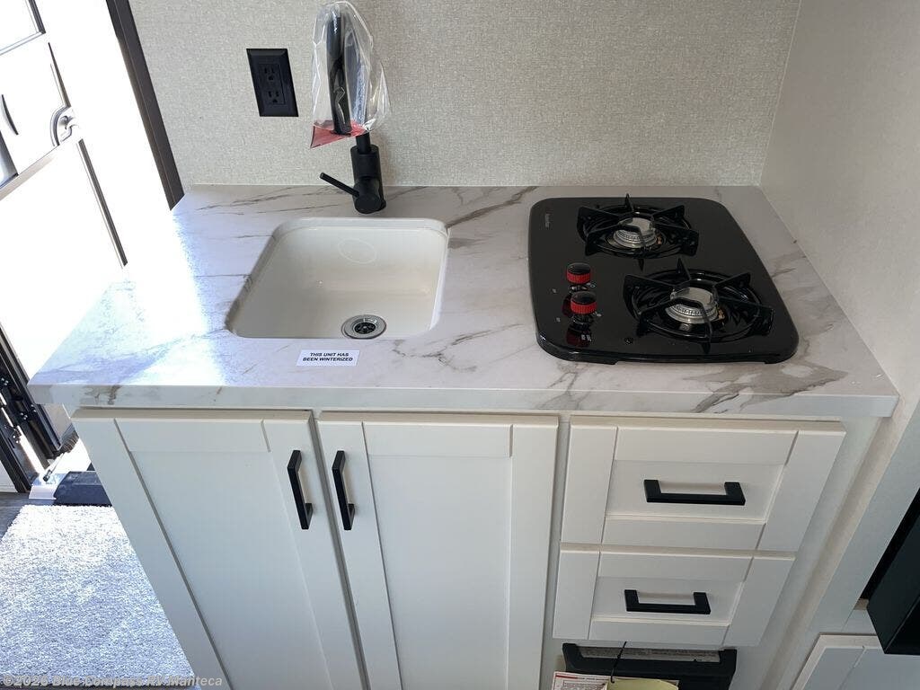 Any time spent in this travel trailer will be time well spent! You can easily sleep eight people each night thanks to the double-size bunks, front Murphy bed, and U-shaped dinette within the slide out. There is a full bath next to the bunks for easy nighttime use, and the linen closet will be perfect for clean towels. A cooktop, microwave oven, and 8 cu. ft. 12V refrigerator will let you cook and store food, and there is an overhead cabinet for spices or snacks!