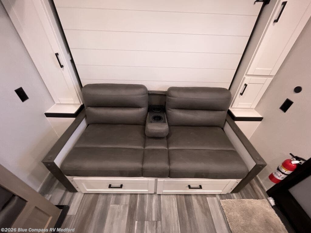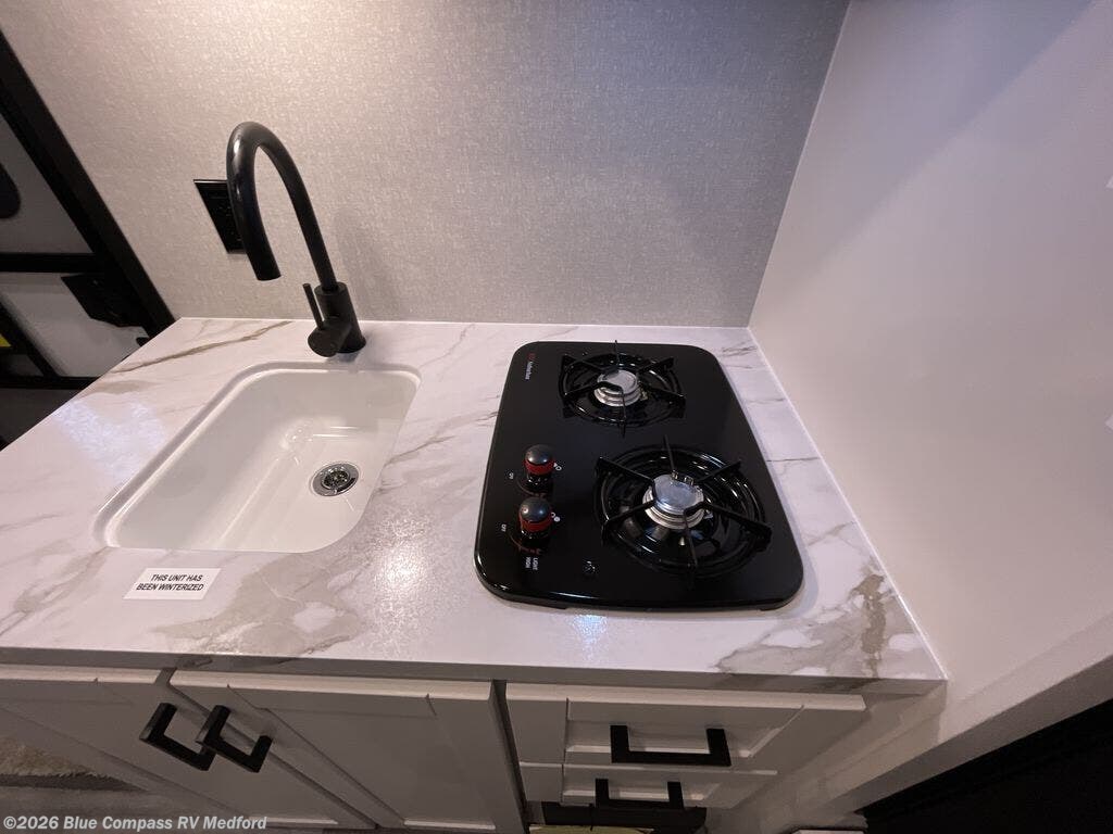 Any time spent in this travel trailer will be time well spent! You can easily sleep eight people each night thanks to the double-size bunks, front Murphy bed, and U-shaped dinette within the slide out. There is a full bath next to the bunks for easy nighttime use, and the linen closet will be perfect for clean towels. A cooktop, microwave oven, and 8 cu. ft. 12V refrigerator will let you cook and store food, and there is an overhead cabinet for spices or snacks!