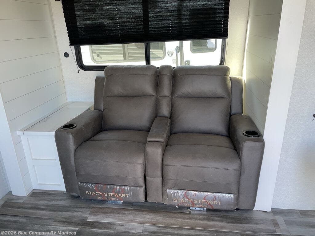 This couple's trailer will be perfect for weekend trips to the lake or extended stays at the campground. You can sleep on the front queen bed each night instead of on an air mattress, and the dual bedroom wardrobes will help keep your space organized. The theater seat is within a slide for more floor space, and the fully-equipped kitchen will allow you to make meals each day. You'll also appreciate the rear corner full bath to stay clean throughout each trip!