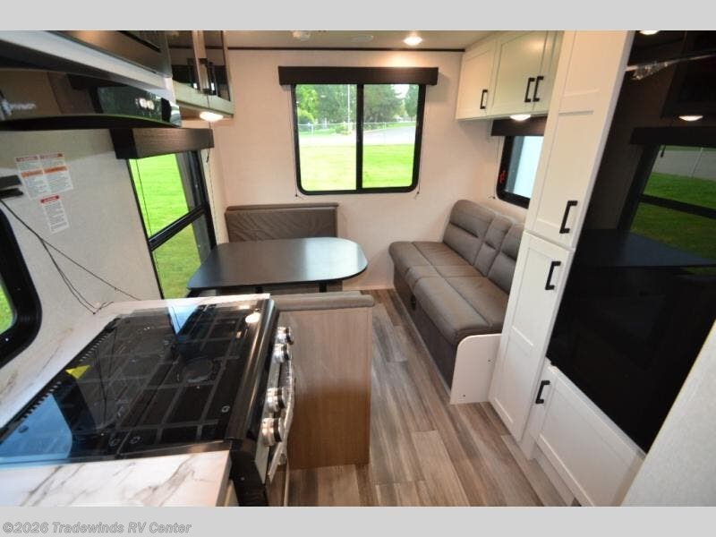 Camping in the woods is just what the doctor ordered and this trailer will provide all the interior comforts you need! There is a three burner cooktop and a microwave oven to prepare meals each day, plus an 8 cu. ft. 12V refrigerator for cold items. After your meal is made, you can dine at the booth dinette or relax on the jack-knife sofa, and these areas can become sleeping space for two to three guests at night. The full bath with a shower means you won't have to use the camp's facilities and the 16' power awning will provide protection from the sun as you visit with other campers!