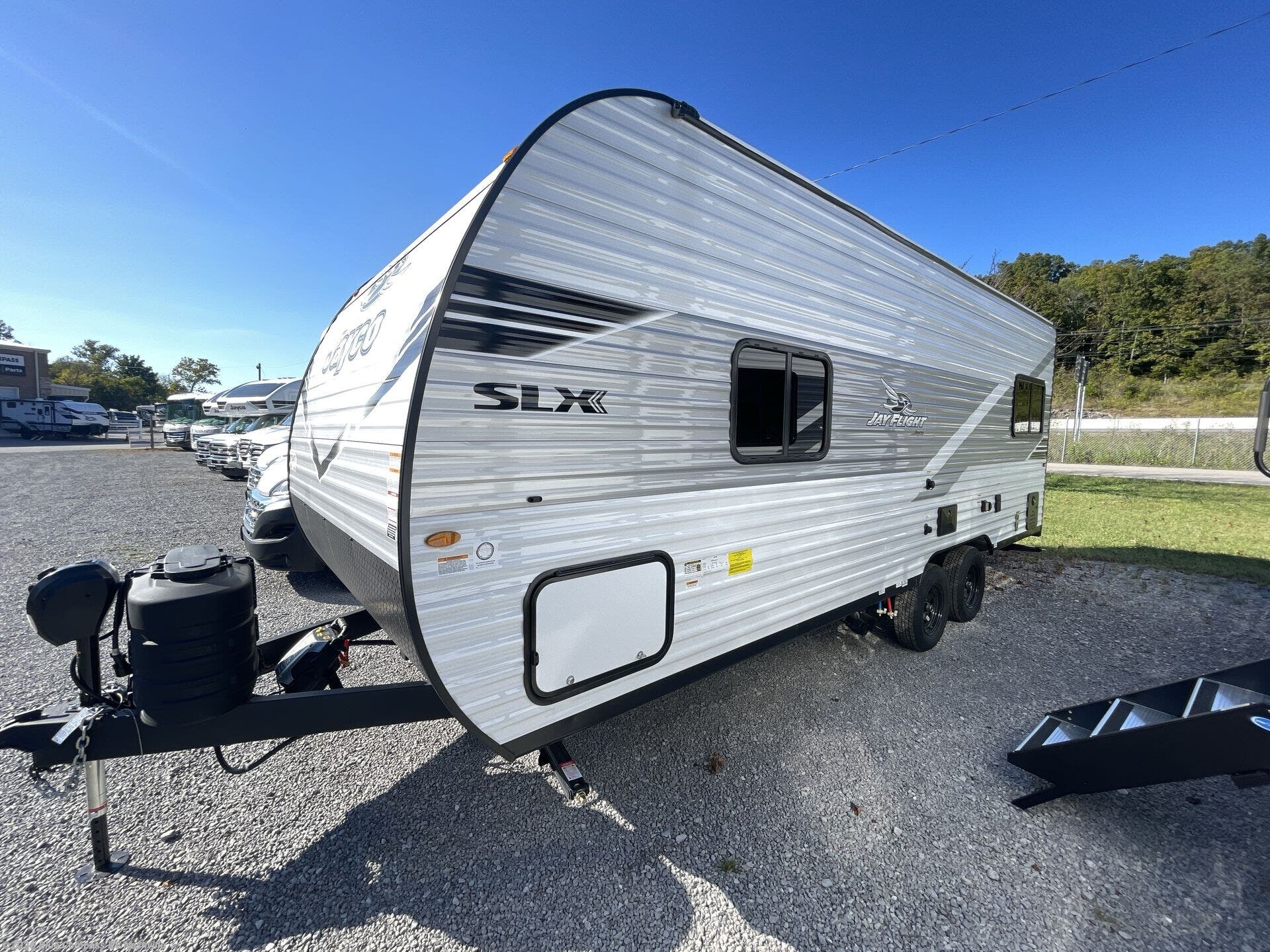 The Jayco Jay Flight SLX travel trailer is quite easy to own because it is lightweight for an easier towing experience. Built on a fully integrated A-frame with galvanized-steel, impact-resistant wheel wells, the Jay Flight SLX has quality at its very foundation. That quality continues on to the electric self-adjusting brakes, easy-lube hubs, Magnum Truss roof system, and LP quick connect. Some of what the mandatory Customer Value Package includes is backup camera prep, Keyed-Alike entry and baggage doors, and an on-demand tankless water heater.