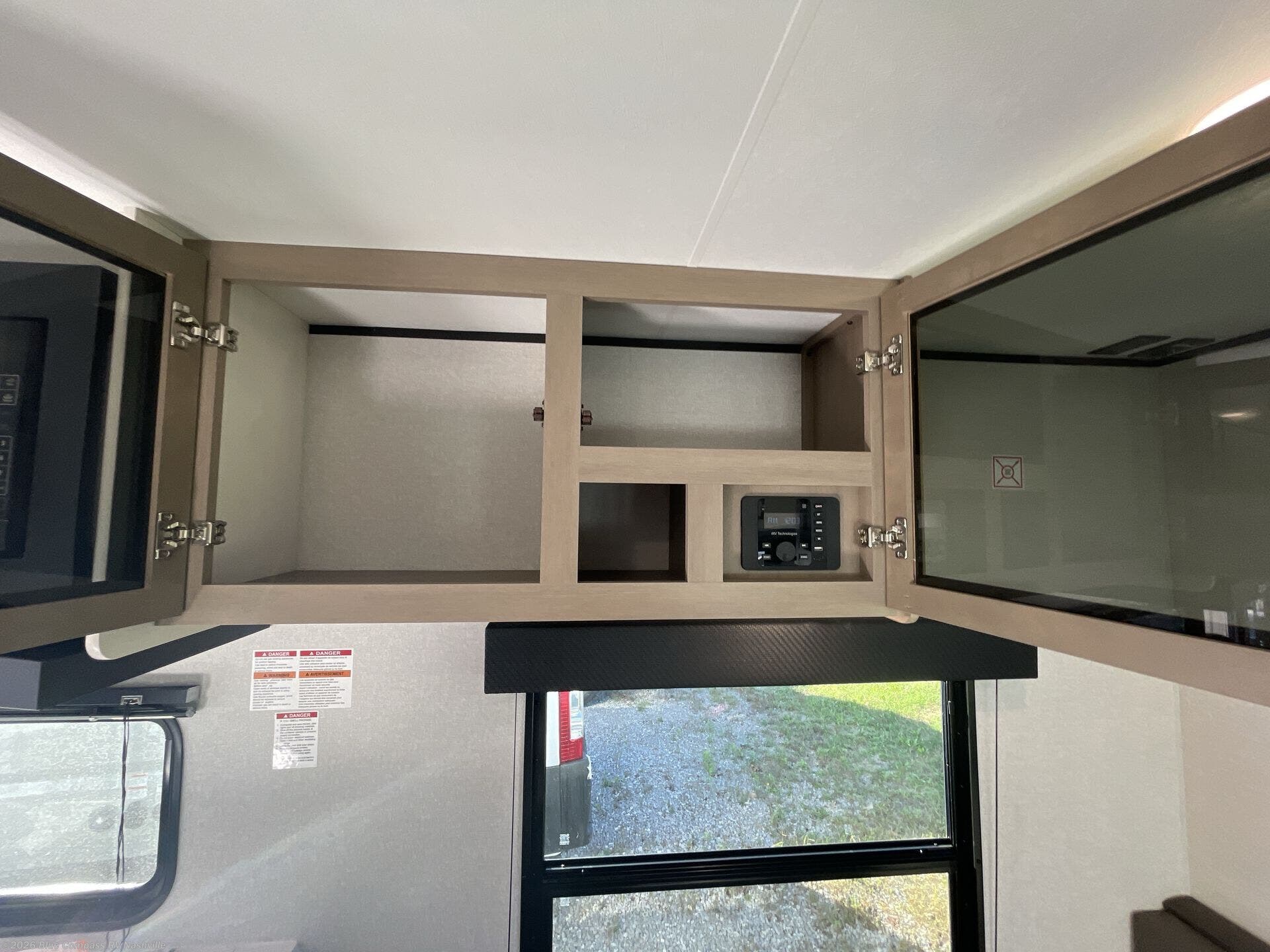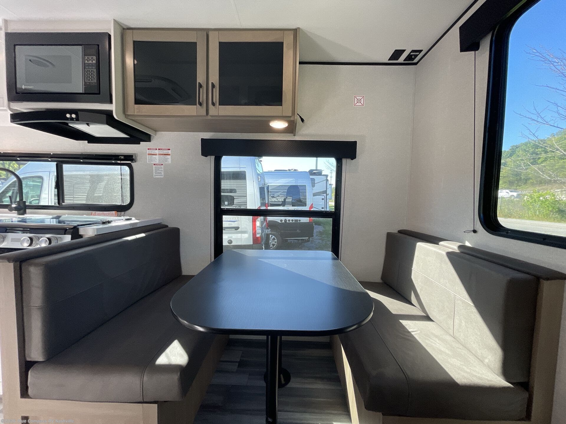 Camping in the woods is just what the doctor ordered and this trailer will provide all the interior comforts you need! There is a three burner cooktop and a microwave oven to prepare meals each day, plus an 8 cu. ft. 12V refrigerator for cold items. After your meal is made, you can dine at the booth dinette or relax on the jack-knife sofa, and these areas can become sleeping space for two to three guests at night. The full bath with a shower means you won't have to use the camp's facilities and the 16' power awning will provide protection from the sun as you visit with other campers!