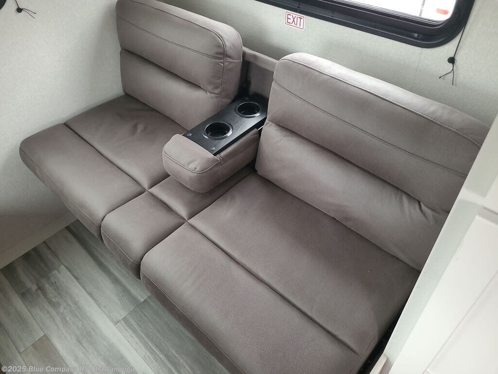 Camping in the woods is just what the doctor ordered and this trailer will provide all the interior comforts you need! There is a three burner cooktop and a microwave oven to prepare meals each day, plus an 8 cu. ft. 12V refrigerator for cold items. After your meal is made, you can dine at the booth dinette or relax on the jack-knife sofa, and these areas can become sleeping space for two to three guests at night. The full bath with a shower means you won't have to use the camp's facilities and the 16' power awning will provide protection from the sun as you visit with other campers!