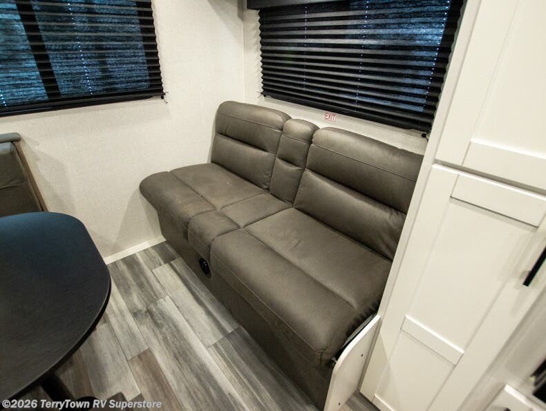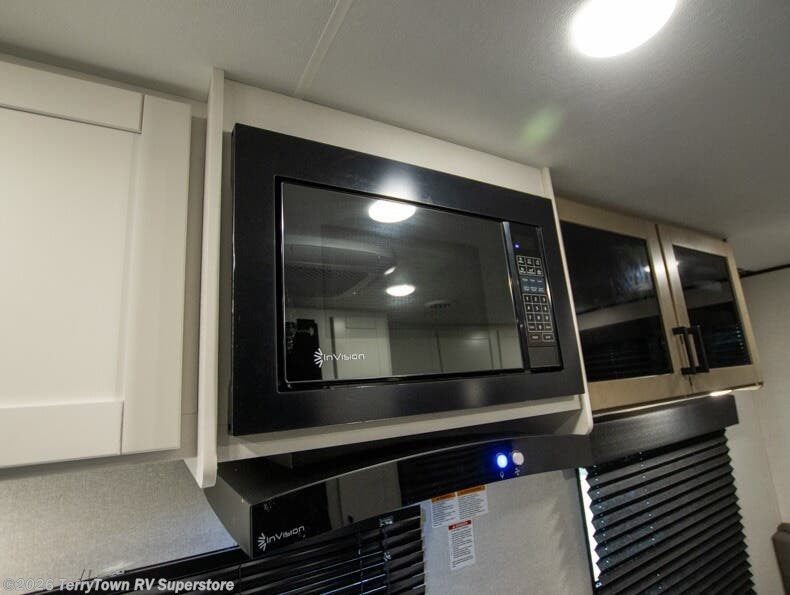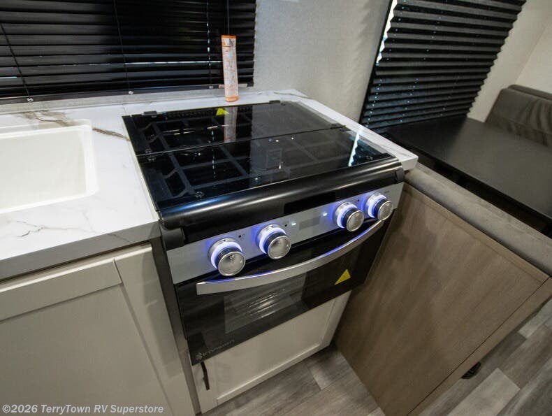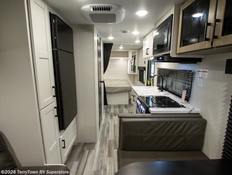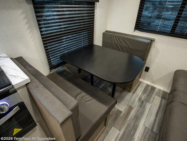 Camping in the woods is just what the doctor ordered and this trailer will provide all the interior comforts you need! There is a three burner cooktop and a microwave oven to prepare meals each day, plus an 8 cu. ft. 12V refrigerator for cold items. After your meal is made, you can dine at the booth dinette or relax on the jack-knife sofa, and these areas can become sleeping space for two to three guests at night. The full bath with a shower means you won't have to use the camp's facilities and the 16' power awning will provide protection from the sun as you visit with other campers!