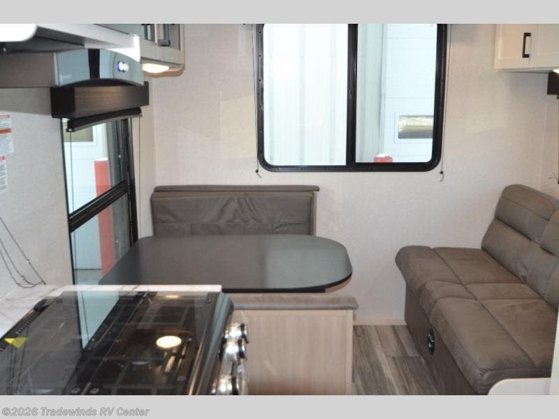 Camping in the woods is just what the doctor ordered and this trailer will provide all the interior comforts you need! There is a three burner cooktop and a microwave oven to prepare meals each day, plus an 8 cu. ft. 12V refrigerator for cold items. After your meal is made, you can dine at the booth dinette or relax on the jack-knife sofa, and these areas can become sleeping space for two to three guests at night. The full bath with a shower means you won't have to use the camp's facilities and the 16' power awning will provide protection from the sun as you visit with other campers!