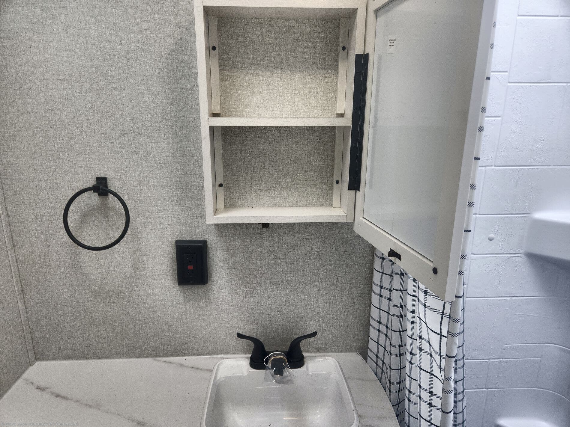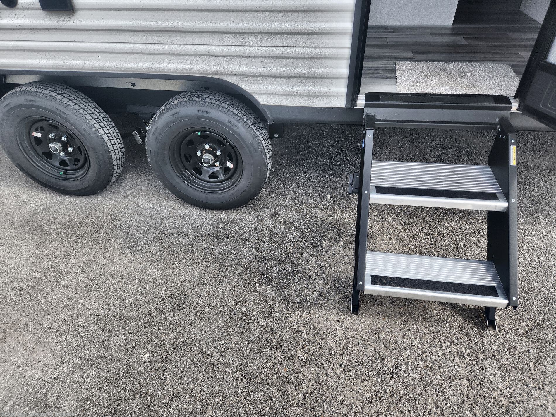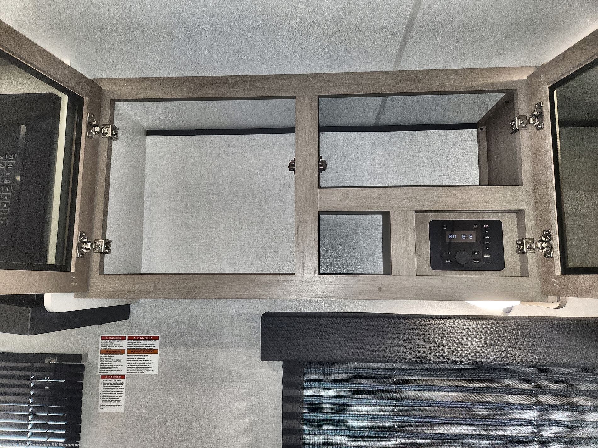 Camping in the woods is just what the doctor ordered and this trailer will provide all the interior comforts you need! There is a three burner cooktop and a microwave oven to prepare meals each day, plus an 8 cu. ft. 12V refrigerator for cold items. After your meal is made, you can dine at the booth dinette or relax on the jack-knife sofa, and these areas can become sleeping space for two to three guests at night. The full bath with a shower means you won't have to use the camp's facilities and the 16' power awning will provide protection from the sun as you visit with other campers!