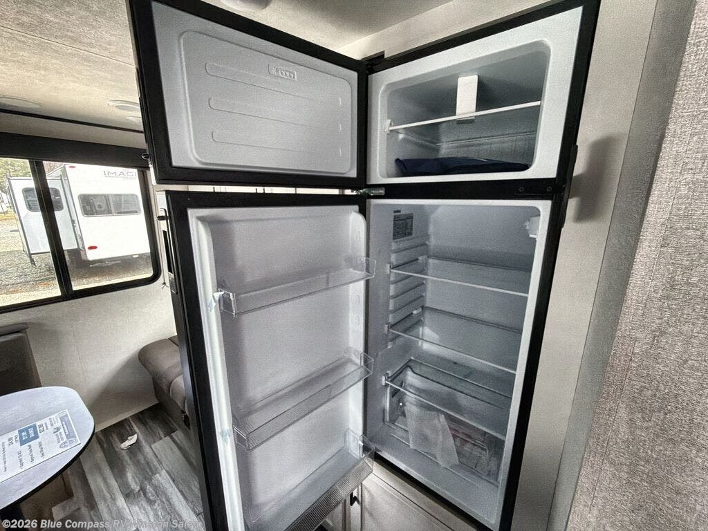 Camping in the woods is just what the doctor ordered and this trailer will provide all the interior comforts you need! There is a three burner cooktop and a microwave oven to prepare meals each day, plus an 8 cu. ft. 12V refrigerator for cold items. After your meal is made, you can dine at the booth dinette or relax on the jack-knife sofa, and these areas can become sleeping space for two to three guests at night. The full bath with a shower means you won't have to use the camp's facilities and the 16' power awning will provide protection from the sun as you visit with other campers!
