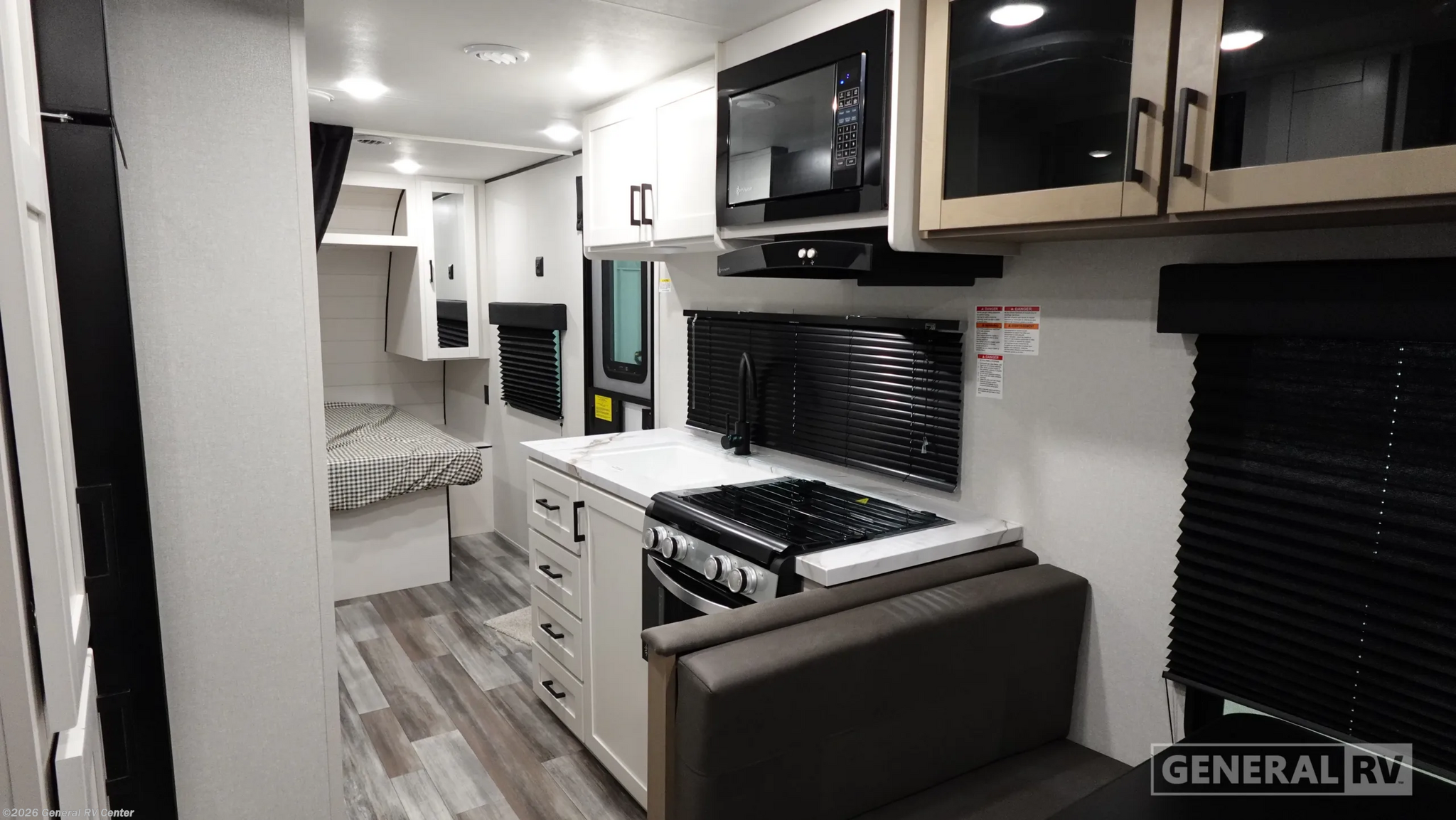 The 2026 Jayco Jay Flight SLX 210QB is your ticket to adventure, offering a perfect blend of comfort and practicality wrapped in a sleek 25-foot frame. With its spacious layout, this RV comfortably sleeps up to six, making it an ideal choice for families or groups of friends eager to explore the open road. The inviting interior features a cozy jack-knife sofa and a well-appointed kitchen, complete with a microwave and ample pantry space, ensuring you have everything you need for delightful meals on the go. As you make your way to the rear, you'll find a conveniently designed bathroom with a shower, providing a refreshing retreat after a day of exploration. The queen bed at the front offers a restful night's sleep, surrounded by ample storage options for all your travel essentials. Outside, the 16-foot awning creates a perfect shaded area for relaxation, while the LP quick connect makes outdoor cooking a breeze. With a robust fresh water capacity of 84 gallons, the Jay Flight SLX 210QB ensures you’re well-equipped for extended adventures. For more details and to experience this RV firsthand, visit your nearest General RV dealership.