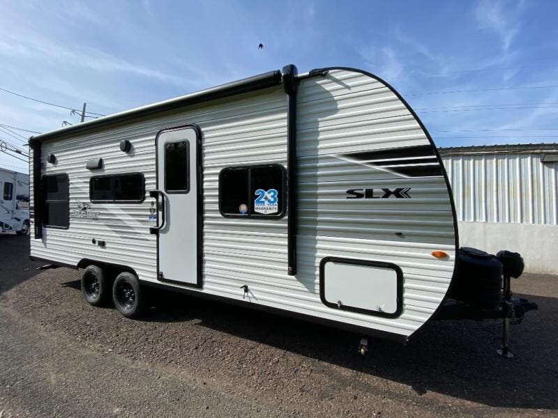 The Jayco Jay Flight SLX travel trailer is built for long-term reliability. Constructed on a fully integrated A-frame with galvanized steel and impact-resistant wheel wells, this trailer is engineered for durability at its core. Additional features such as electric self-adjusting brakes, easy-lube hubs, and the Magnum Truss roof system enhance structural strength and road performance.