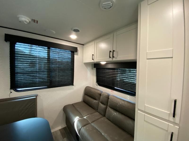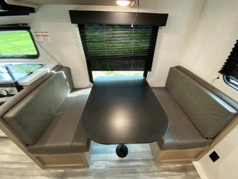 Inside the 210QB, you'll find a comfortable front queen bed with dual bedroom wardrobes to keep clothing and essentials organized. The booth dinette and jack-knife sofa provide seating during the day and convert into additional sleeping space for guests at night, making this a versatile layout for up to four campers.