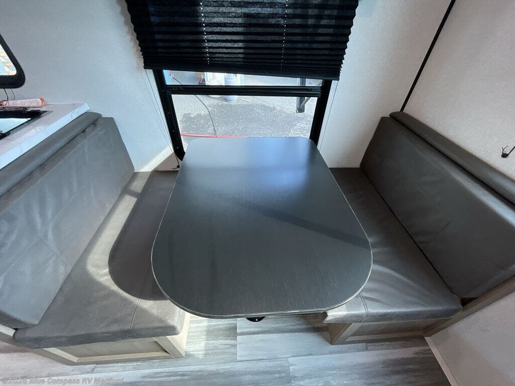 Camping in the woods is just what the doctor ordered and this trailer will provide all the interior comforts you need! There is a three burner cooktop and a microwave oven to prepare meals each day, plus an 8 cu. ft. 12V refrigerator for cold items. After your meal is made, you can dine at the booth dinette or relax on the jack-knife sofa, and these areas can become sleeping space for two to three guests at night. The full bath with a shower means you won't have to use the camp's facilities and the 16' power awning will provide protection from the sun as you visit with other campers!