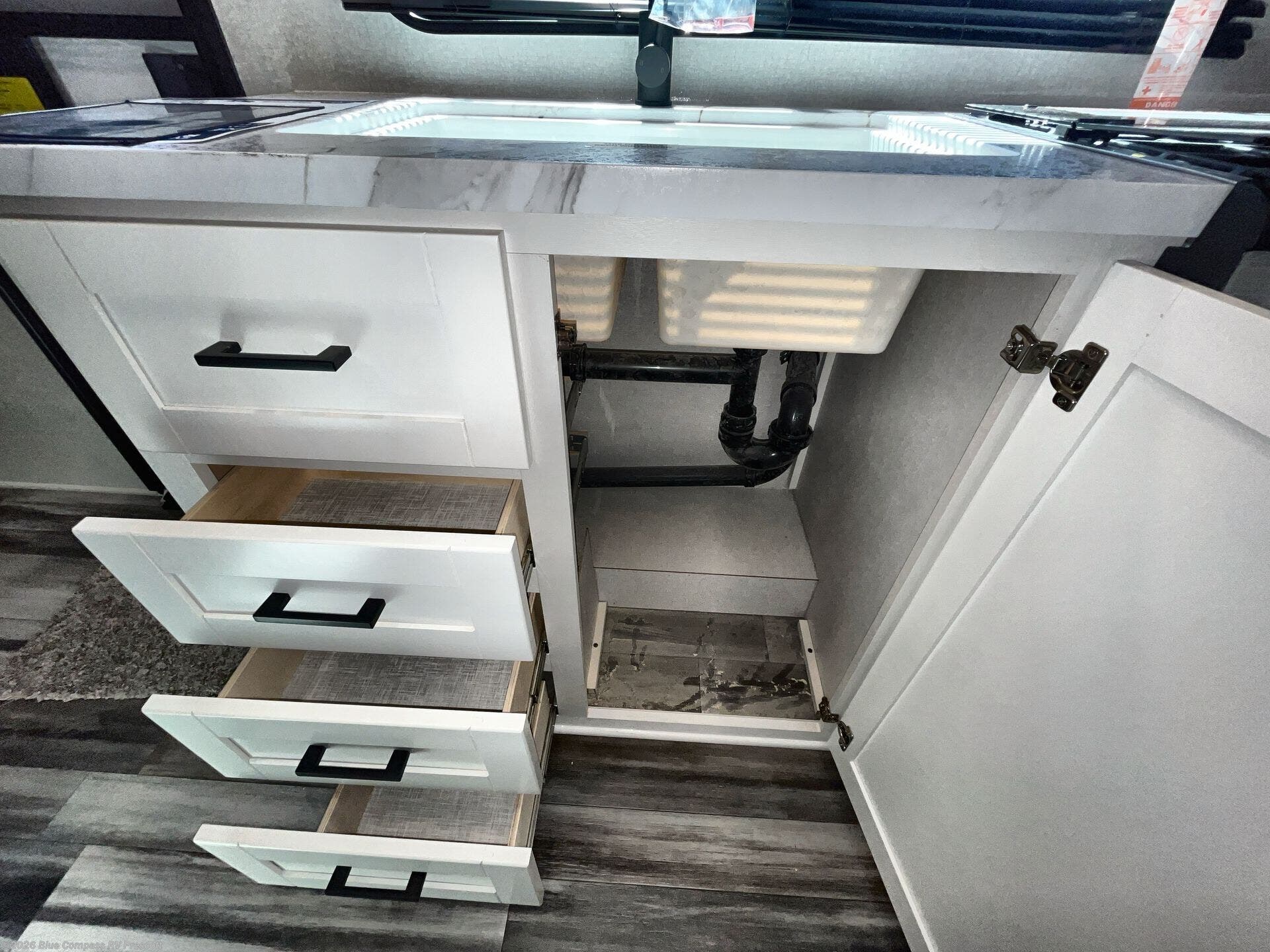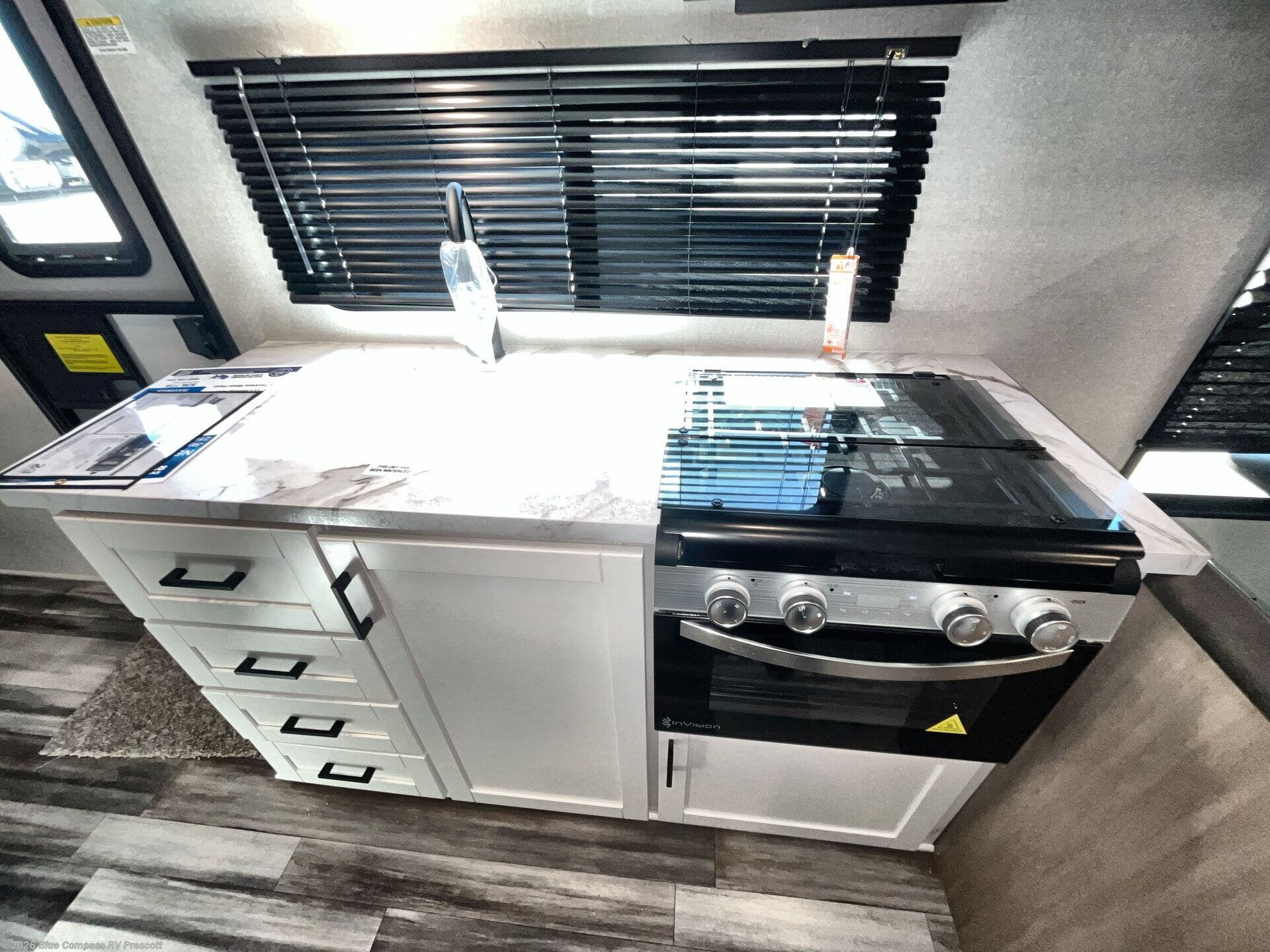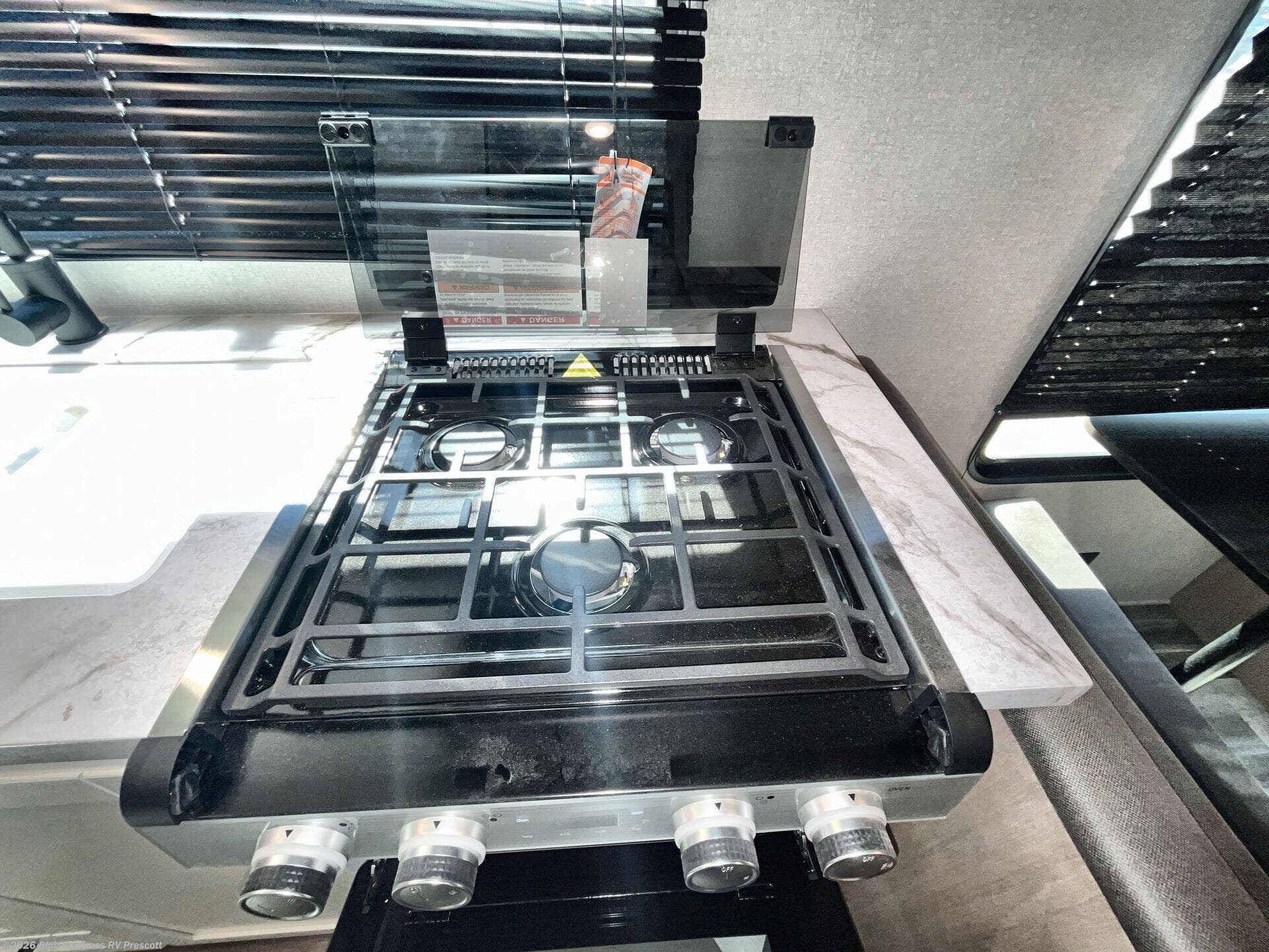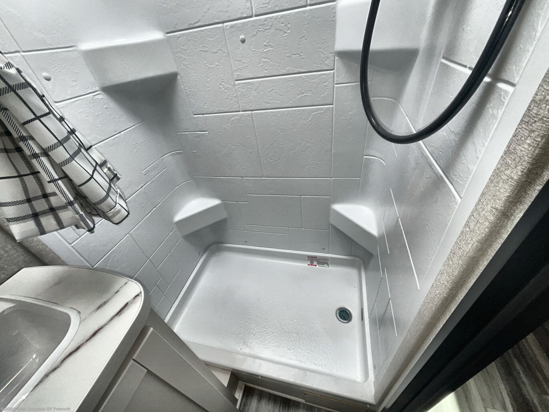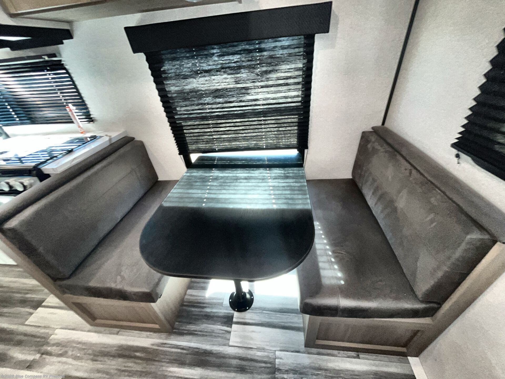 Camping in the woods is just what the doctor ordered and this trailer will provide all the interior comforts you need! There is a three burner cooktop and a microwave oven to prepare meals each day, plus an 8 cu. ft. 12V refrigerator for cold items. After your meal is made, you can dine at the booth dinette or relax on the jack-knife sofa, and these areas can become sleeping space for two to three guests at night. The full bath with a shower means you won't have to use the camp's facilities and the 16' power awning will provide protection from the sun as you visit with other campers!