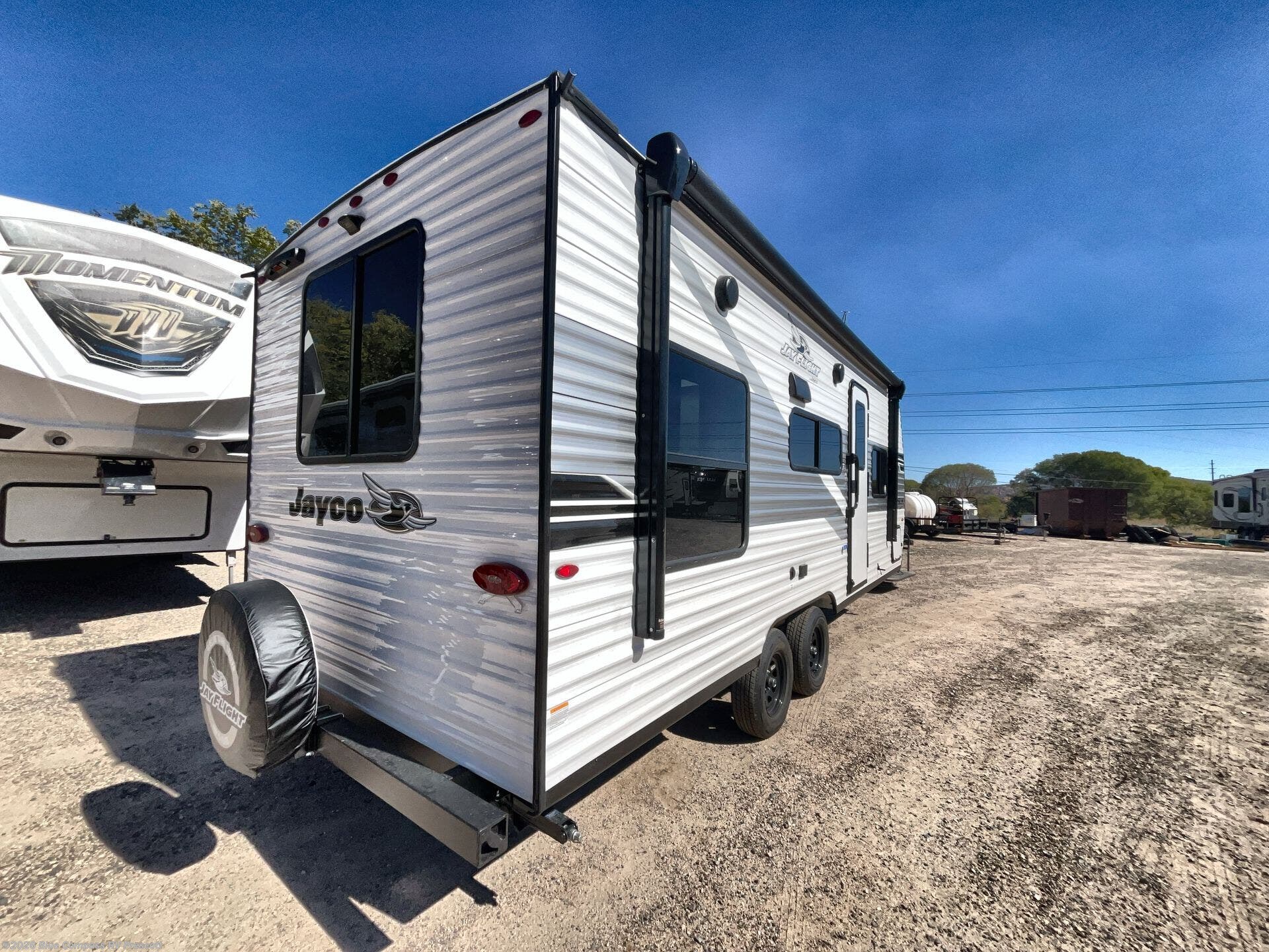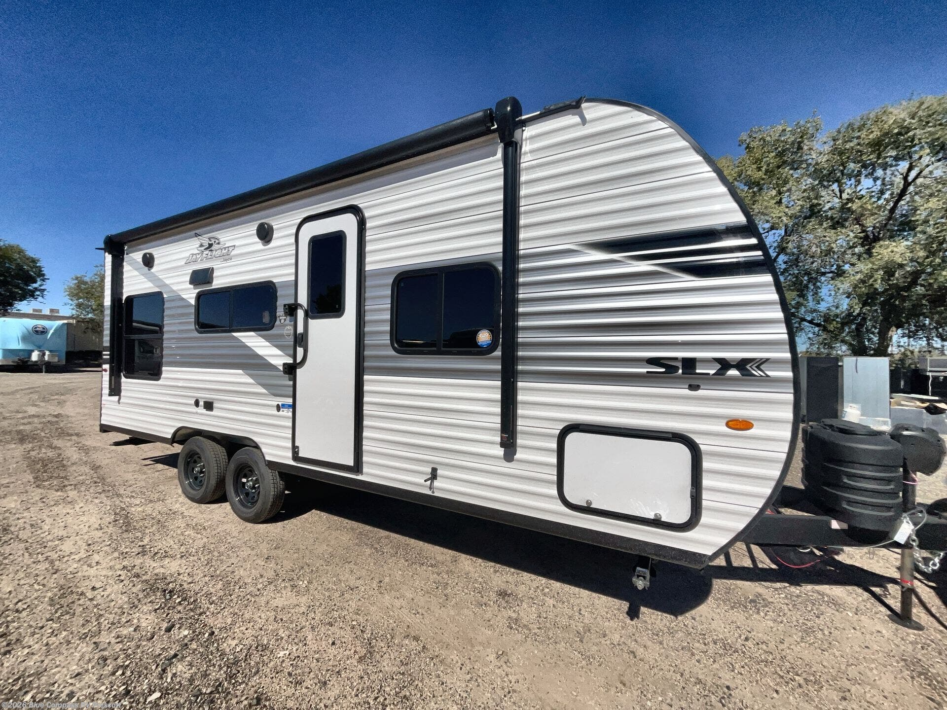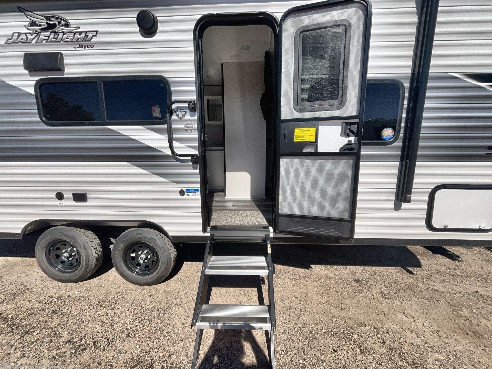 The Jayco Jay Flight SLX travel trailer is quite easy to own because it is lightweight for an easier towing experience. Built on a fully integrated A-frame with galvanized-steel, impact-resistant wheel wells, the Jay Flight SLX has quality at its very foundation. That quality continues on to the electric self-adjusting brakes, easy-lube hubs, Magnum Truss roof system, and LP quick connect. Some of what the mandatory Customer Value Package includes is backup camera prep, Keyed-Alike entry and baggage doors, and an on-demand tankless water heater.